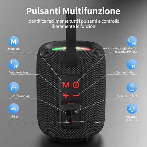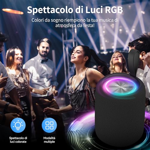 oraolo Cassa Bluetooth, Speaker Bluetooth BT5.3 Con Luci RGB, Impermeabile IPX6, Riproduzione di 12 Ore Supporta TF, USB, Speaker Bluetooth Portatile per Casa, Ciclismo, Festa : Elettronica