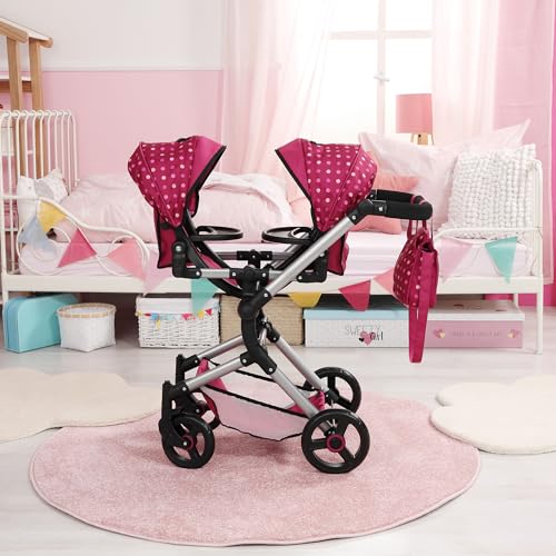 Bayer Design Passeggino Gemellare, Carrozzina per Bambole, Regolabile in Altezza, Pieghevole con Borsa a Tracolla, Colore Rosso, Bordeaux, Fata, 26267AA : Giochi e giocattoli