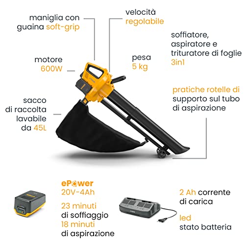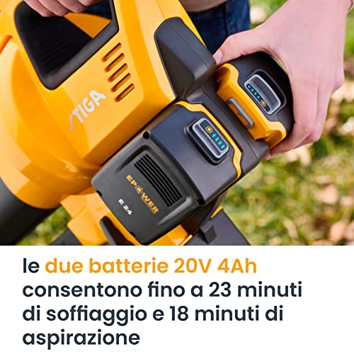Stiga VS 100e 3in 1 aspirapolvere e soffiatore di foglie con smerigliatrice, Incl. 2 x 20 V (4 Ah) Batteria e caricabatterie : Giardino e giardinaggio