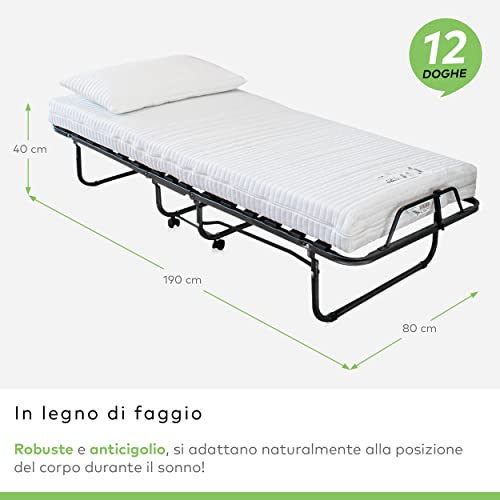 EVERGREENWEB Letto Brandina Pieghevole con Materasso Memory Foam 80x190 Alto 12 cm SFODERABILE LAVABILE, Struttura Rete Singola a Doghe in Legno Cuscino Omaggio, Kit Letto Salvaspazio con Rotelle : Amazon.it: Casa e cucina