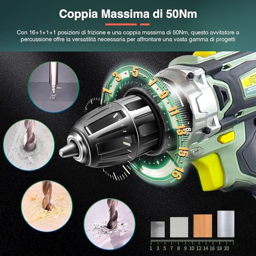 Set Trapano a Percussione con 13 Accessori inclusi e 2 Velocità Batteria 2Ah, Mirino LED, 20V, Ideale per Fai Da Te e Lavori Professionali : Amazon.it: Fai da te