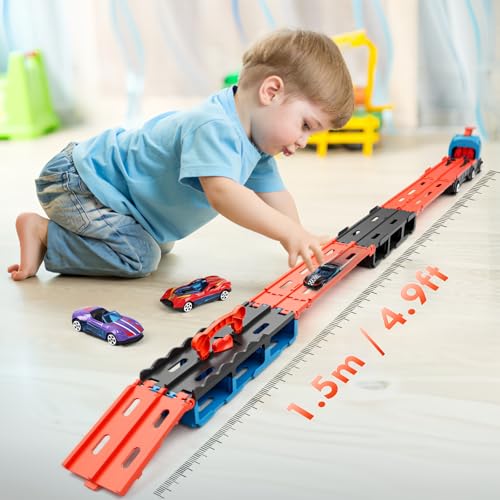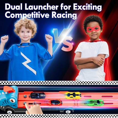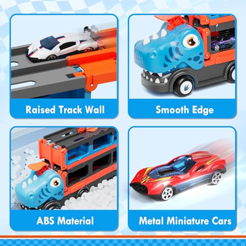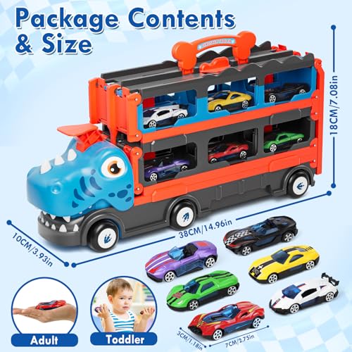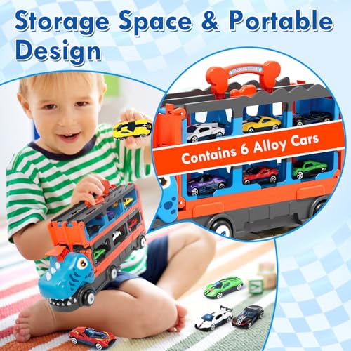 Lehoo Castle Camion Trasportatore di Auto, Giocattolo Dinosauro con 6 Auto da Corsa, Giocattolo per Bambini di 3 4 5 6 Anni : Giochi e giocattoli