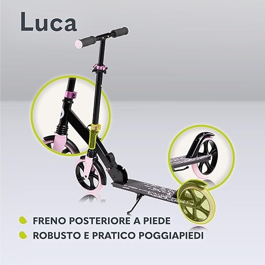 LIONELO LUCA Monopattino pieghevole per Bambini e adulti fino a 100kg, Regiolable e leggero solo 4kg, Costruzione solida, Ruote 20cm, Ammortizzatori ShockResist, Freno posteriore, Antiscivolo