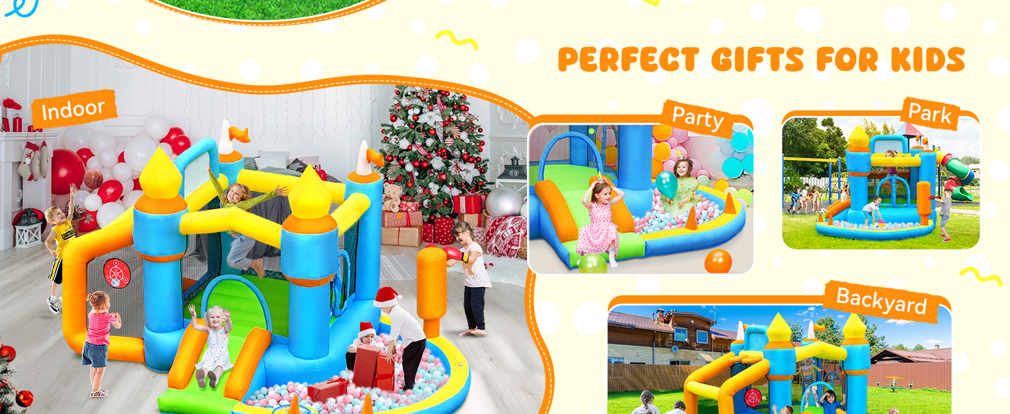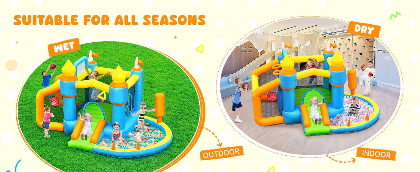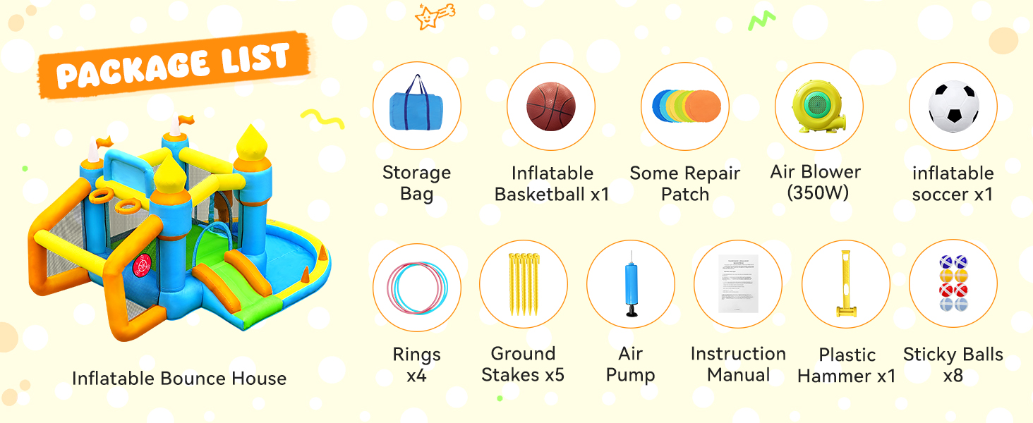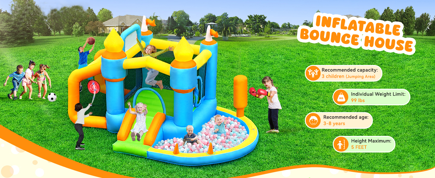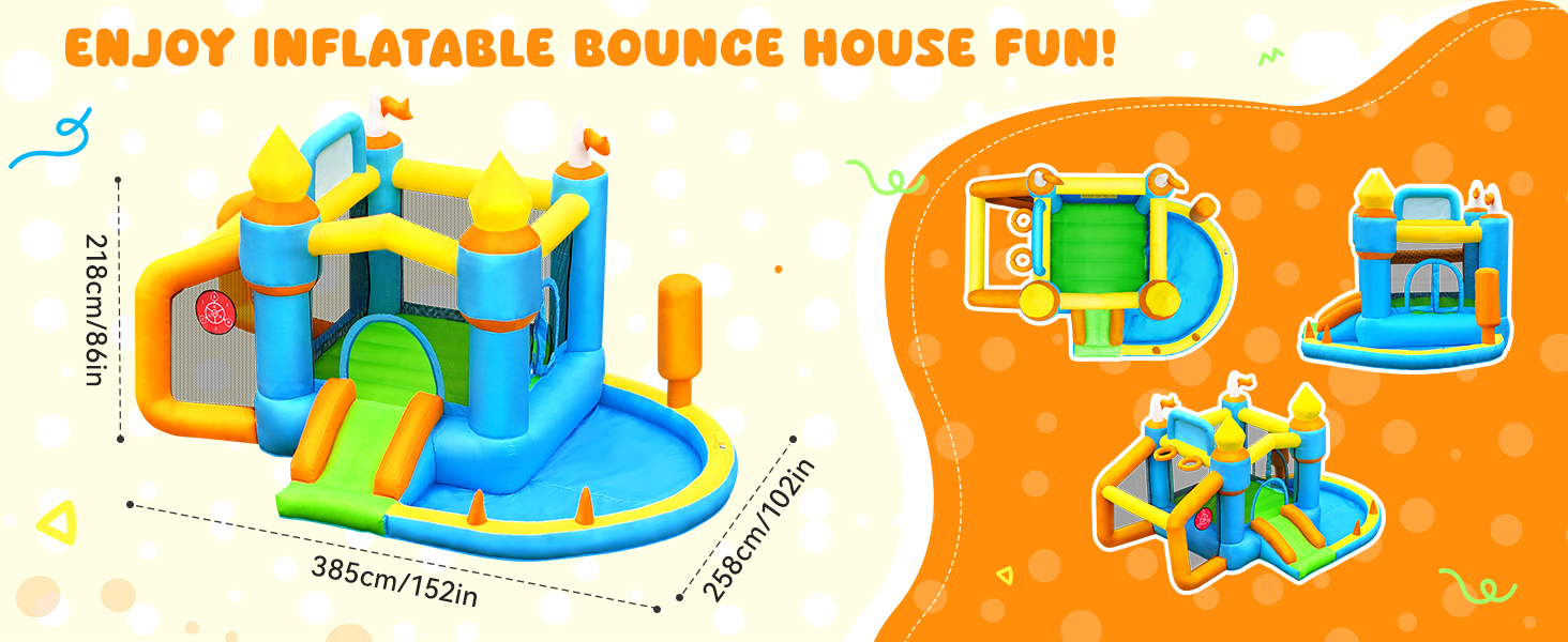 SportBob Castello Gonfiabile per Bambini Esterno Interno con Soffiatore, Scivolo, Piscina di Palline, Salto, Campo da Calcio e Canestro, Adatto per Bambini 3 8 Anni, 385×258×220 cm : Amazon.it: Giochi e giocattoli