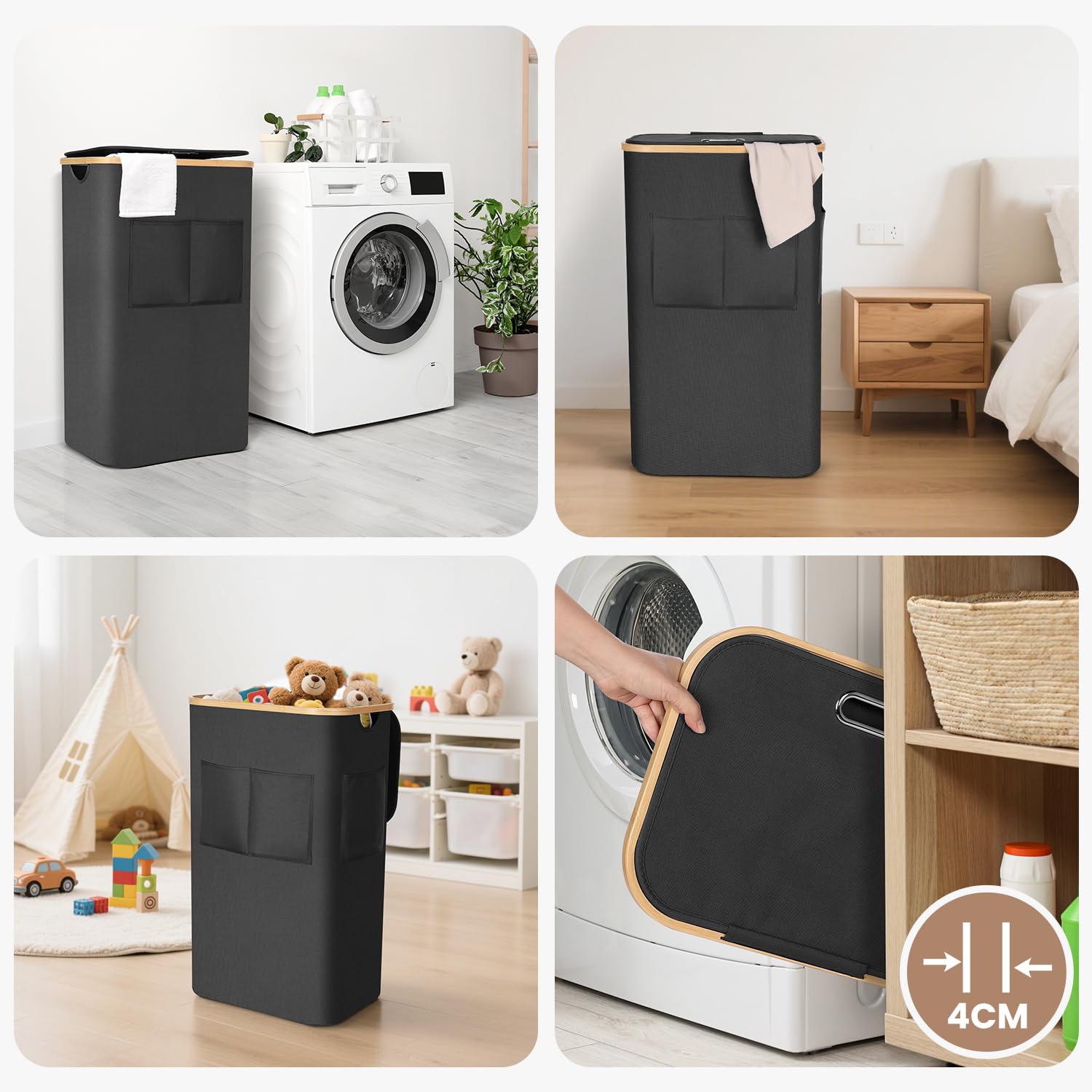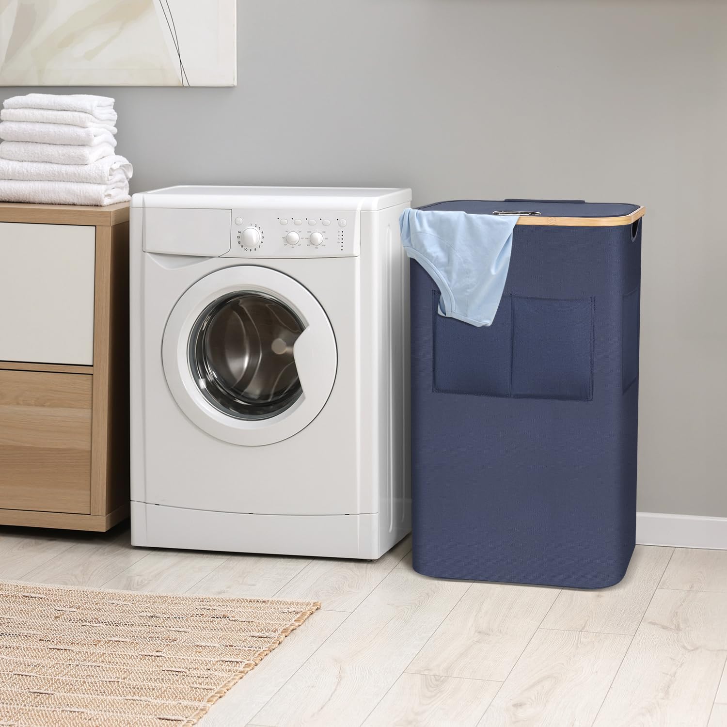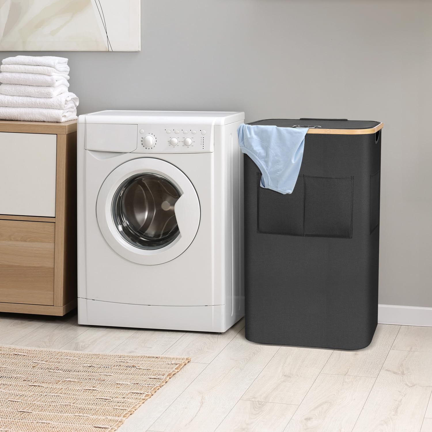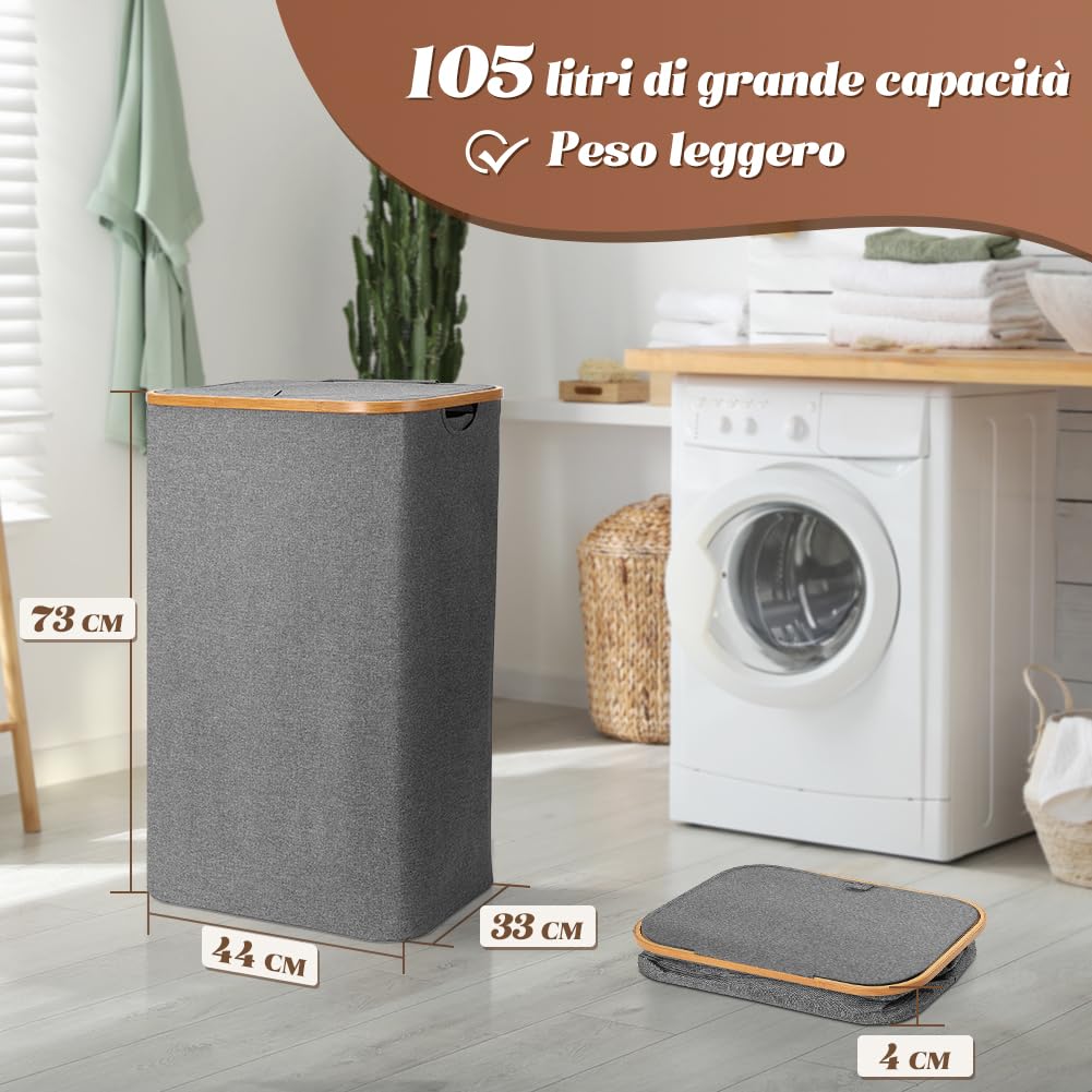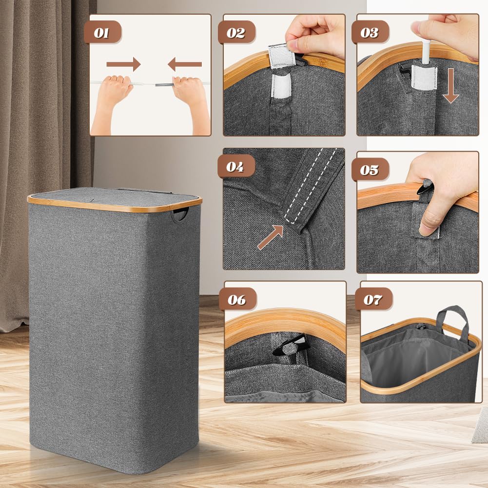 OUSFOT Dirty Laundry Basket for Bathroom Grey 105L Bamboo Laundry Basket with Lid Dirty Laundry Basket with Handles Dirty Clothes Basket