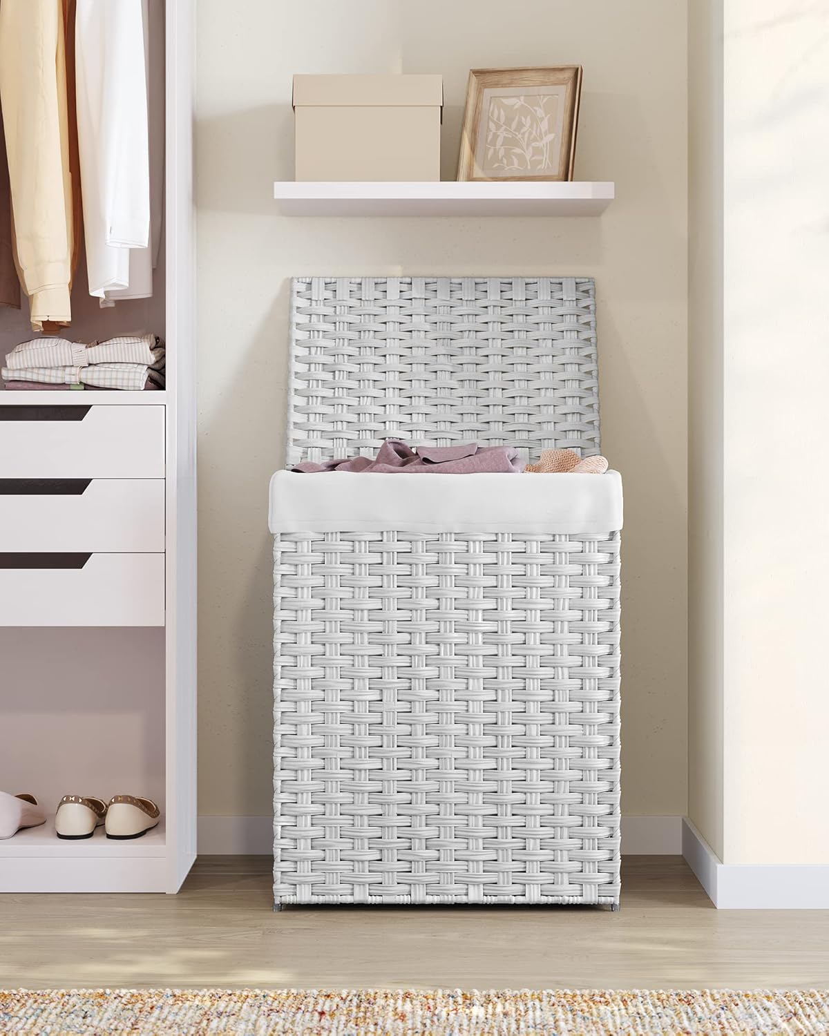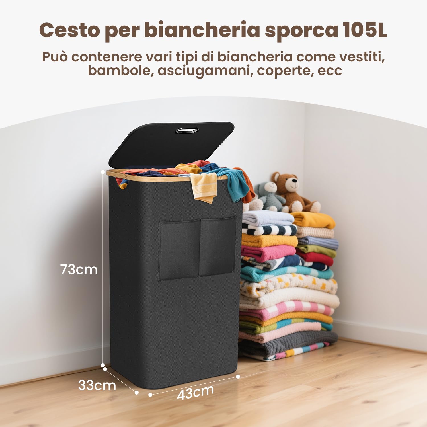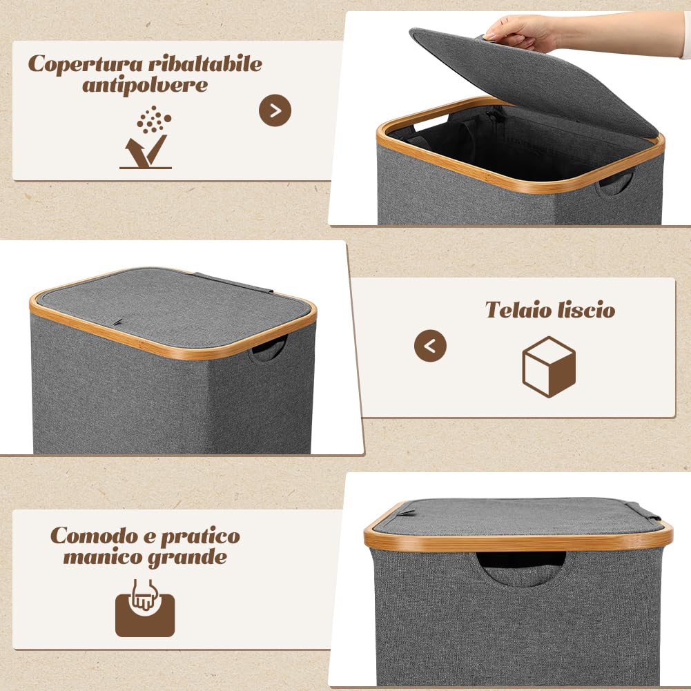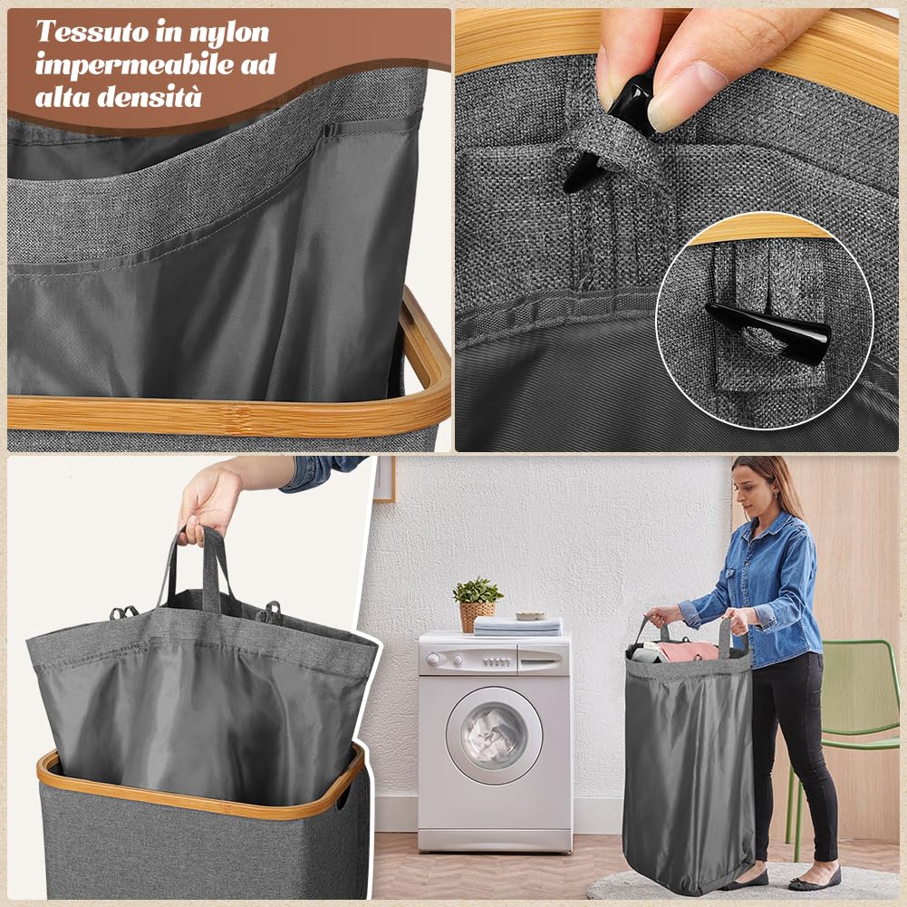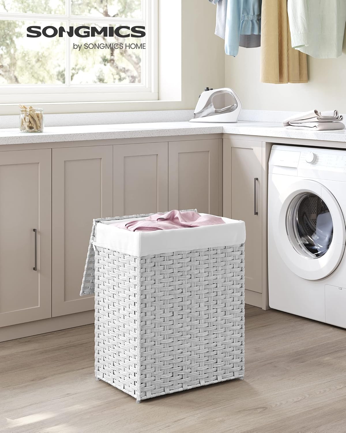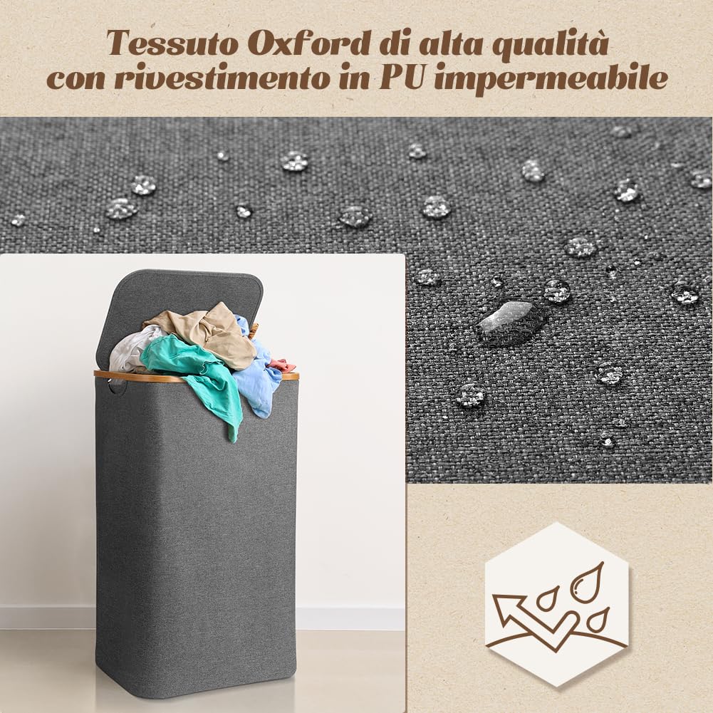 OUSFOT Dirty Laundry Basket for Bathroom Grey 105L Bamboo Laundry Basket with Lid Dirty Laundry Basket with Handles Dirty Clothes Basket