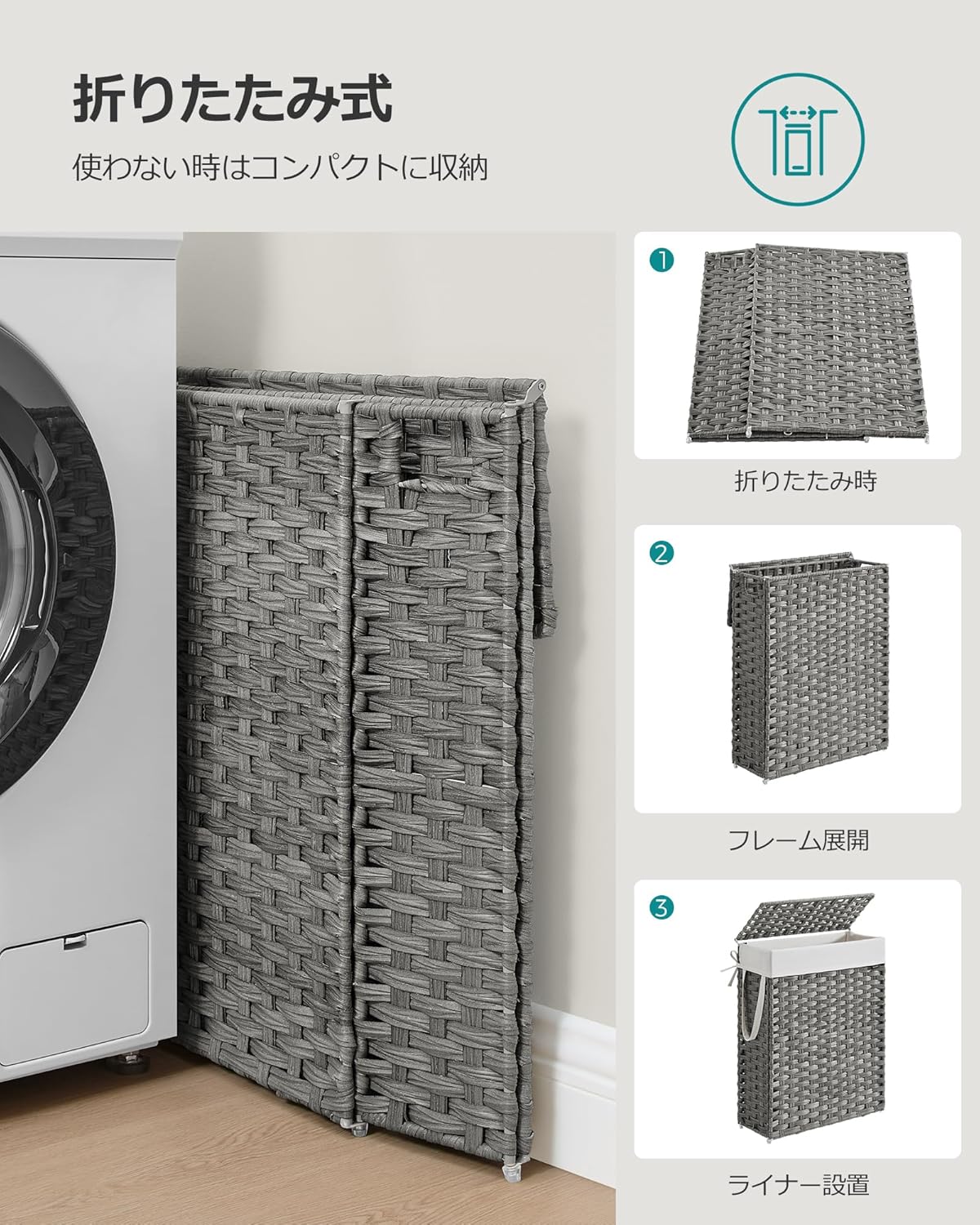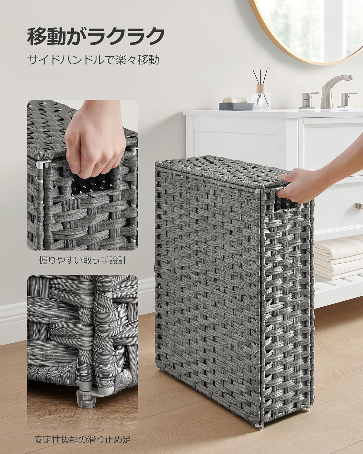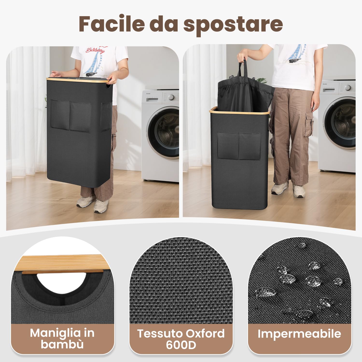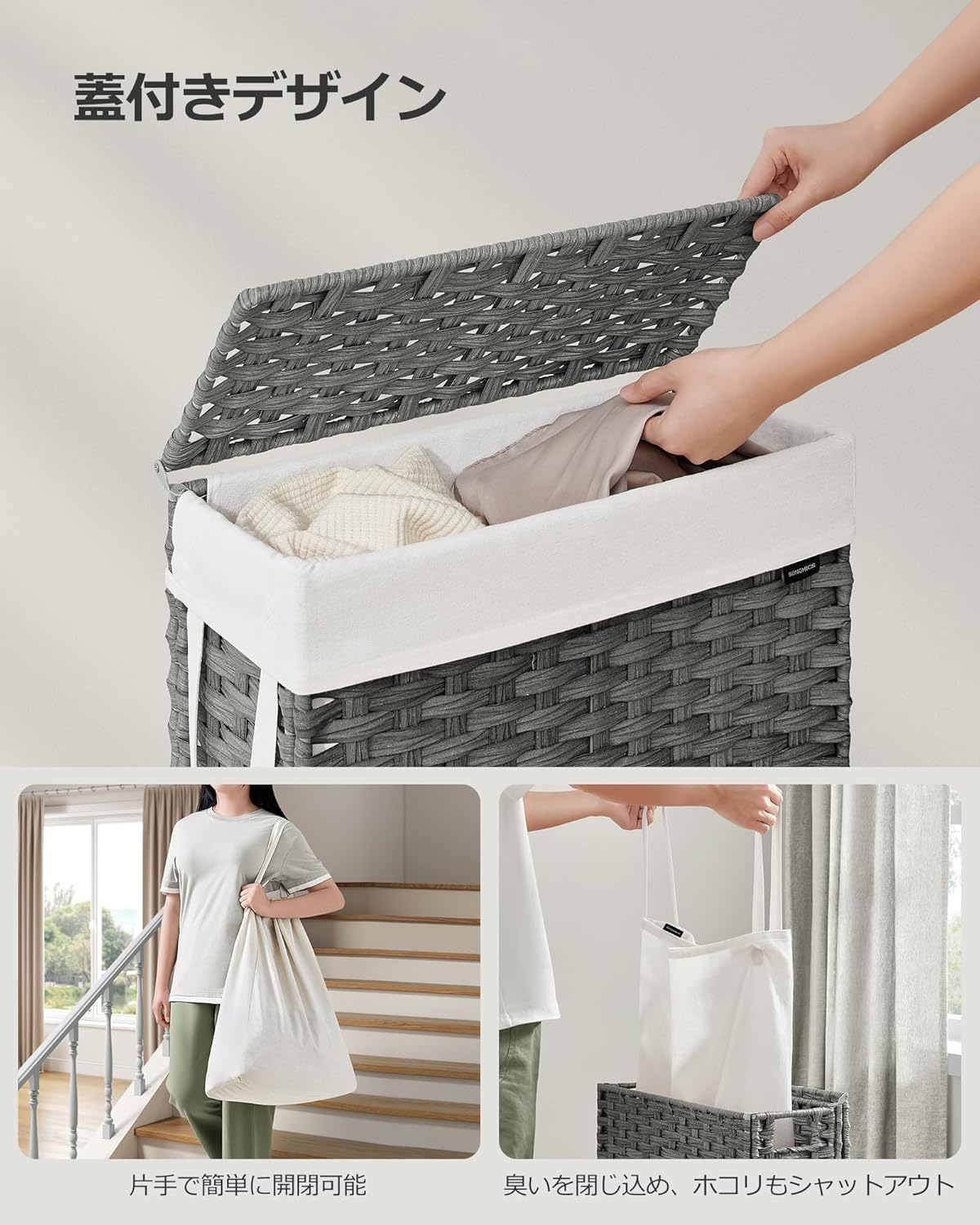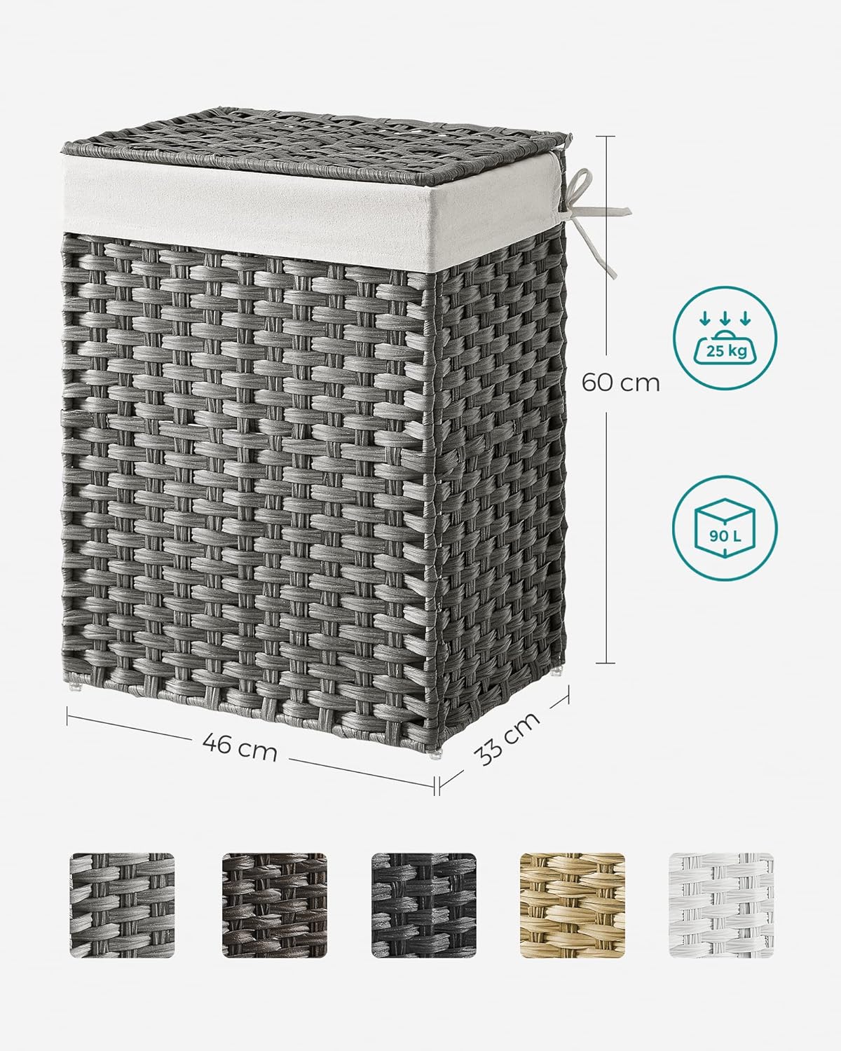 OUSFOT Dirty Laundry Basket for Bathroom Grey 105L Bamboo Laundry Basket with Lid Dirty Laundry Basket with Handles Dirty Clothes Basket
