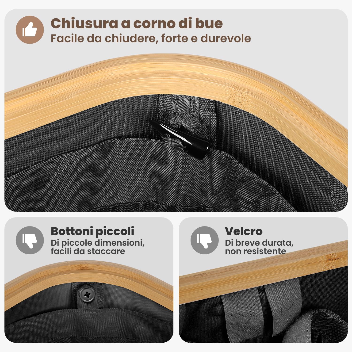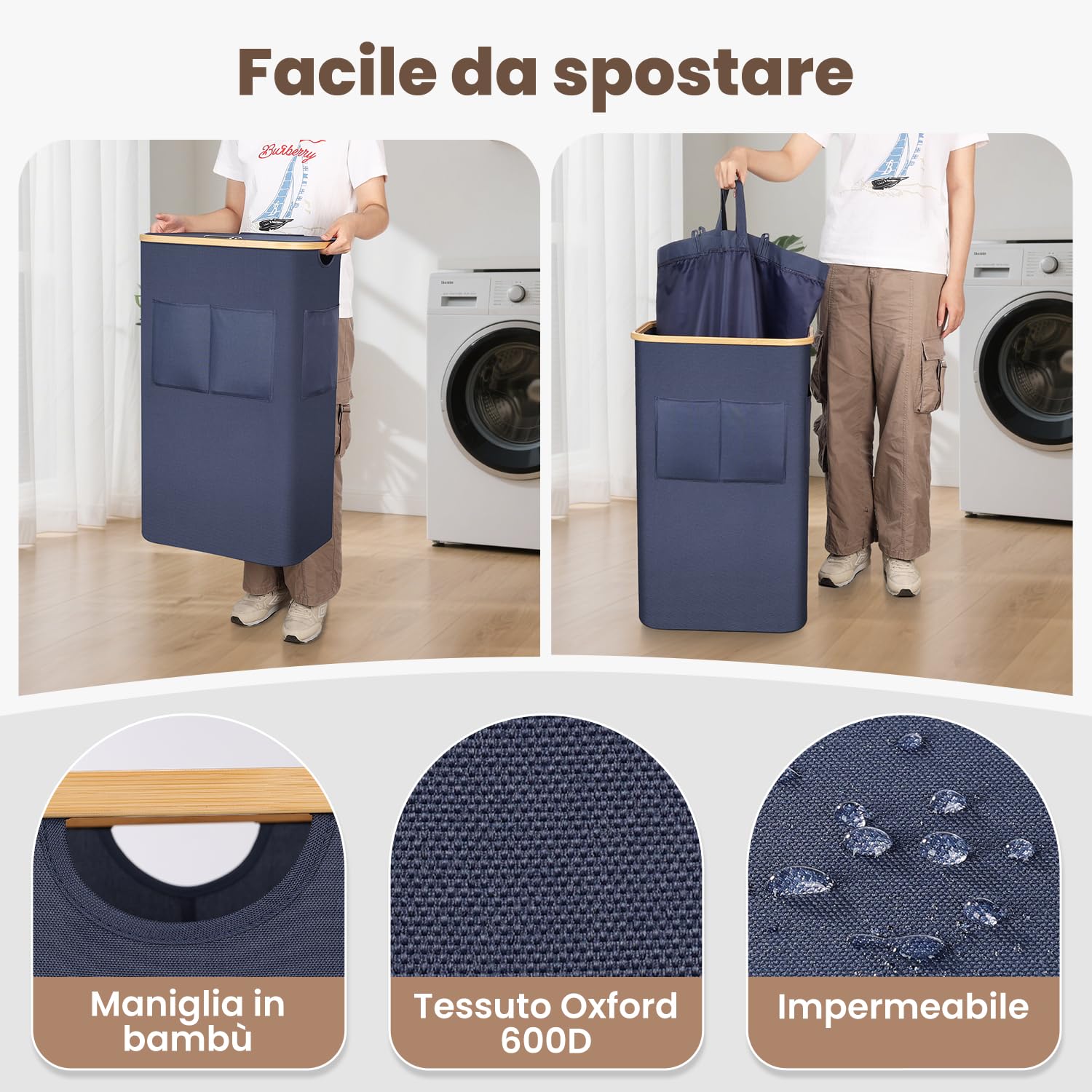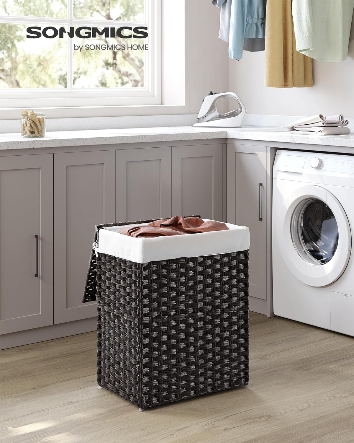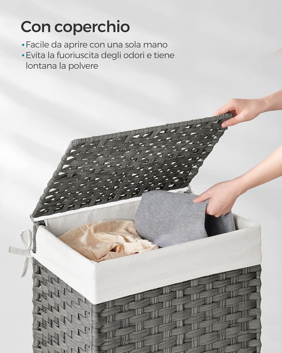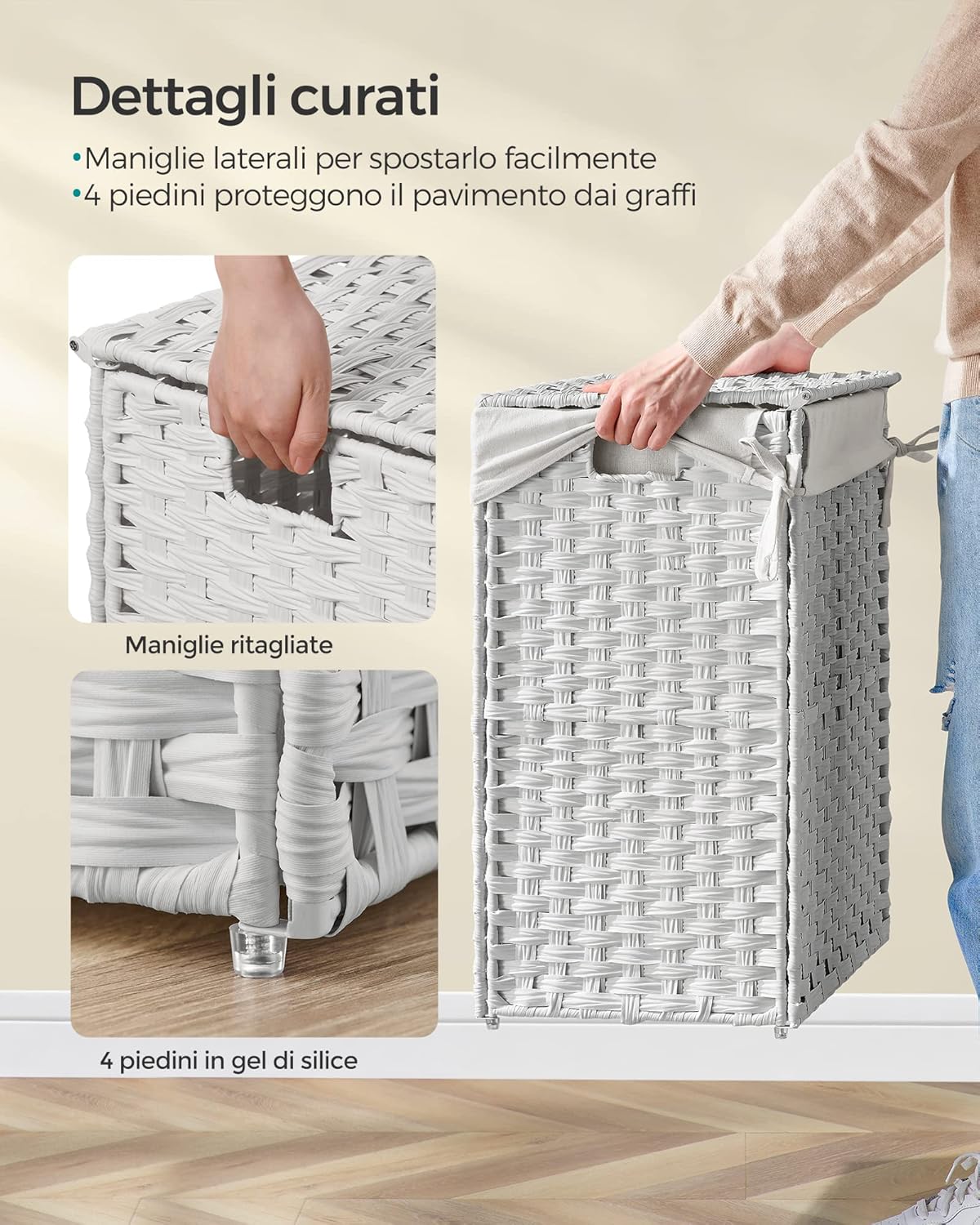 OUSFOT Dirty Laundry Basket for Bathroom Grey 105L Bamboo Laundry Basket with Lid Dirty Laundry Basket with Handles Dirty Clothes Basket