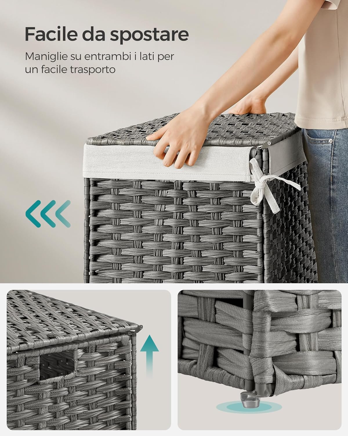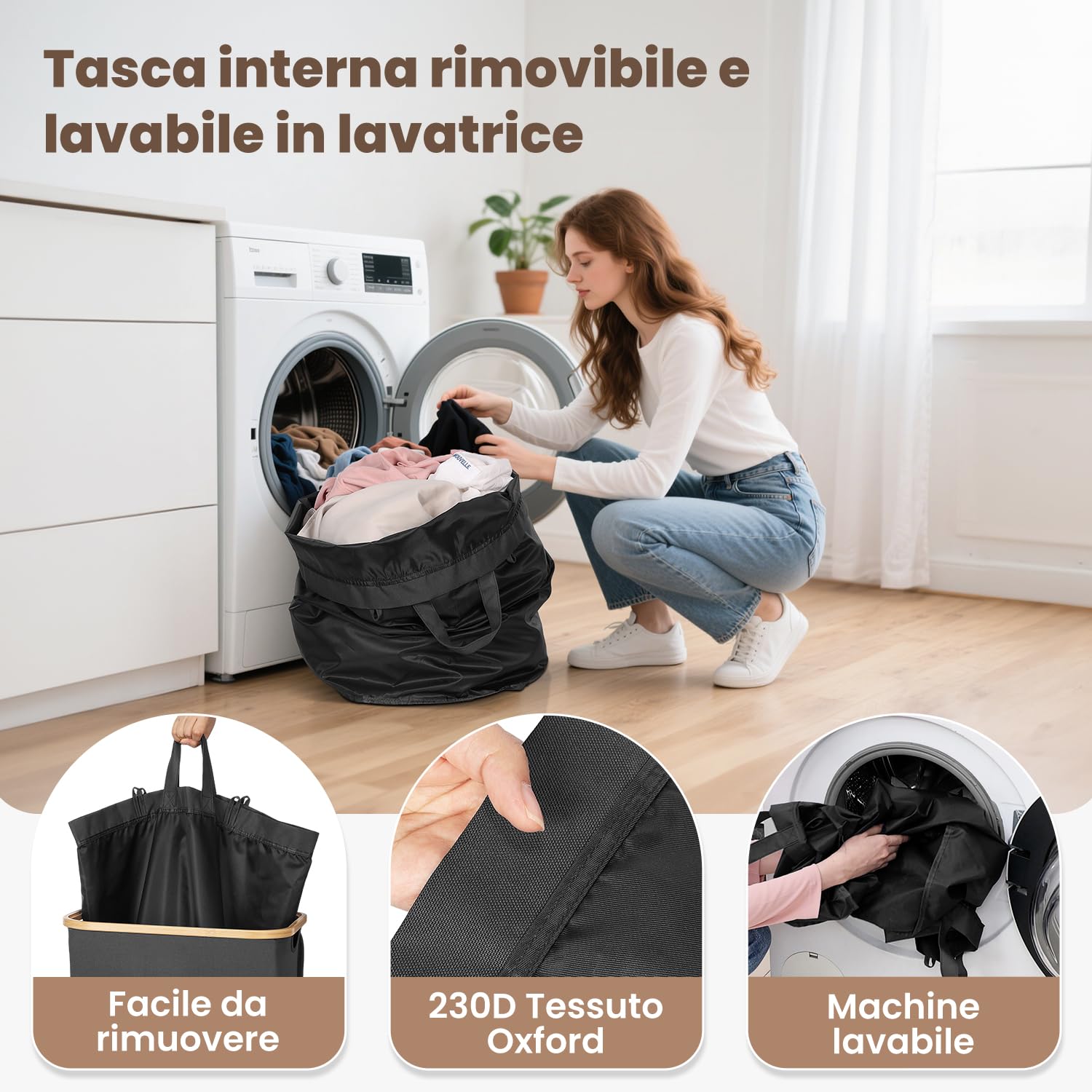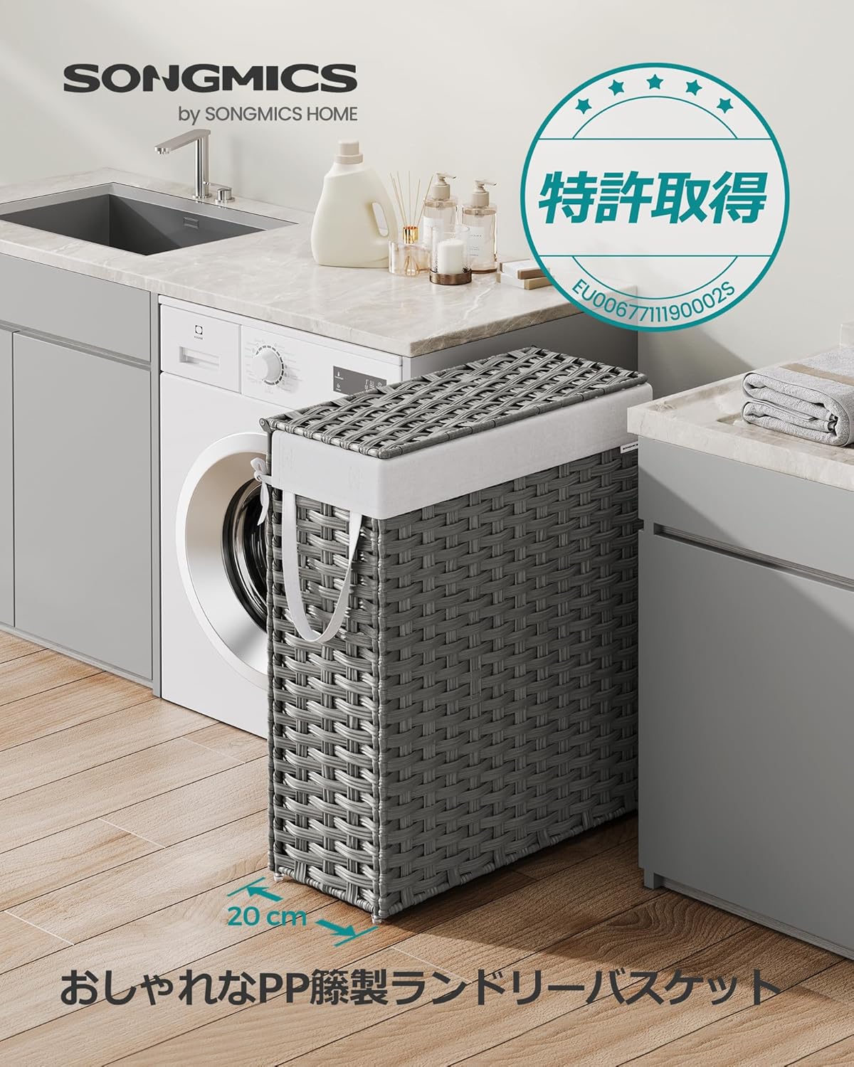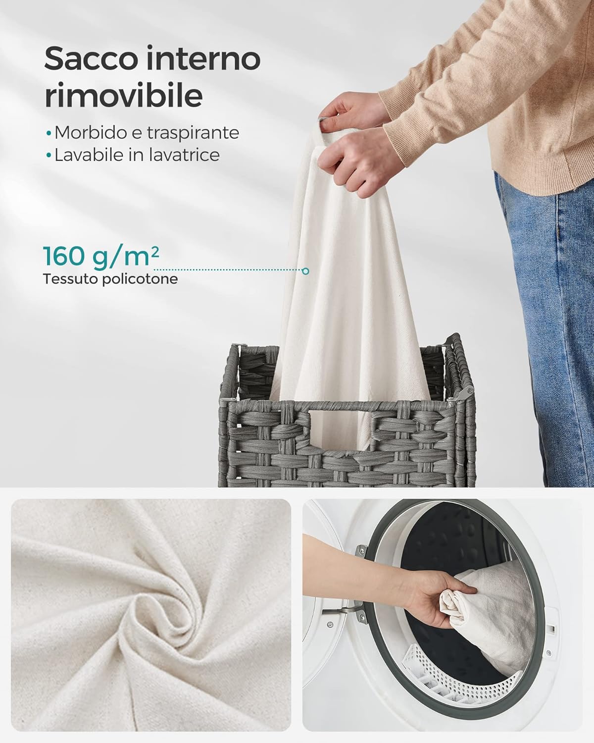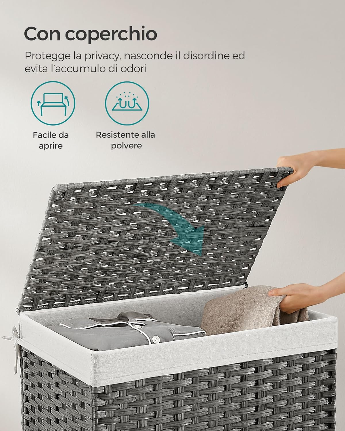 OUSFOT Dirty Laundry Basket for Bathroom Grey 105L Bamboo Laundry Basket with Lid Dirty Laundry Basket with Handles Dirty Clothes Basket