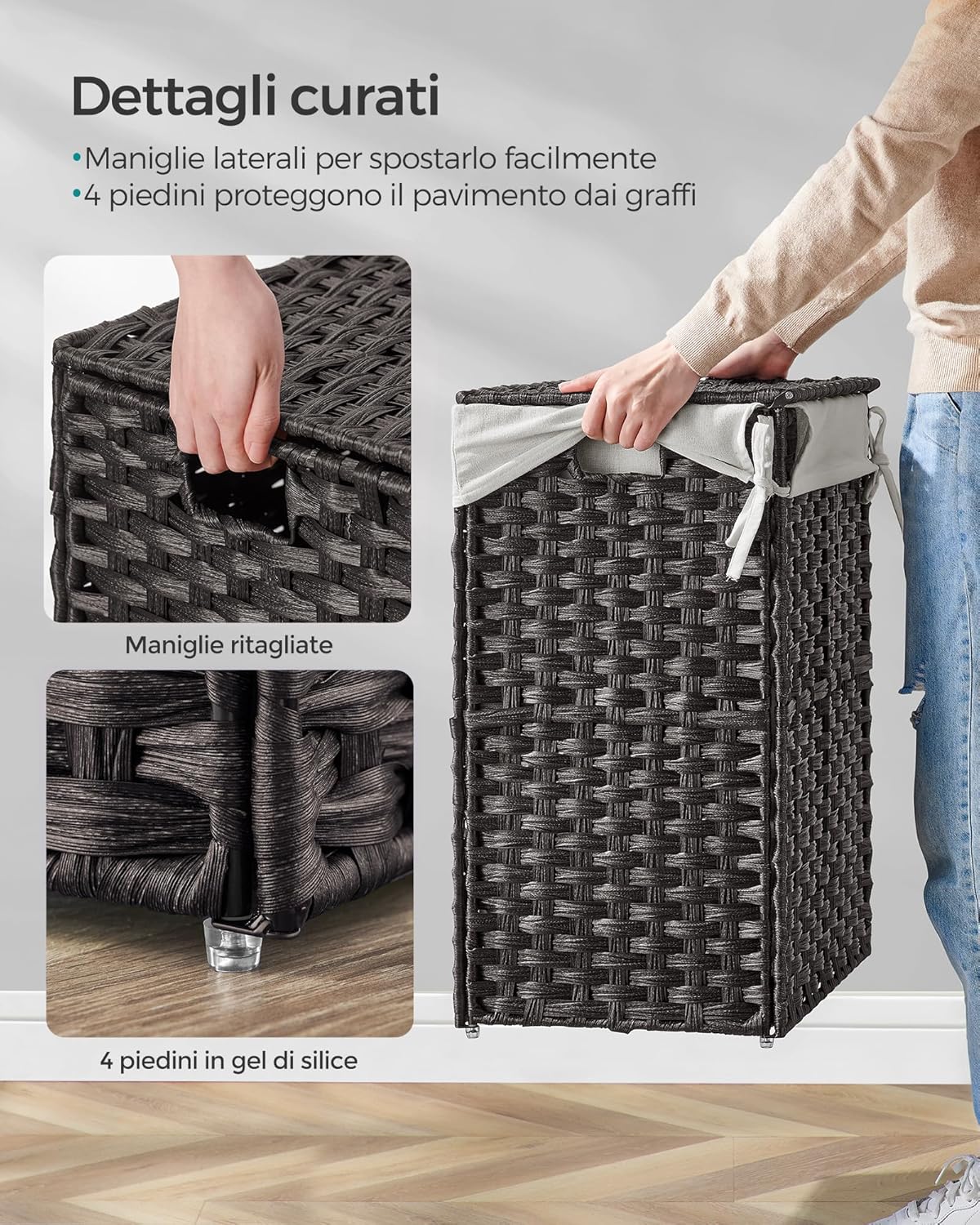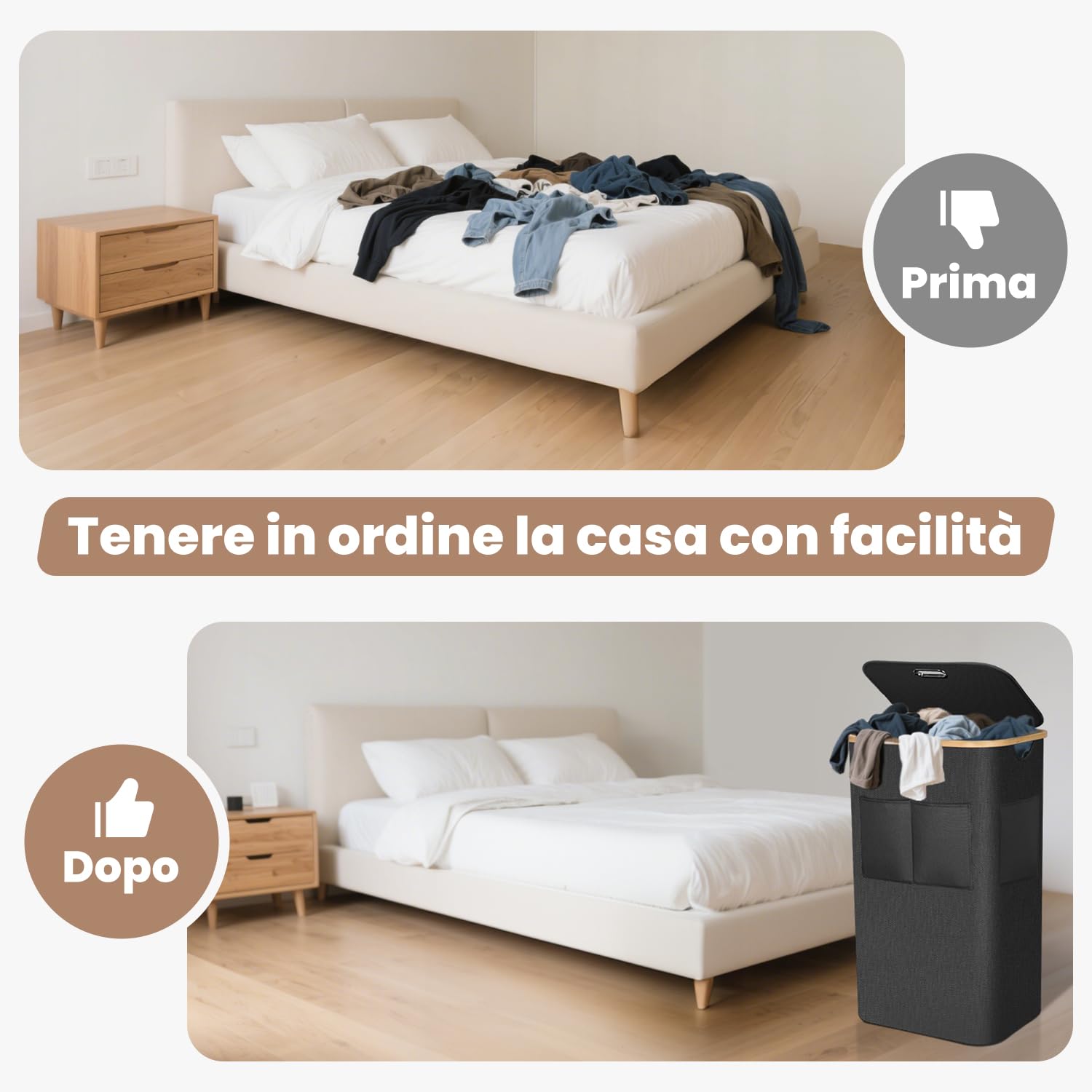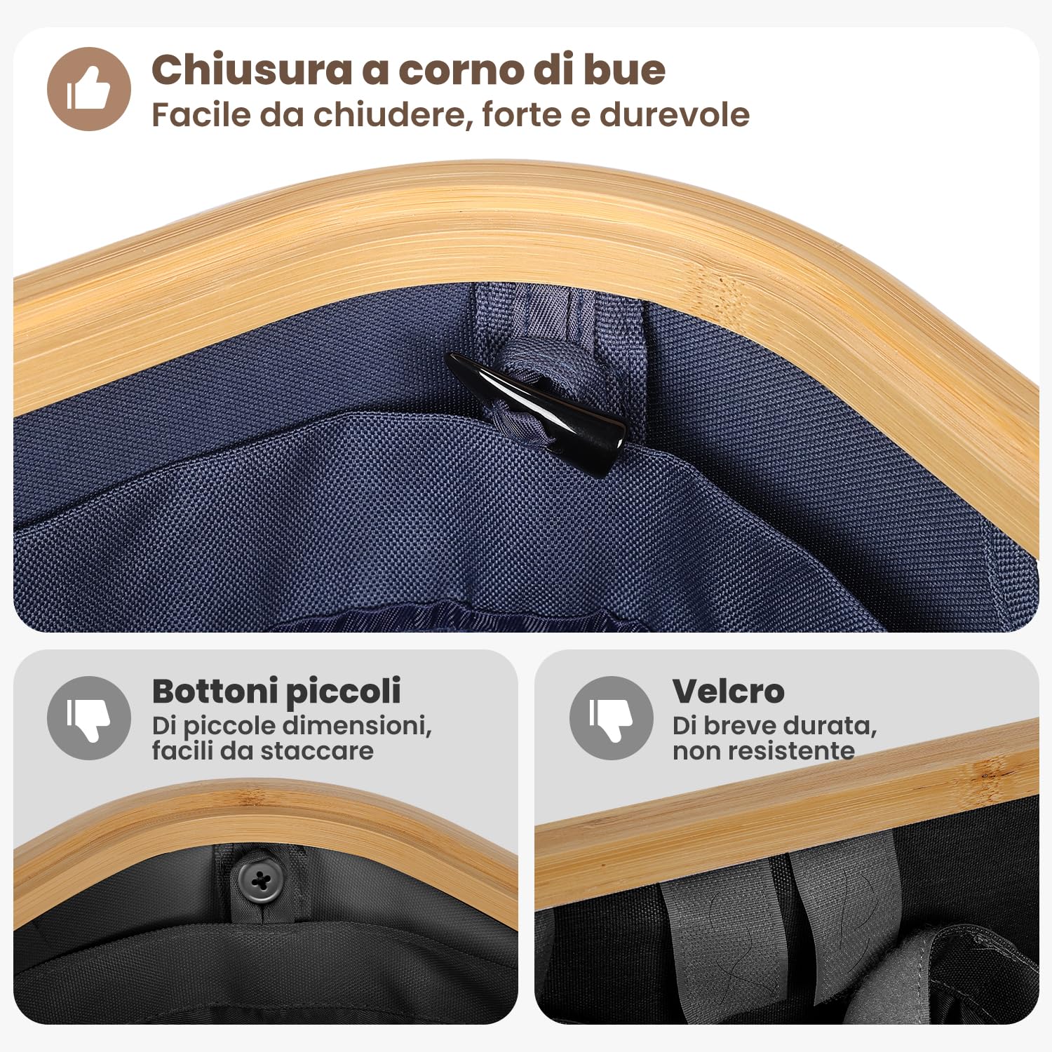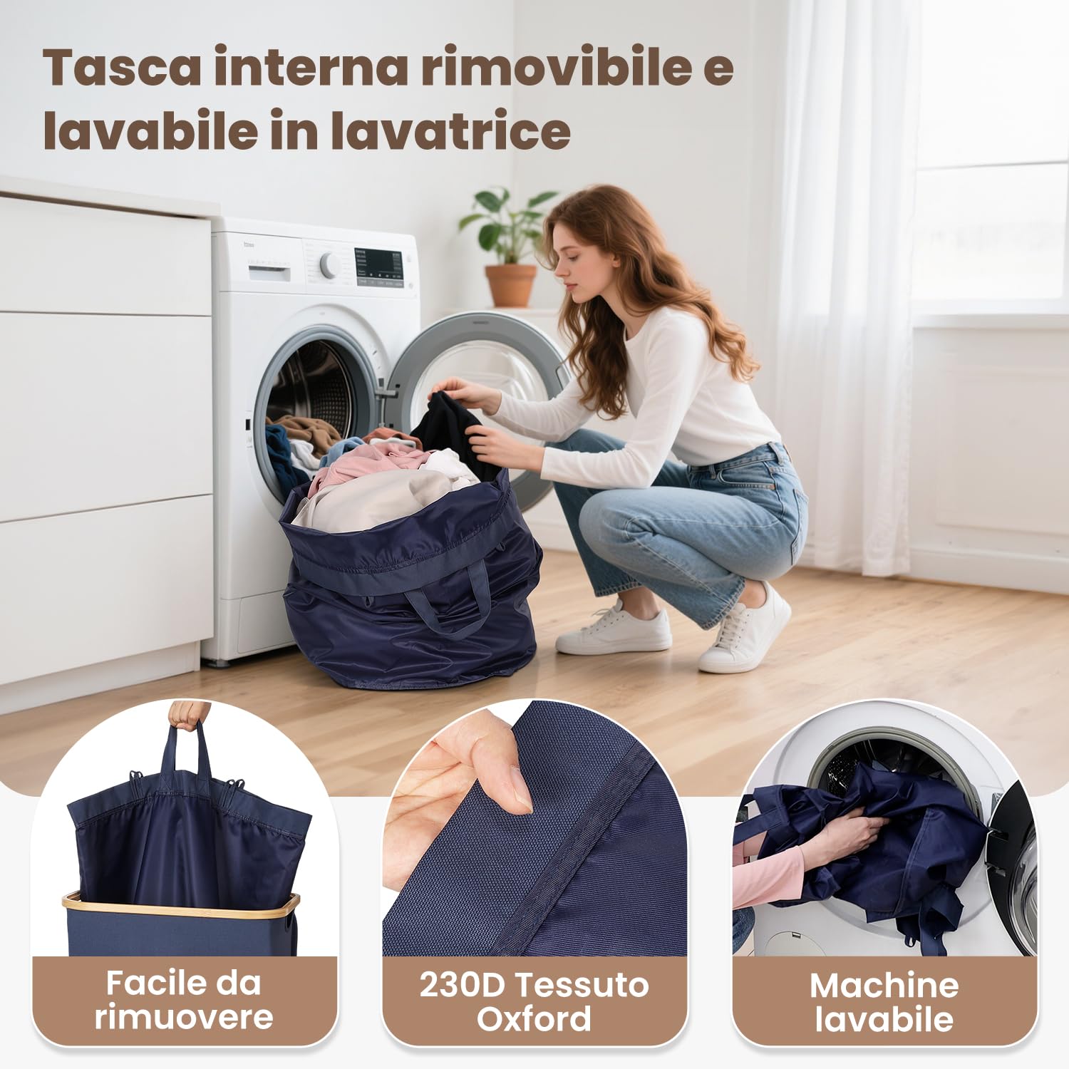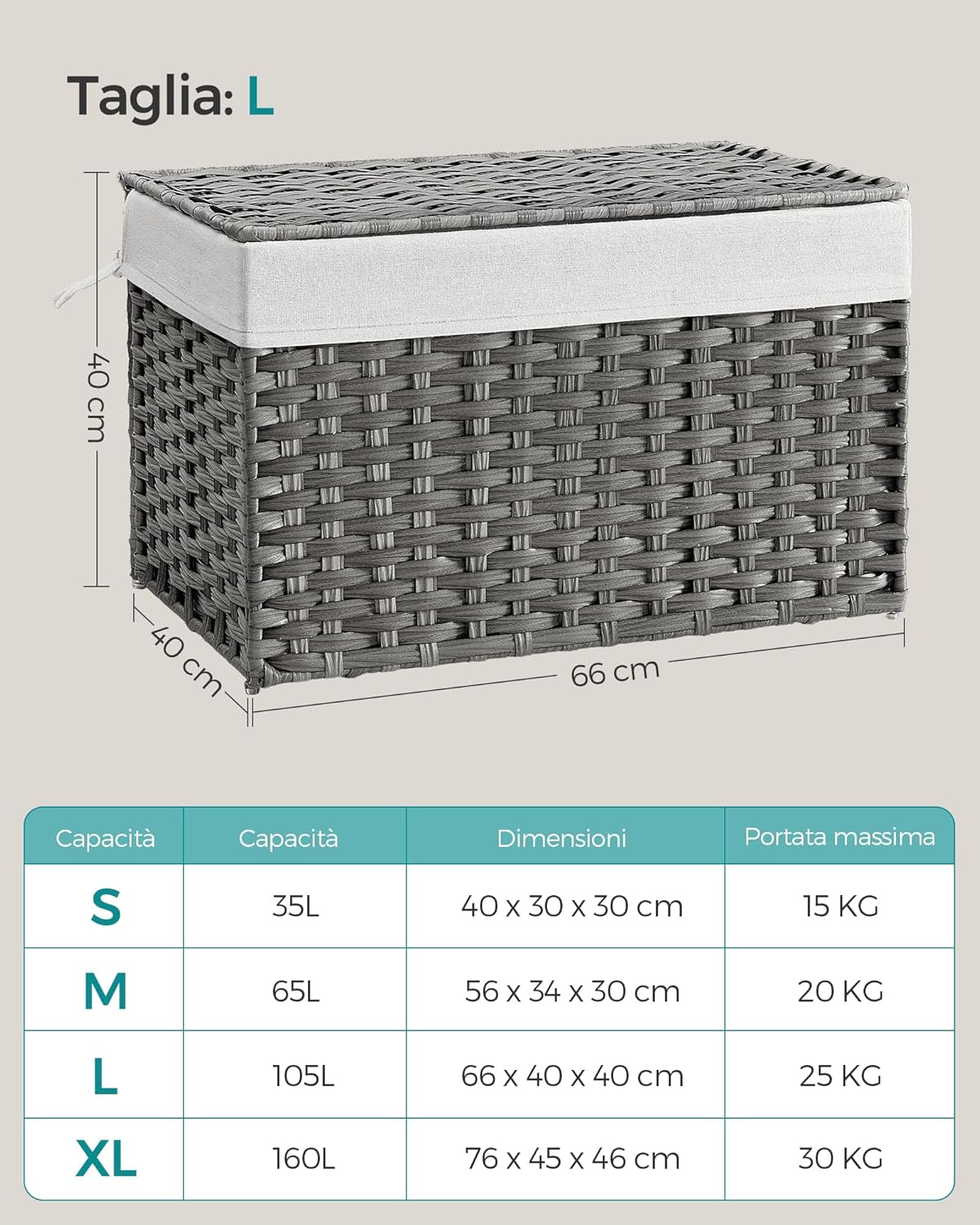 OUSFOT Dirty Laundry Basket for Bathroom Grey 105L Bamboo Laundry Basket with Lid Dirty Laundry Basket with Handles Dirty Clothes Basket