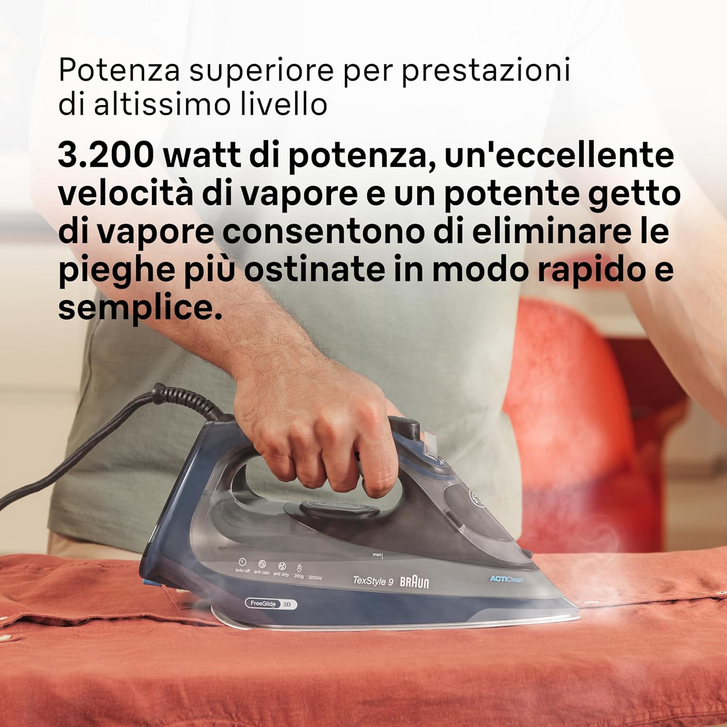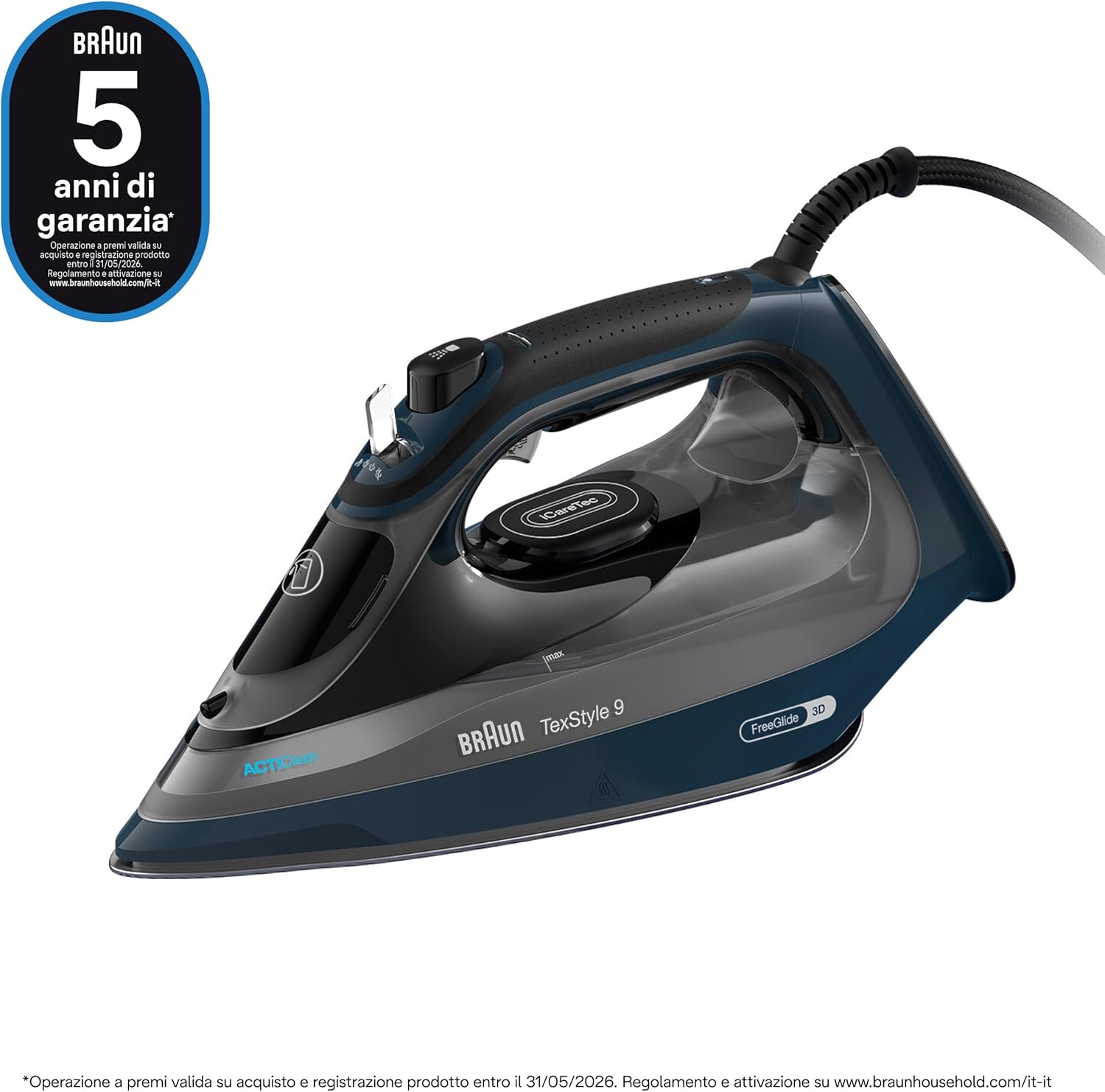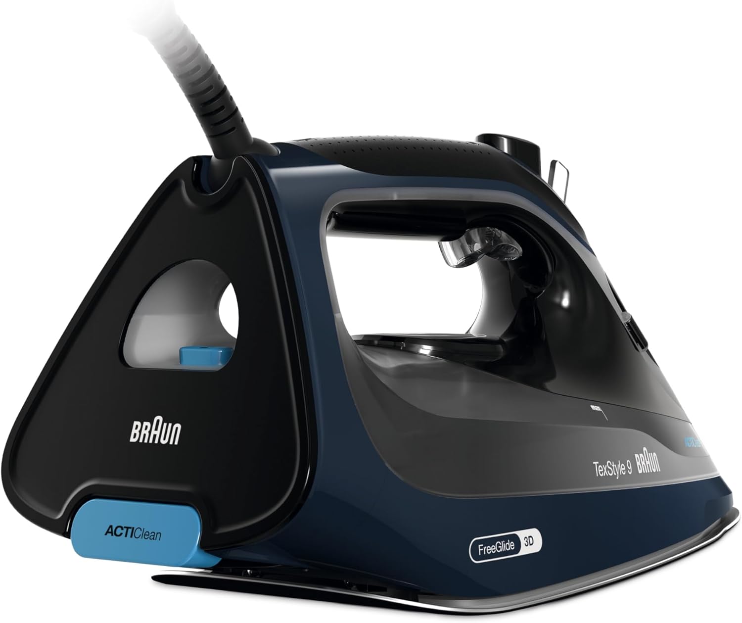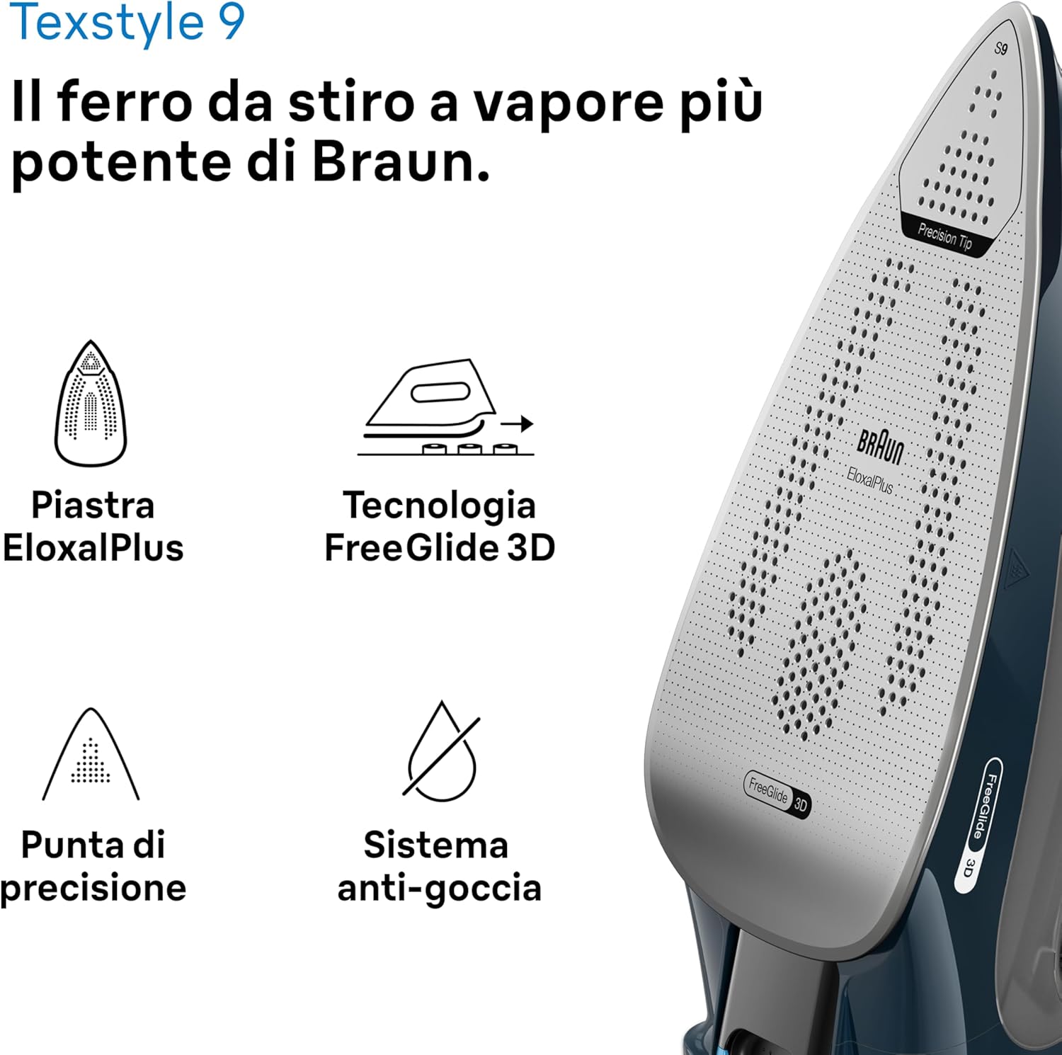 Braun TexStyle 9 SI9682DB Steam Iron with 5 Years Service, Steam Blow 260 g/min, Energy Saving ECOMODE Mode, 3D Eloxalplus Freeglide Plate, 330 ml Tank, Dark Blue