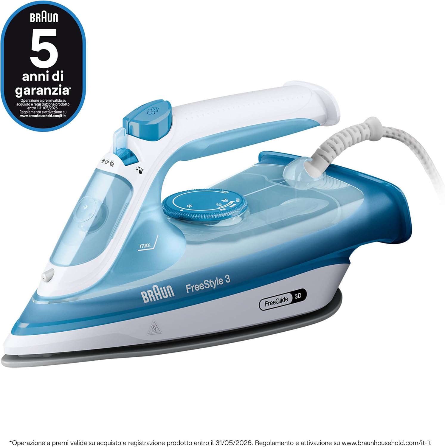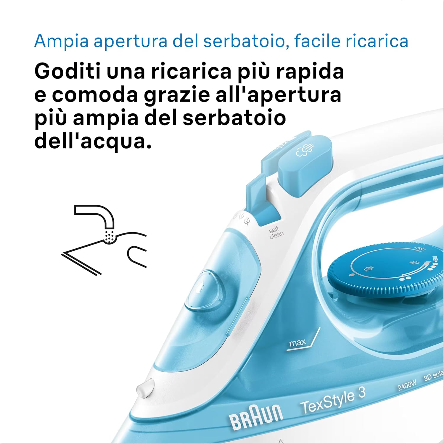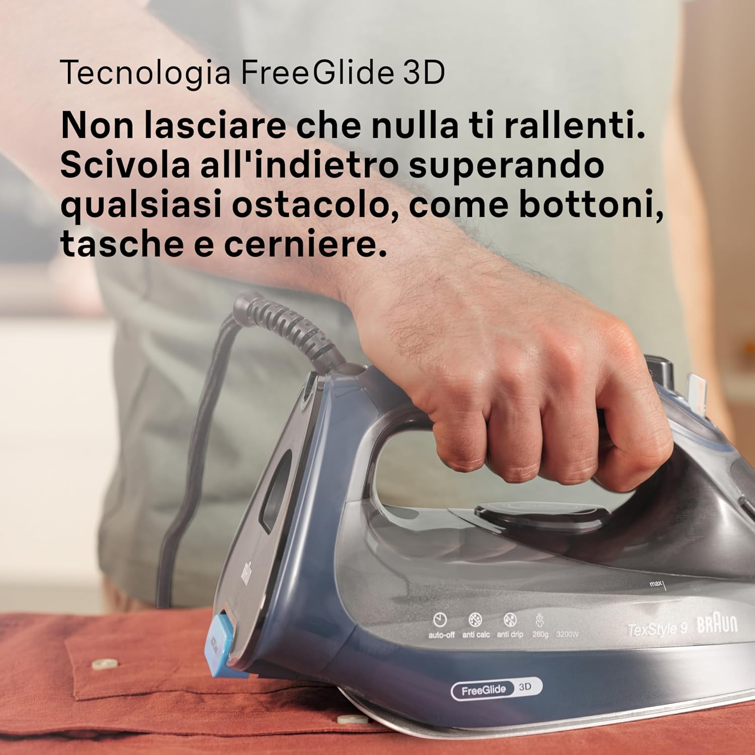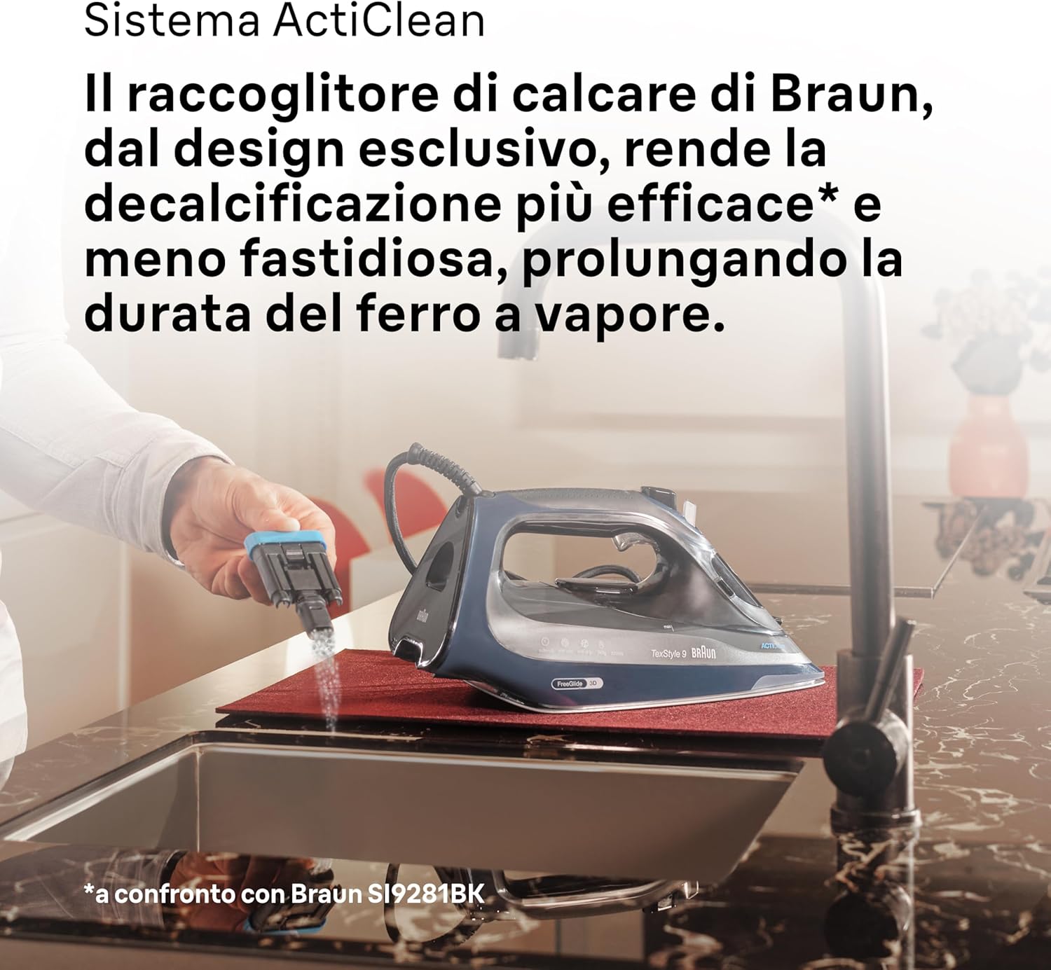 Braun TexStyle 9 SI9682DB Steam Iron with 5 Years Service, Steam Blow 260 g/min, Energy Saving ECOMODE Mode, 3D Eloxalplus Freeglide Plate, 330 ml Tank, Dark Blue