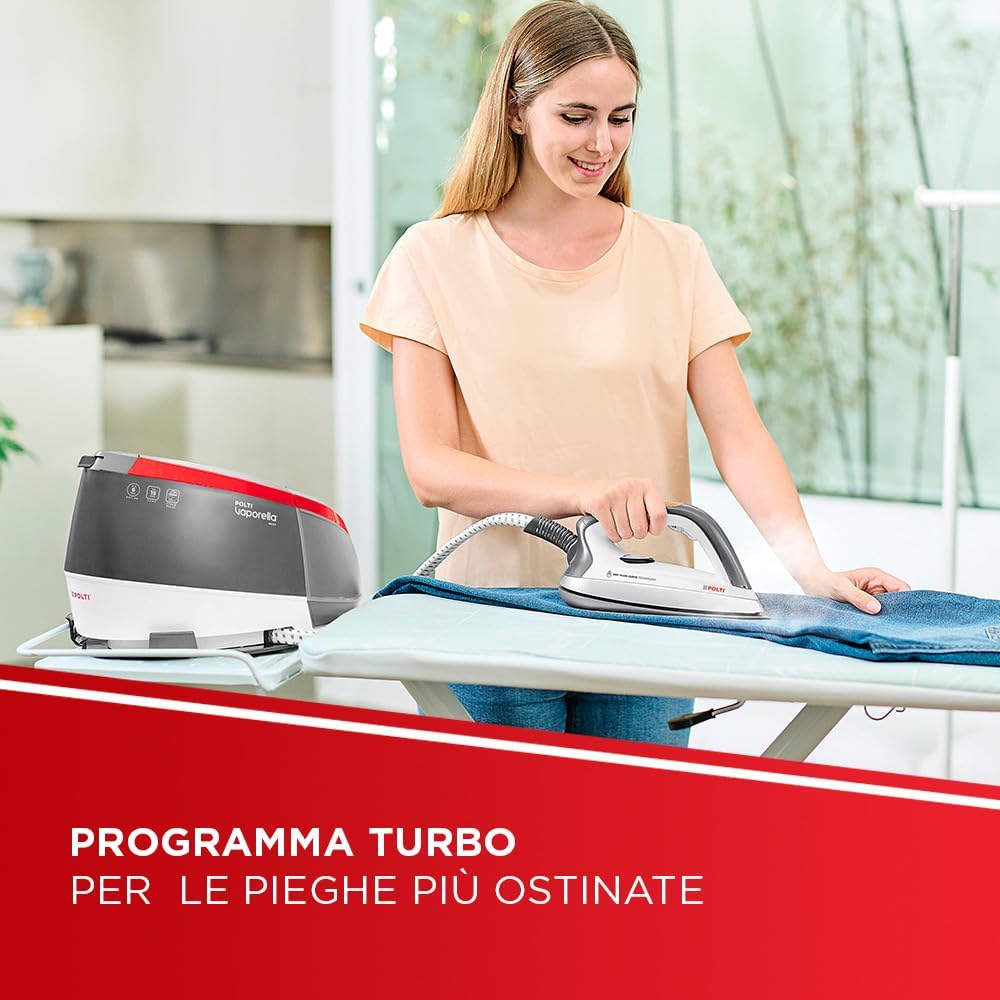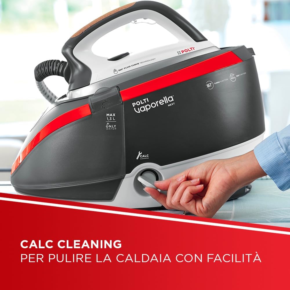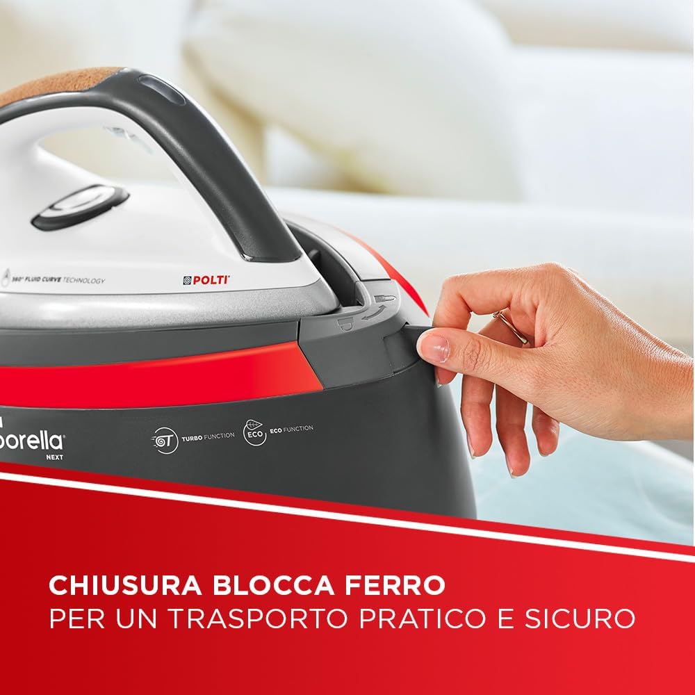 Polti Vaporella Next VN18.30 Steam Iron with Boiler, Pressure up to 6 Bar, Power 2200 W, Eco and Turbo Function, Unlimited Autonomy, Steam Pulse 350 g, Grey and Red