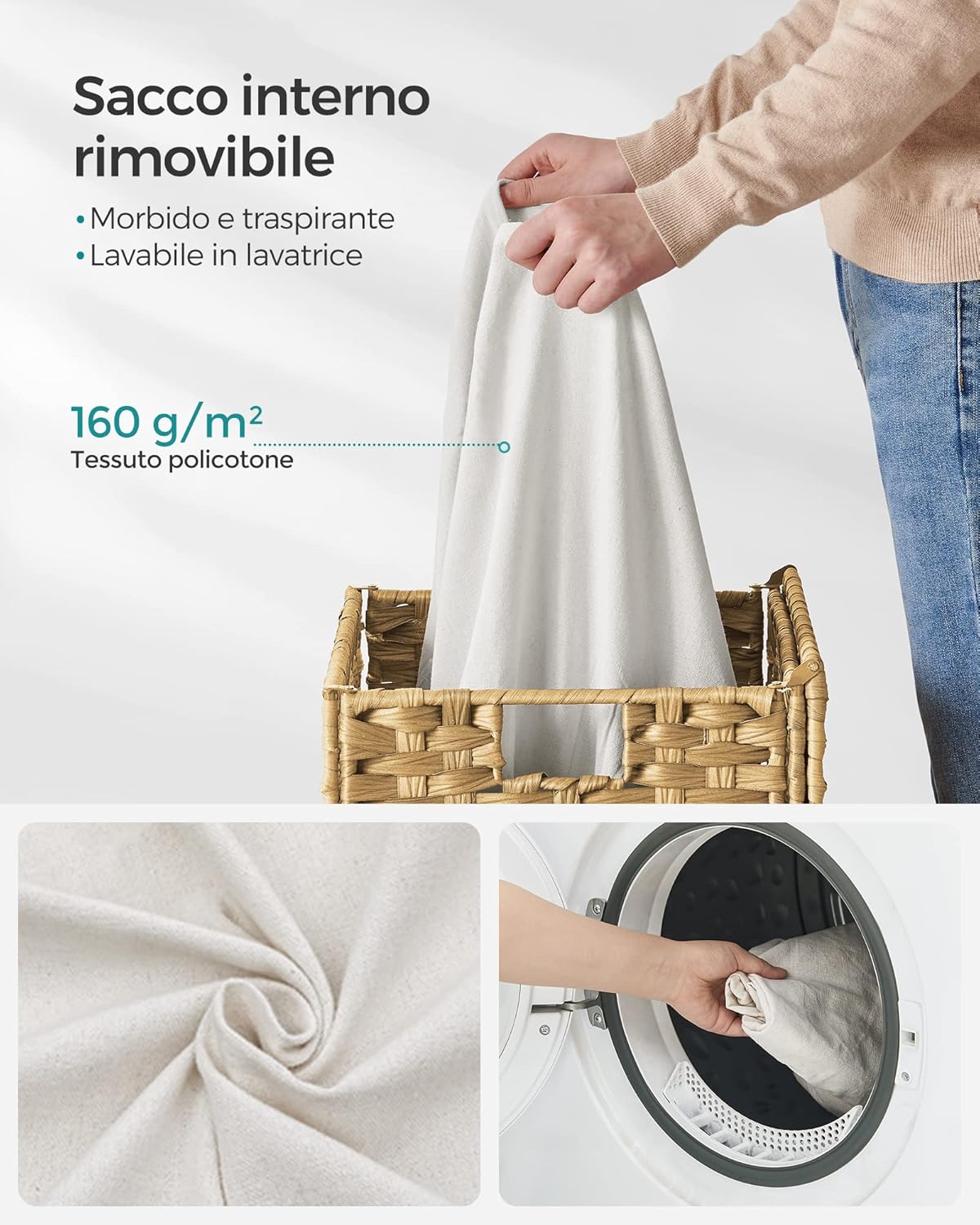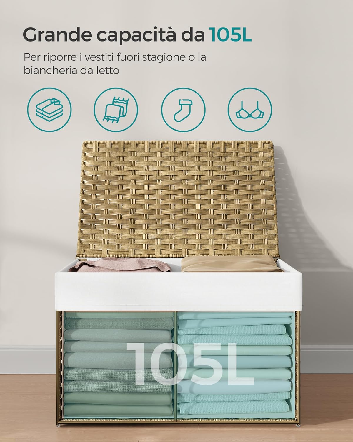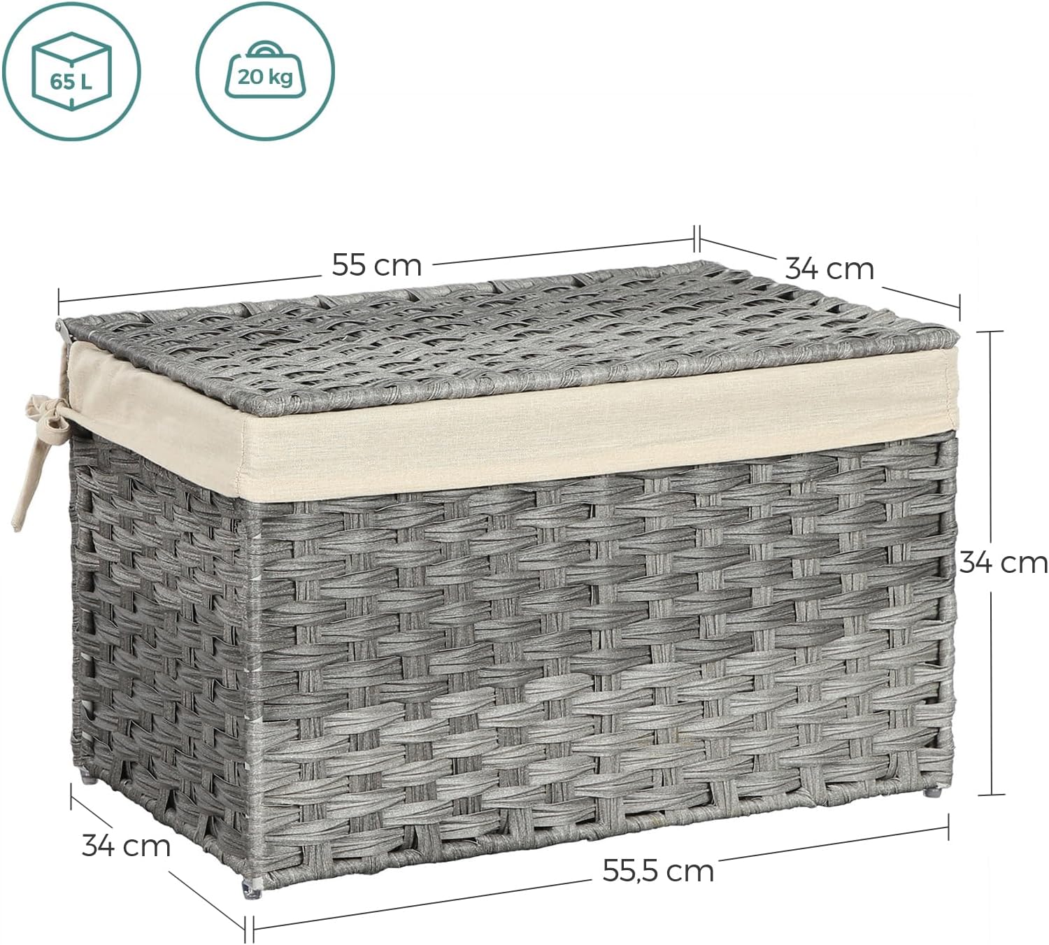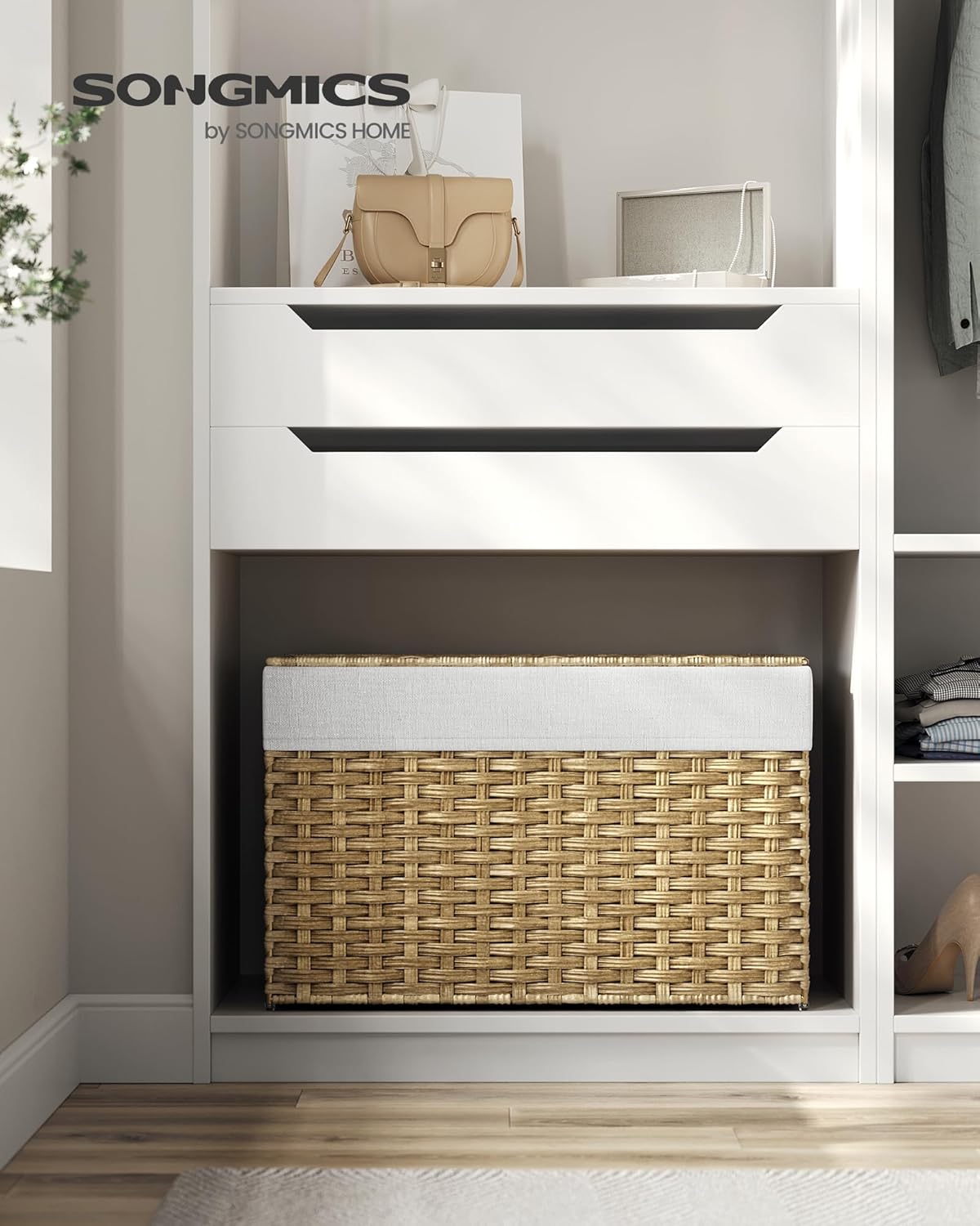 SONGMICS Storage Basket, 90L Laundry Basket with Lid, Foldable, Removable Fabric Bag with Handles, Living Room Bedroom Laundry Room, Natural LCB51NL