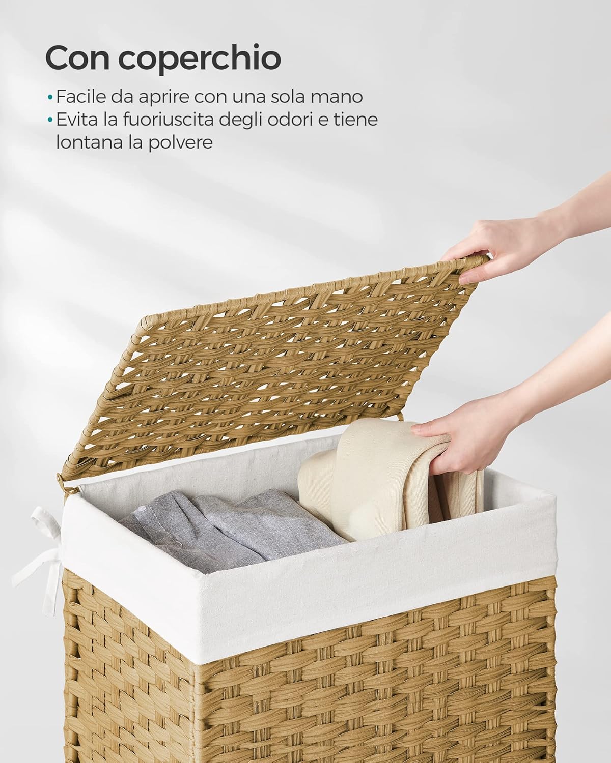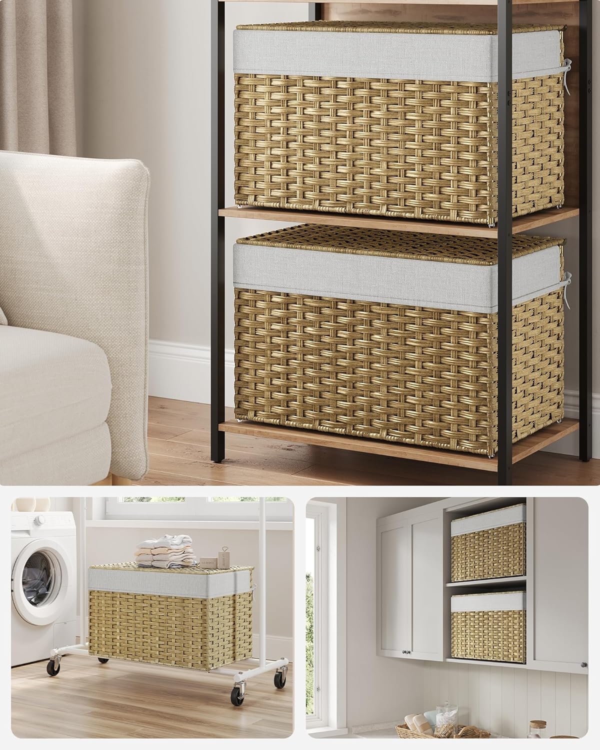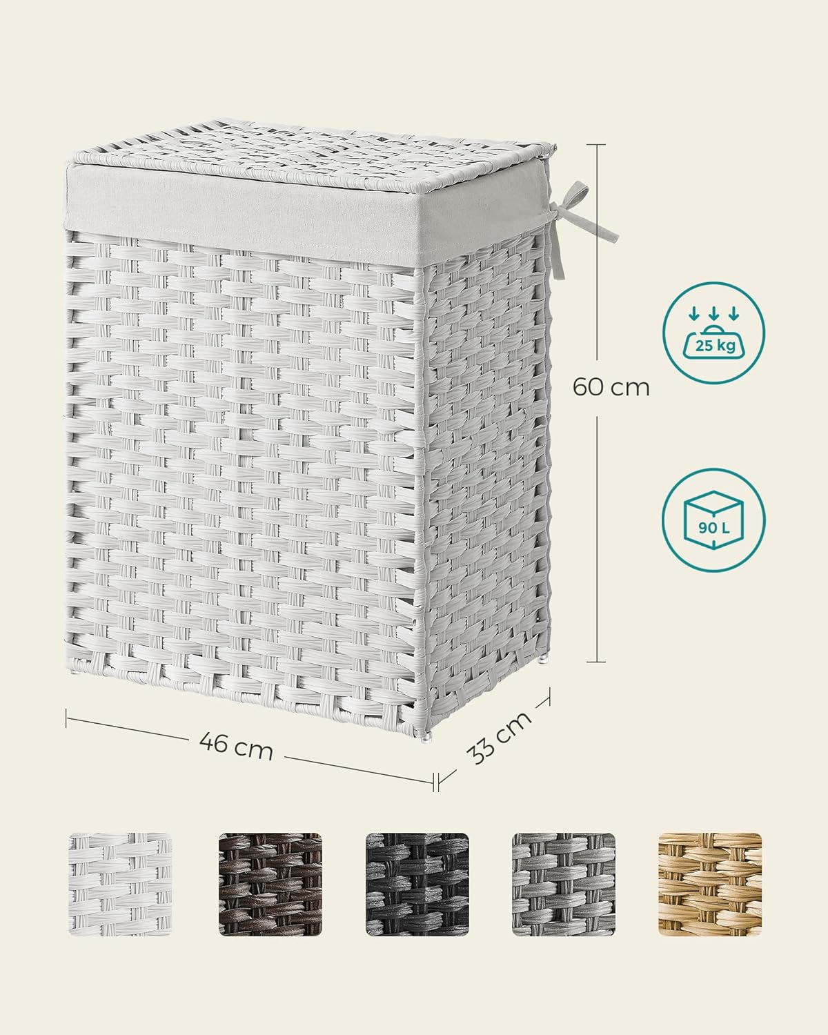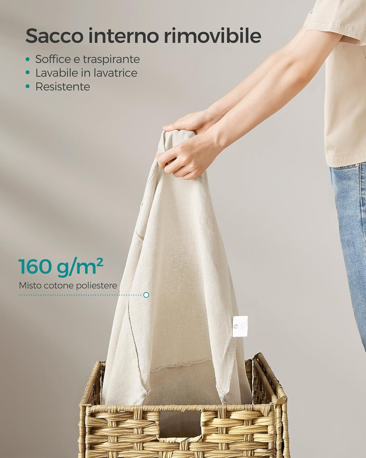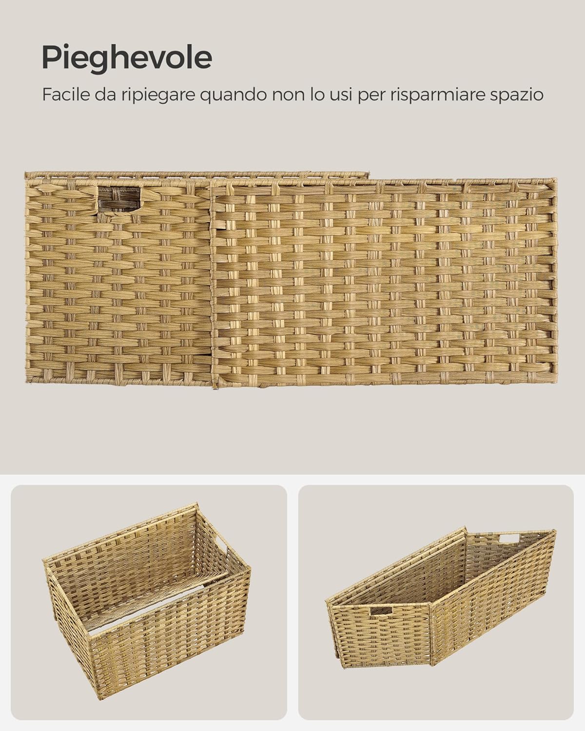 SONGMICS Storage Basket, 90L Laundry Basket with Lid, Foldable, Removable Fabric Bag with Handles, Living Room Bedroom Laundry Room, Natural LCB51NL