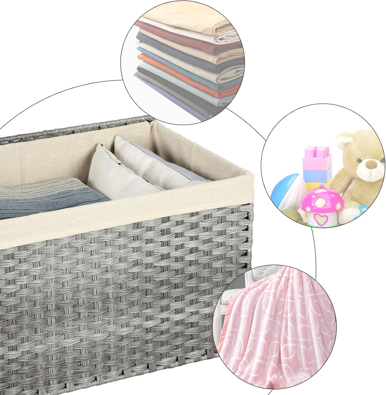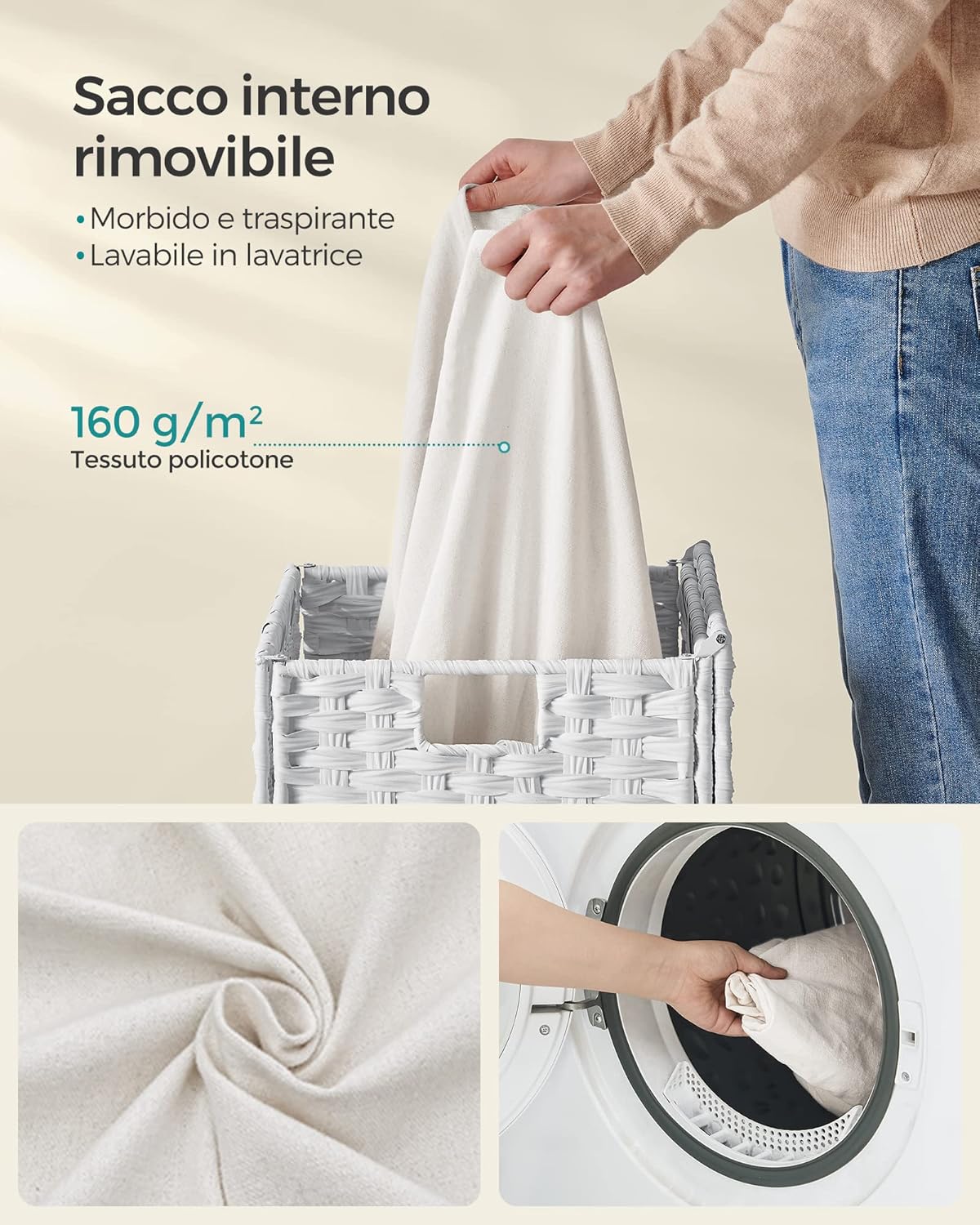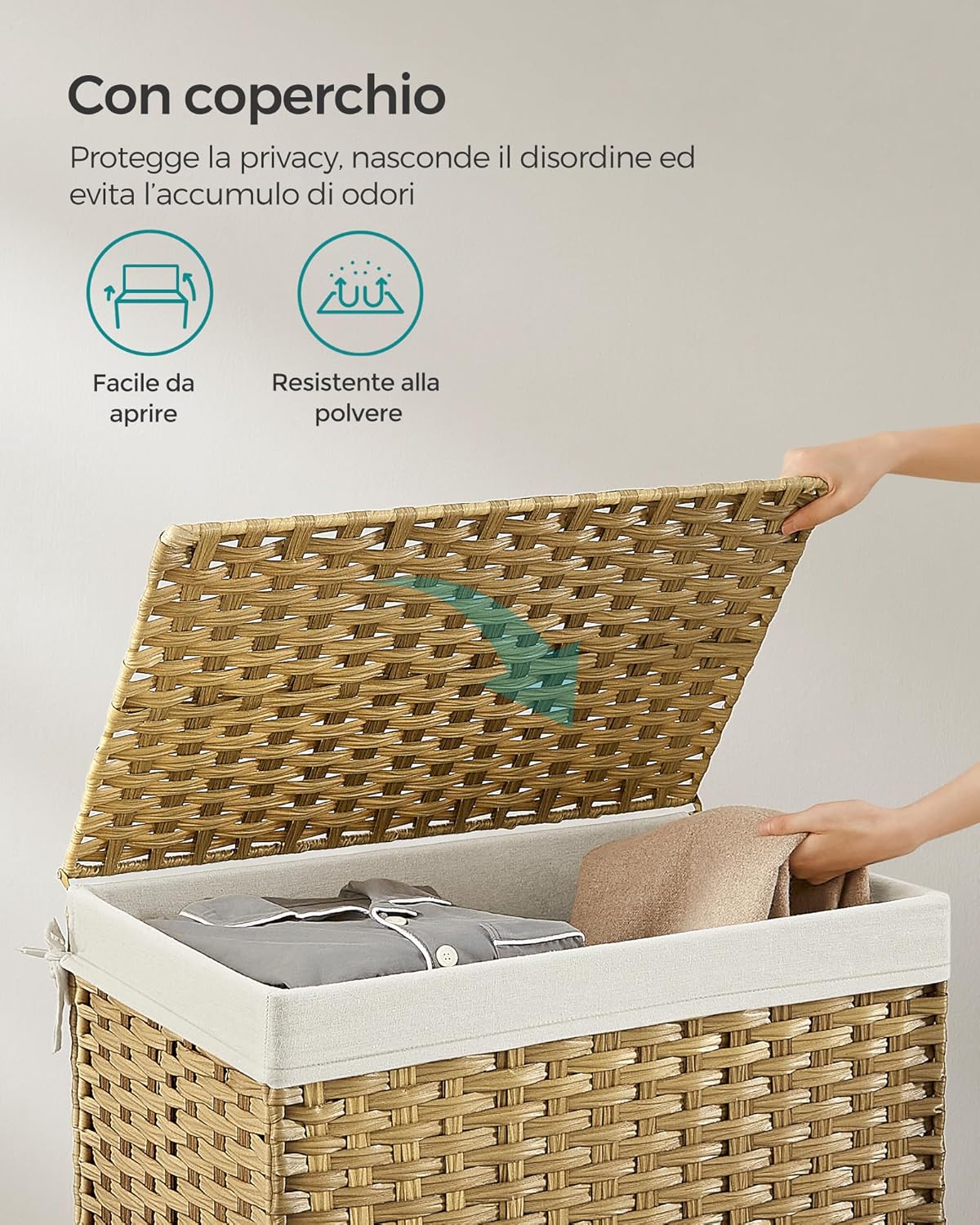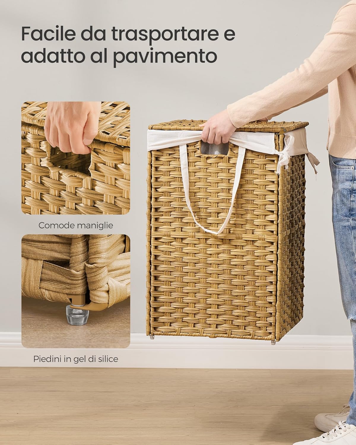 SONGMICS Storage Basket, 90L Laundry Basket with Lid, Foldable, Removable Fabric Bag with Handles, Living Room Bedroom Laundry Room, Natural LCB51NL