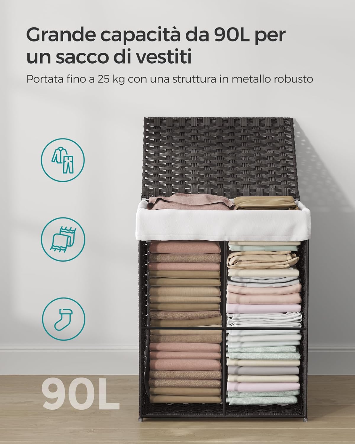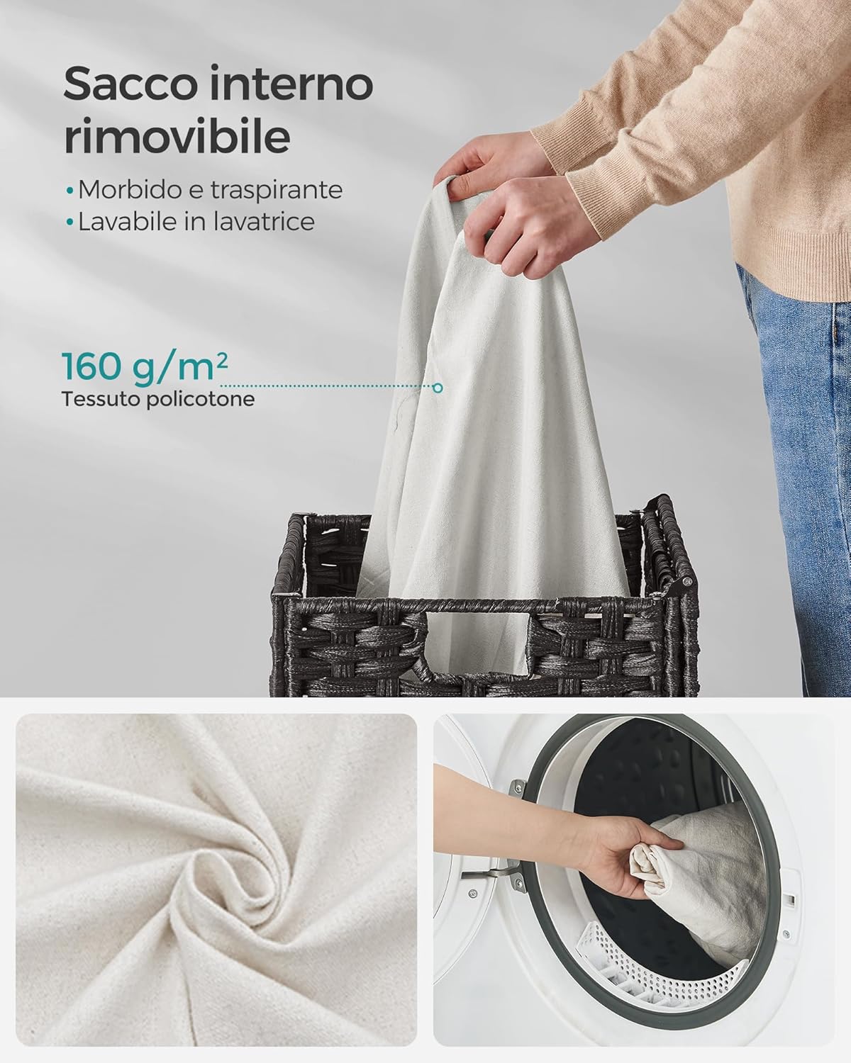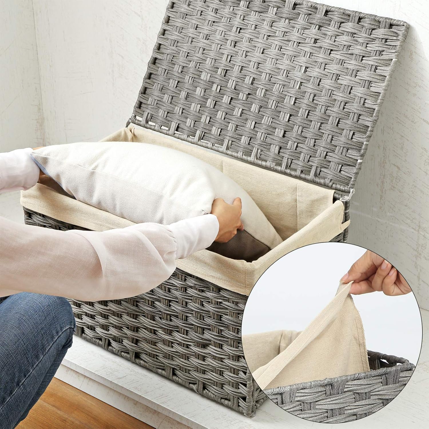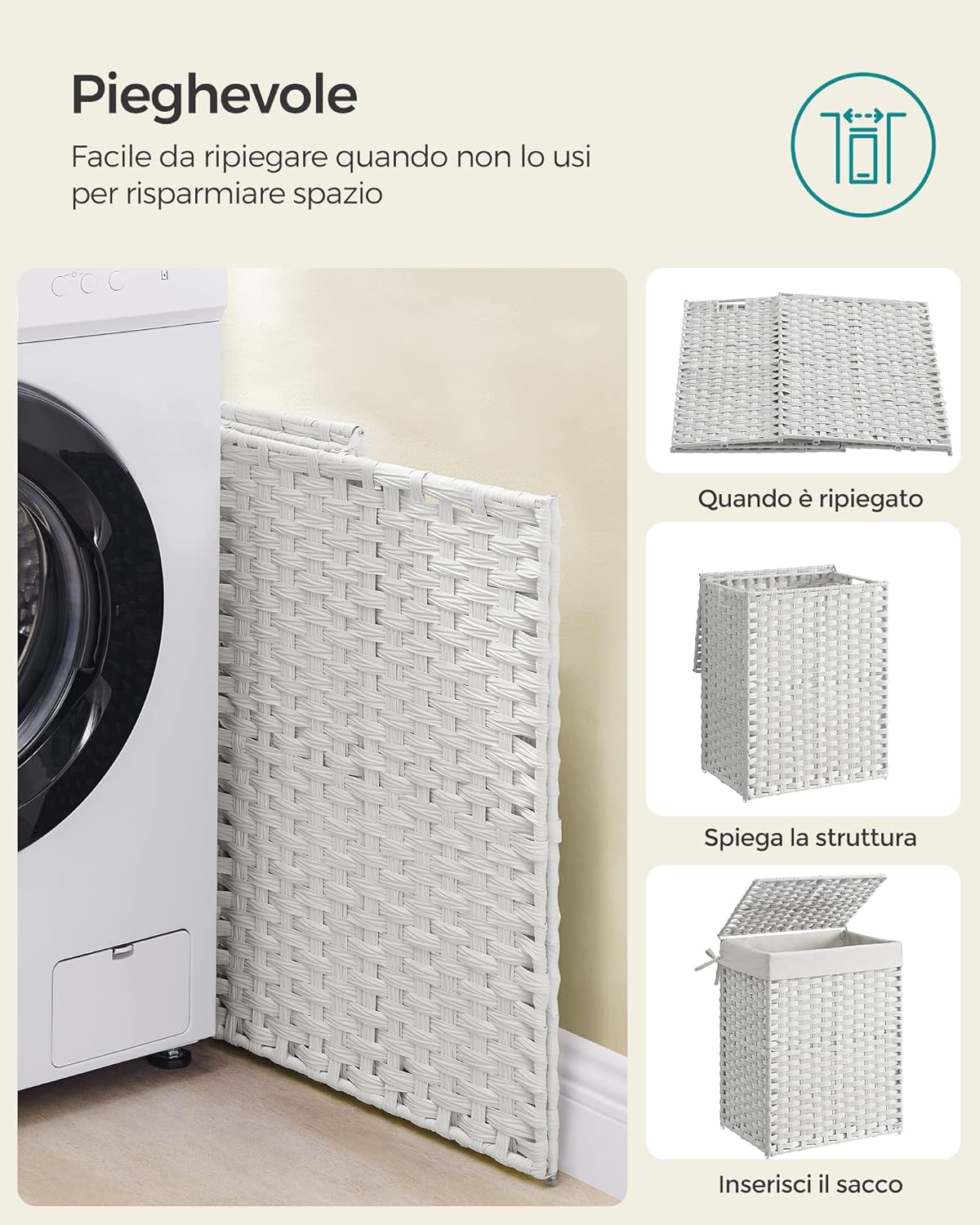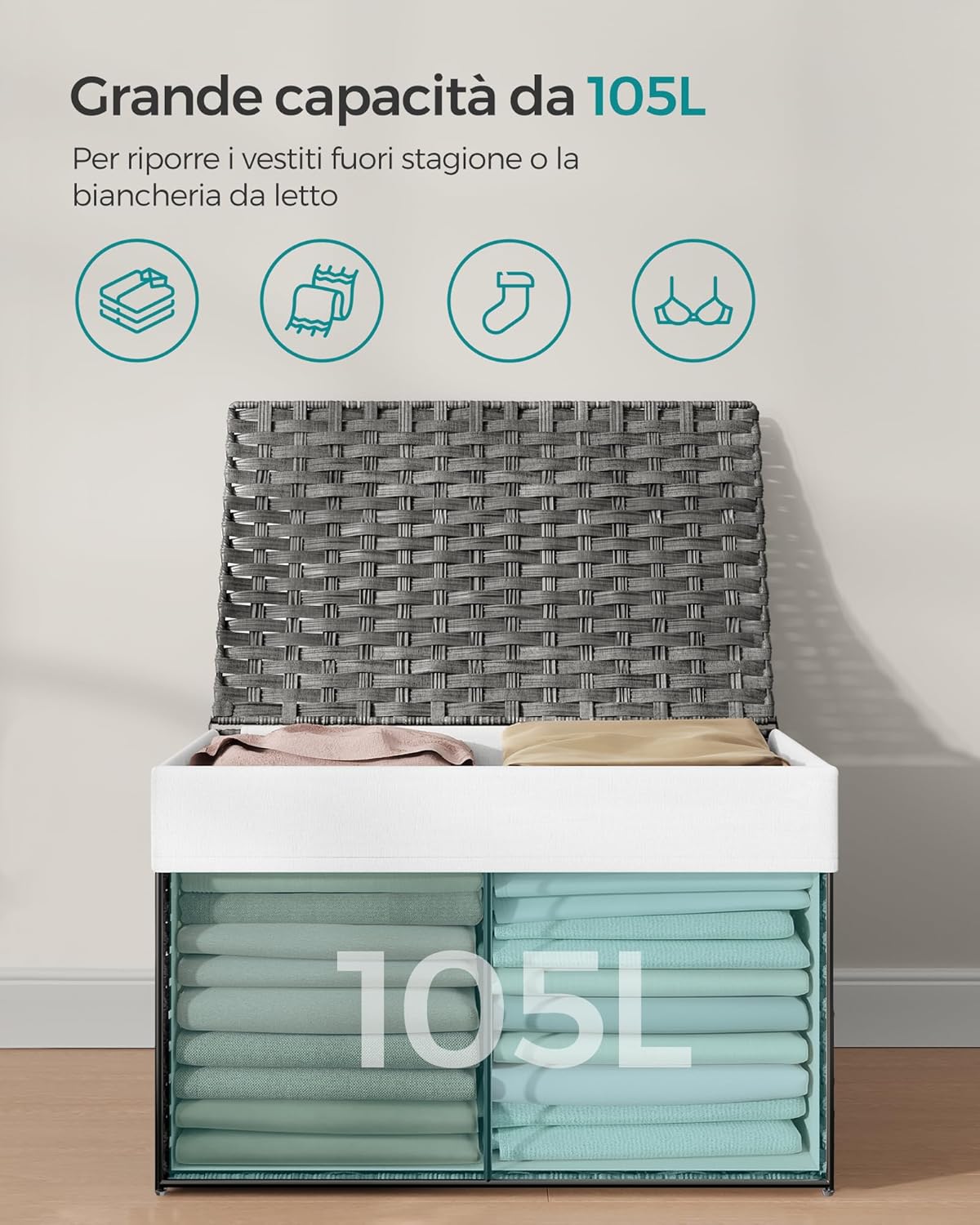 SONGMICS Storage Basket, 90L Laundry Basket with Lid, Foldable, Removable Fabric Bag with Handles, Living Room Bedroom Laundry Room, Natural LCB51NL