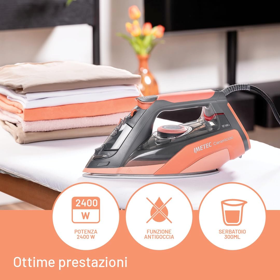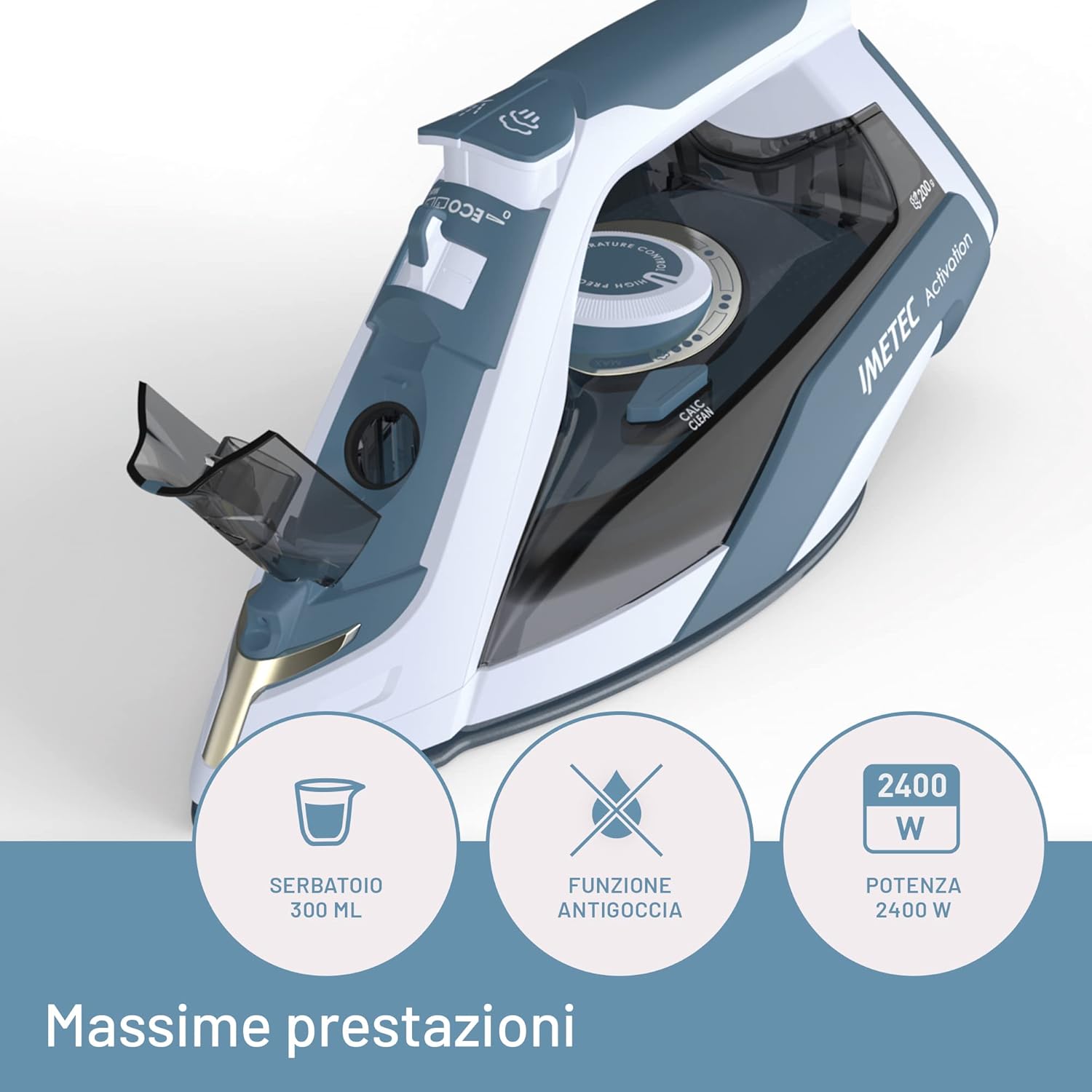 Imetec Ceramicliss - Steam Iron - Quadruple Anti-Limescale Protection - Steam Blow 180 g - Sliding Ceramic Plate - 2400 W - Non-Drip - Ergonomic Handle - Energy Saving