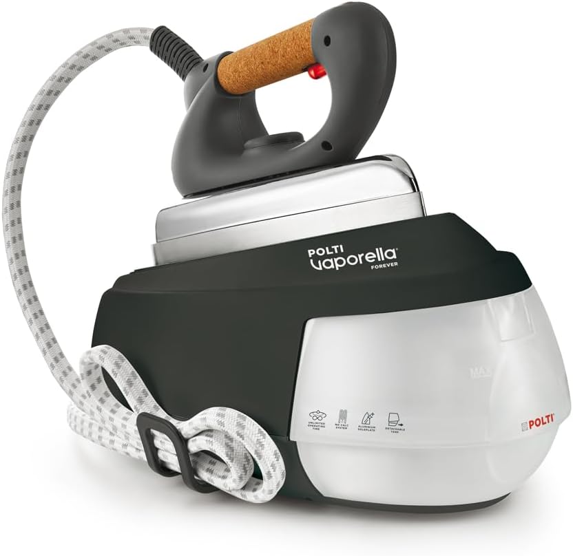Polti Vaporella Forever 615 Pro, Steam Iron with Boiler with Unlimited Autonomy, Pressure 4 Bar, Power 2150 W, 0.7 L Removable Tank, Heating in 3 Minutes, Black and Steel