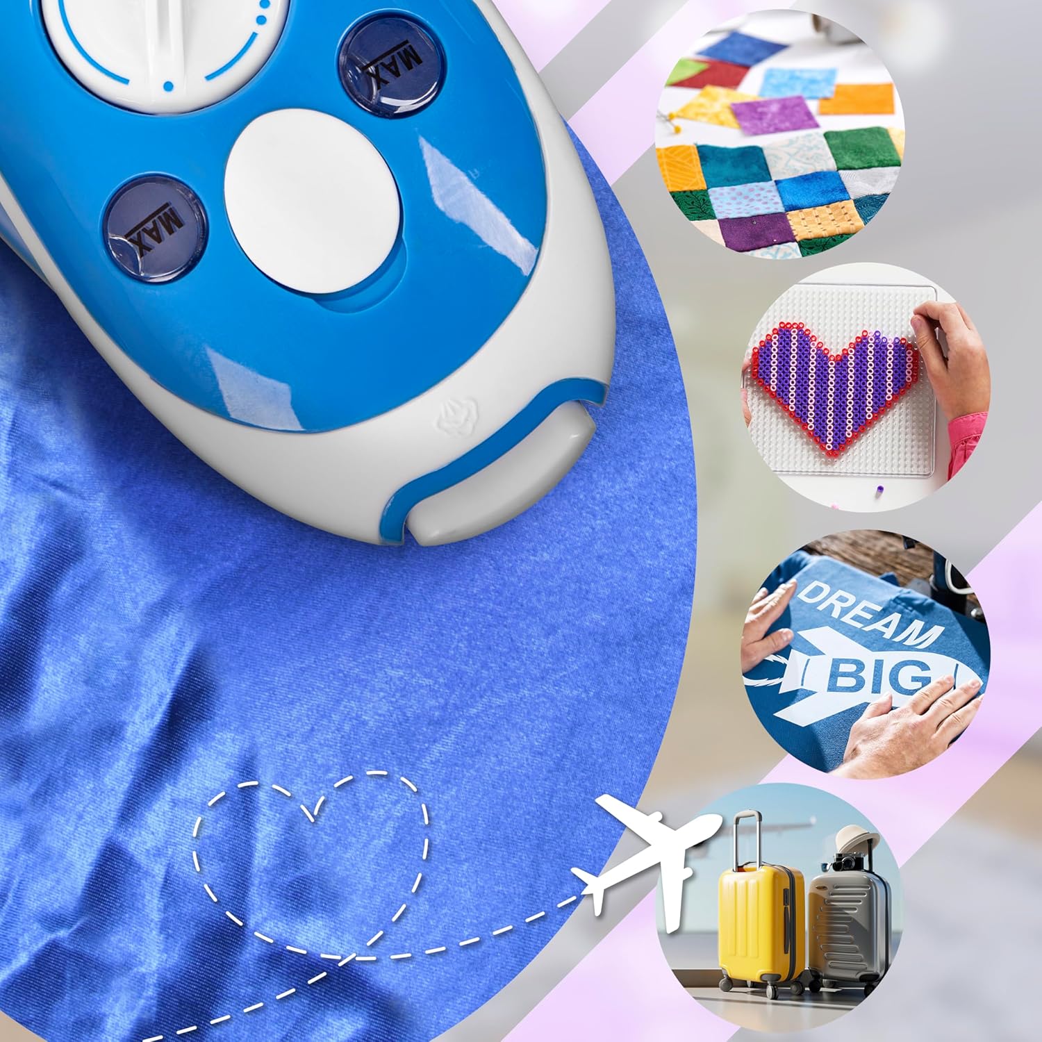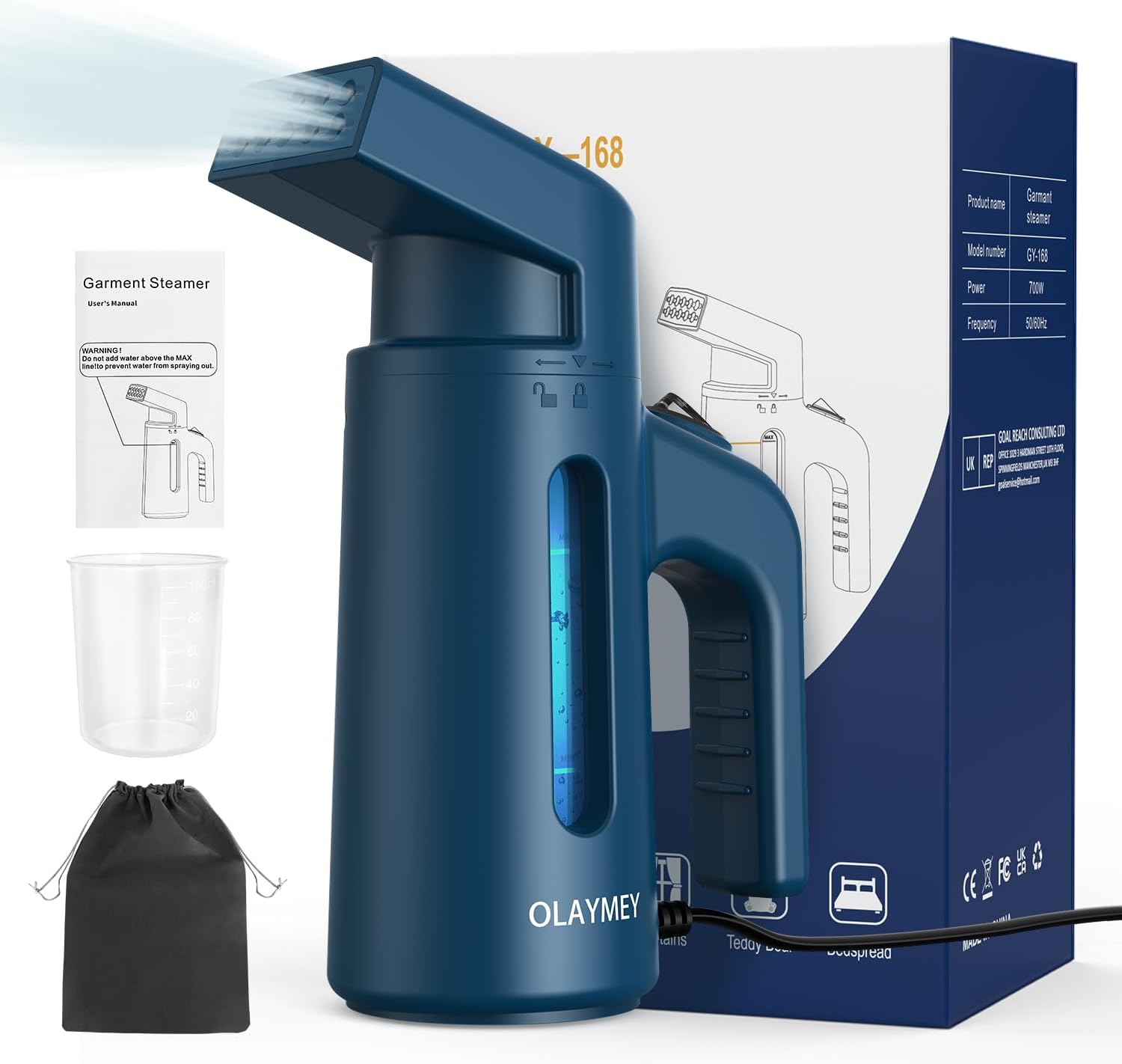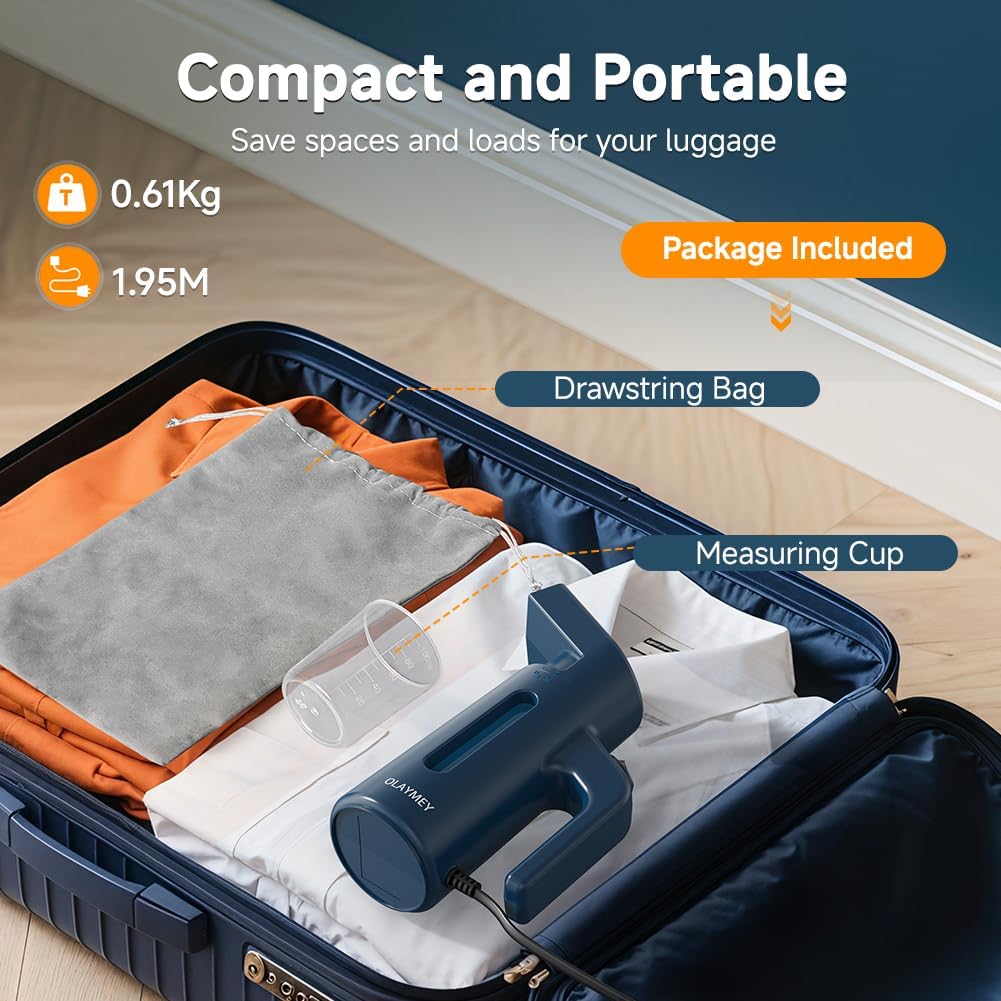 OLAYMEY Travel Vertical Ironing Iron, Steam Iron with Boiler, with Drawstring Bag, 700W Portable Vertical Ironer 180ML Blue Vertical Ironing for Home, Business