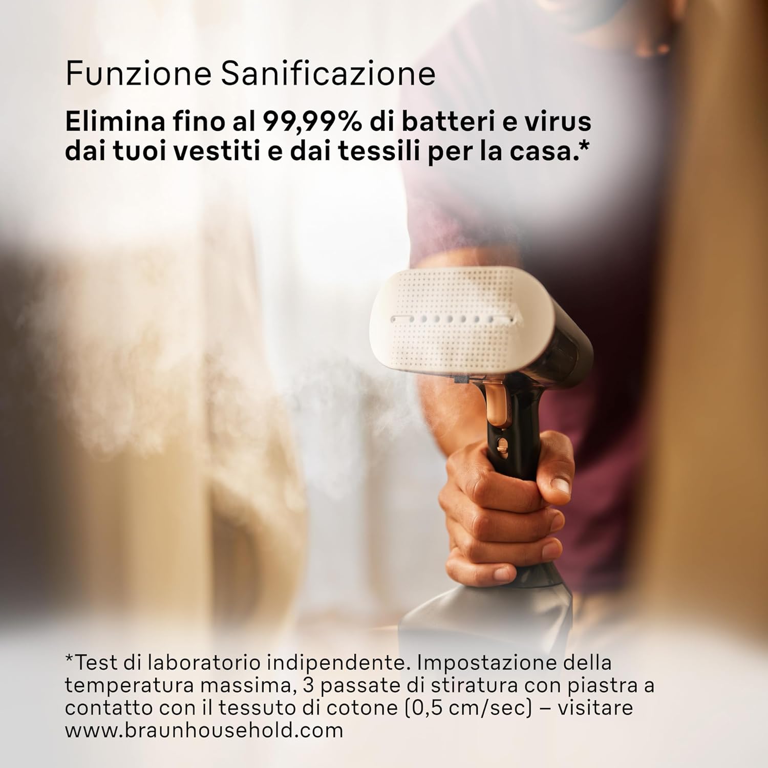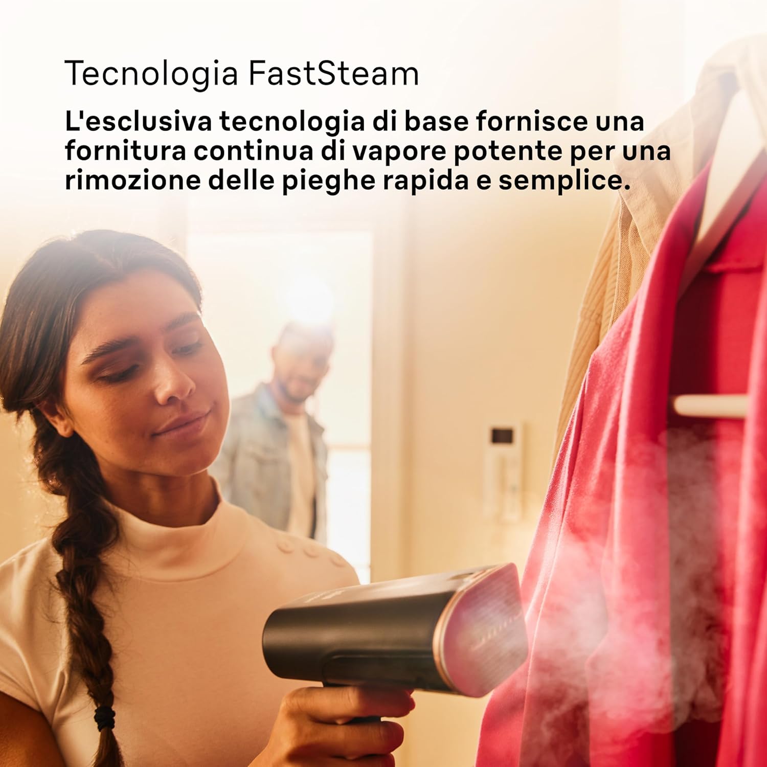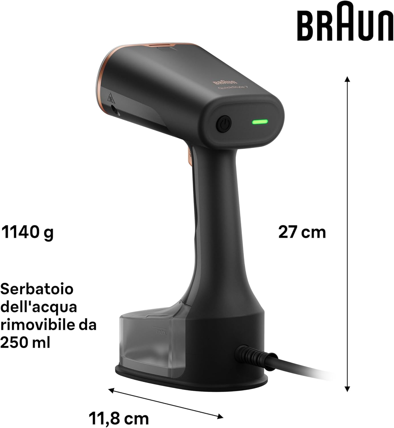 Braun QuickStyle 7 GS7077BK, Stiratore Verticale con Tecnologia Dual FreeGlide 3D e Piastra Riscaldata, con Riscaldamento Rapido, Vapore 35 g/min, Capacità 250 ml, Cavo 3 m, 1600W, Nero