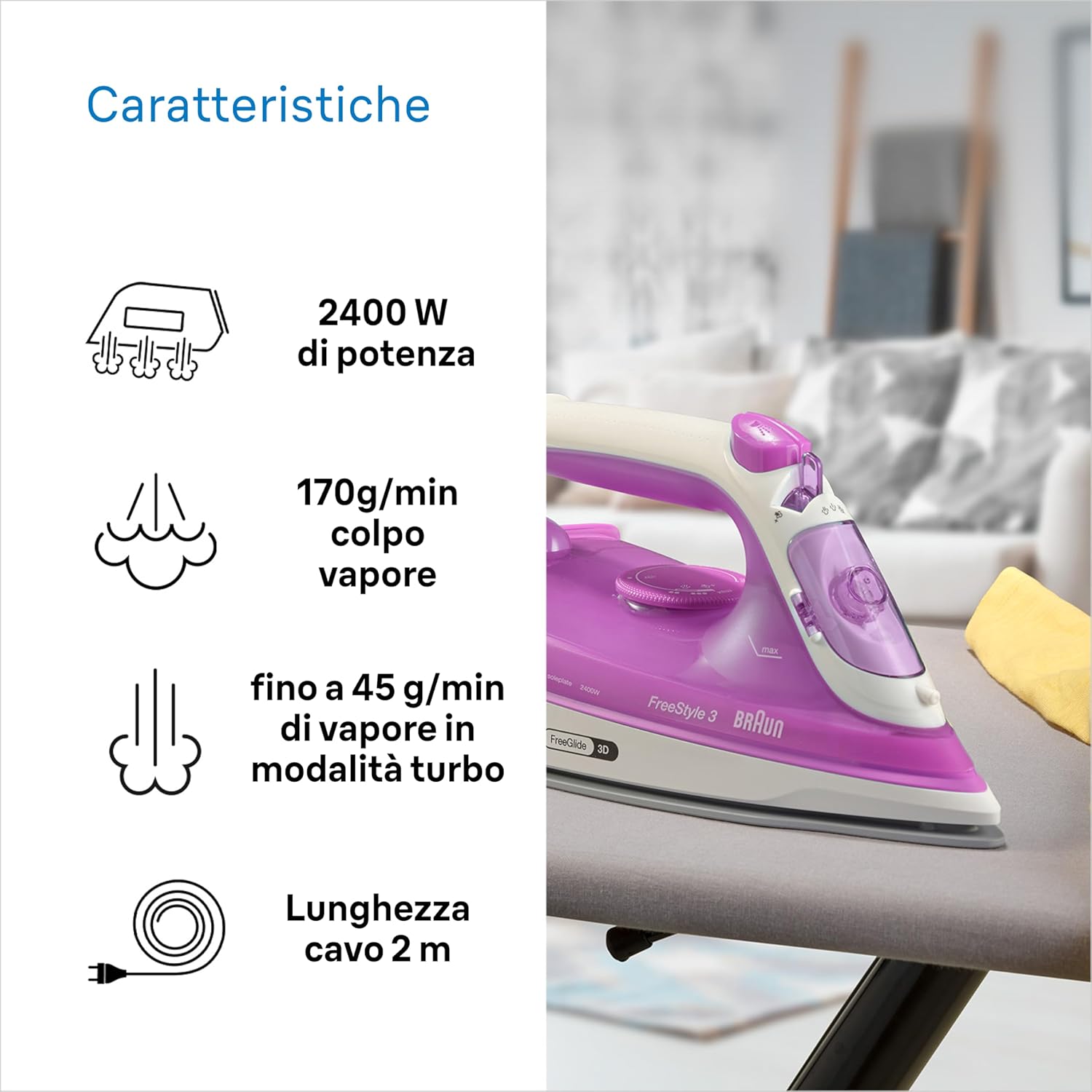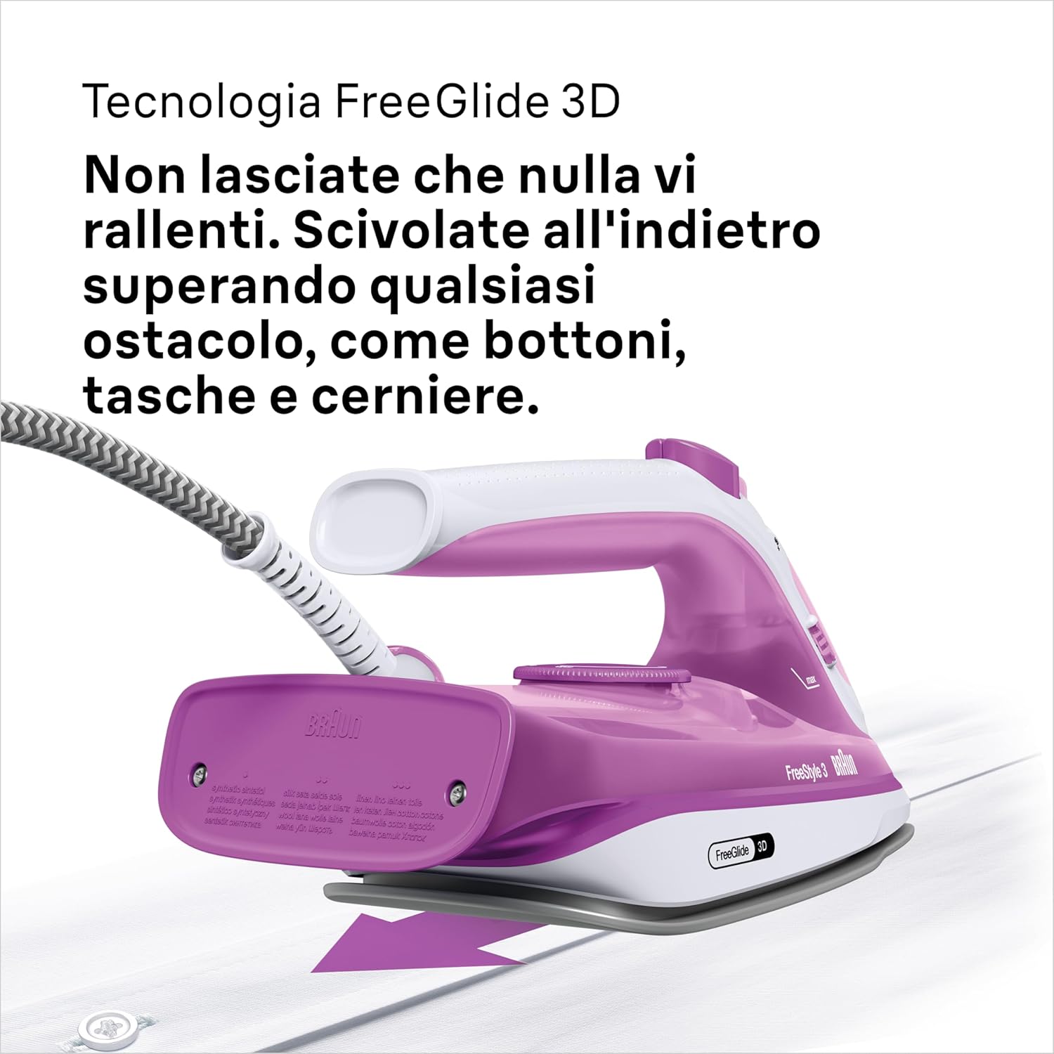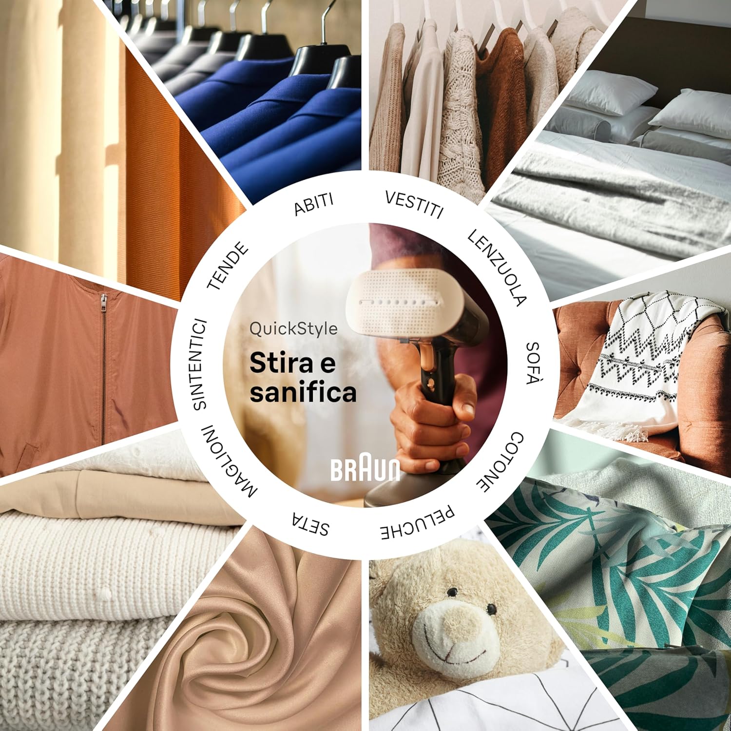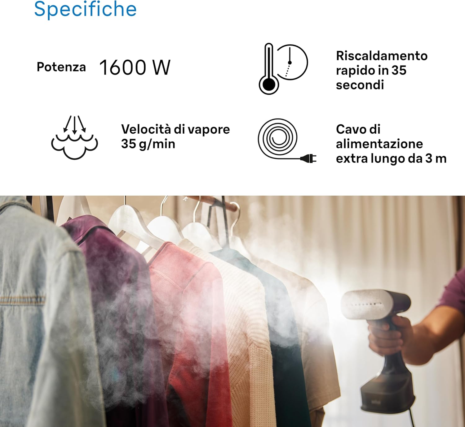 Braun QuickStyle 7 GS7077BK, Stiratore Verticale con Tecnologia Dual FreeGlide 3D e Piastra Riscaldata, con Riscaldamento Rapido, Vapore 35 g/min, Capacità 250 ml, Cavo 3 m, 1600W, Nero
