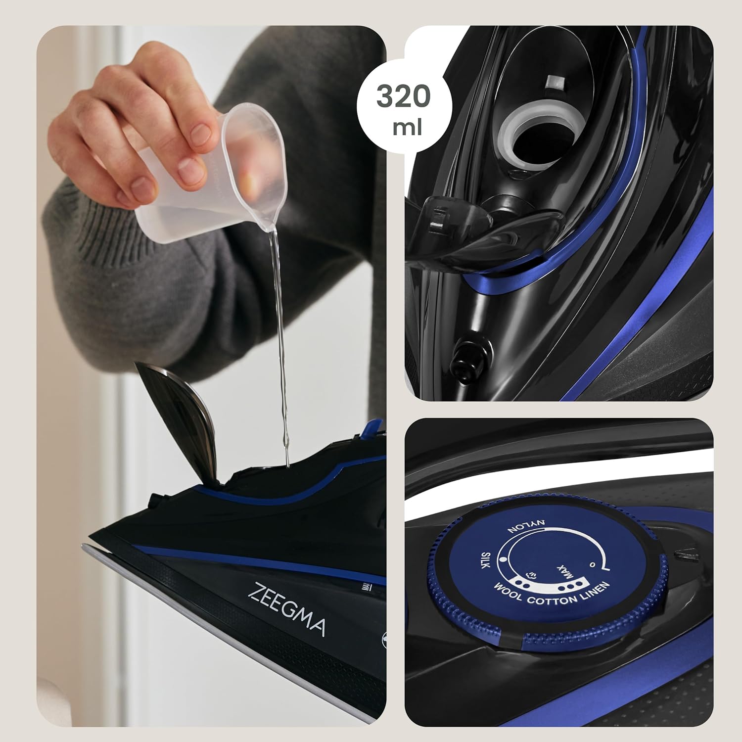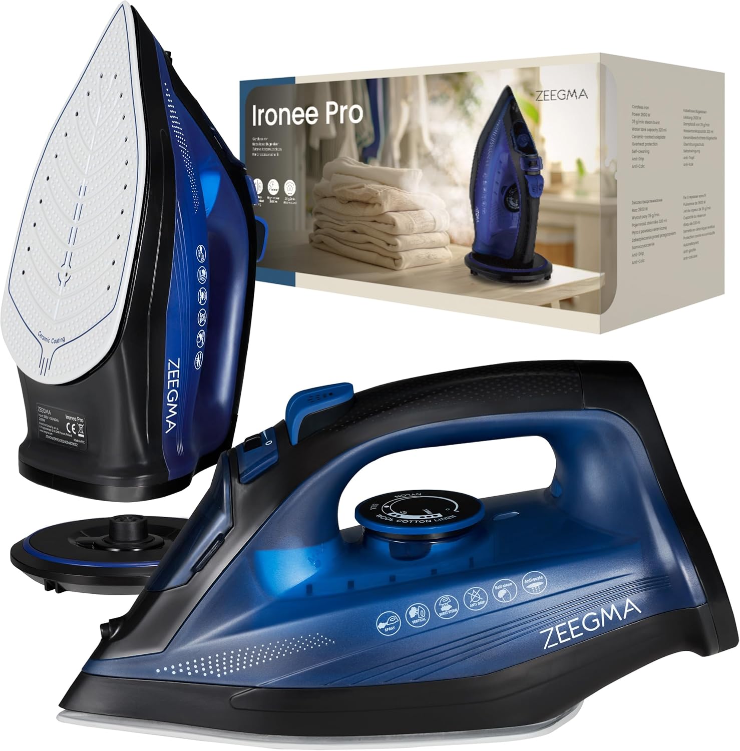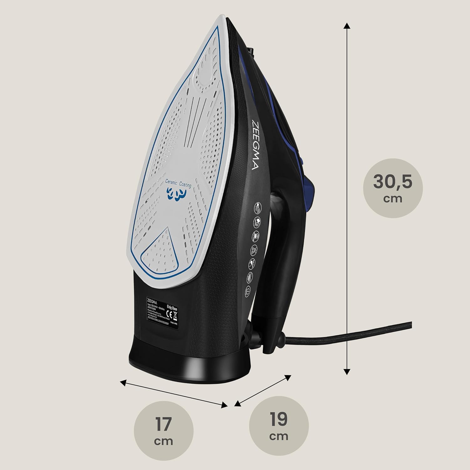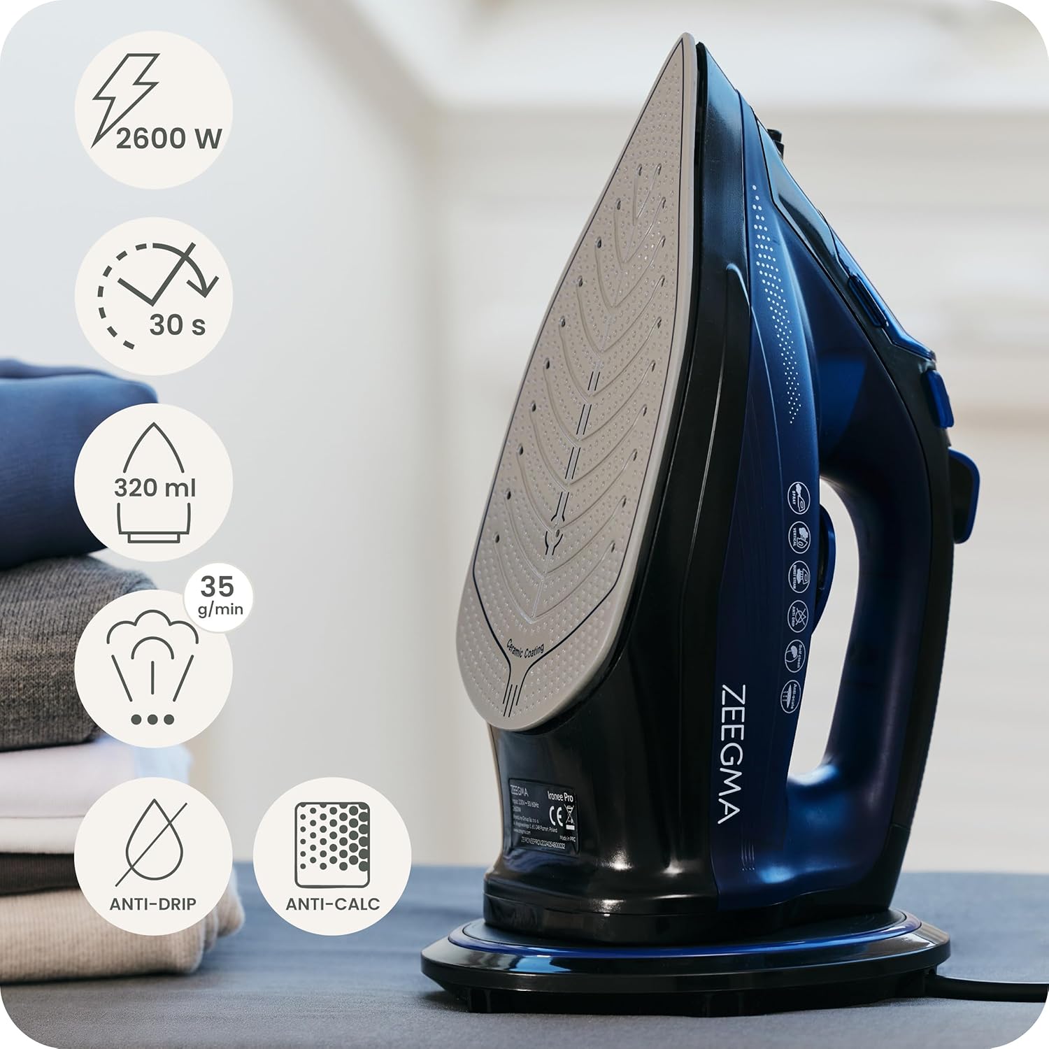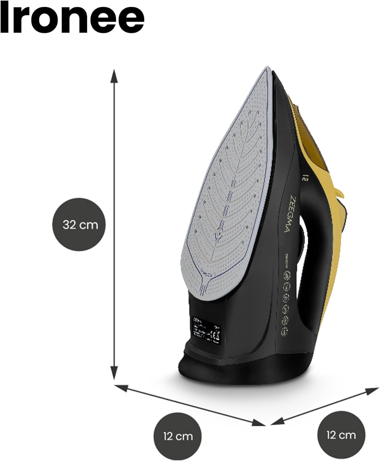 ZEEGMA IRONEE Cordless and Wired Iron with Ceramic Coating 2600 W, Horizontal and Vertical Ironing Tank 320 ml Self-Cleaning Anti-Drip and Anti-Limescale Ironing