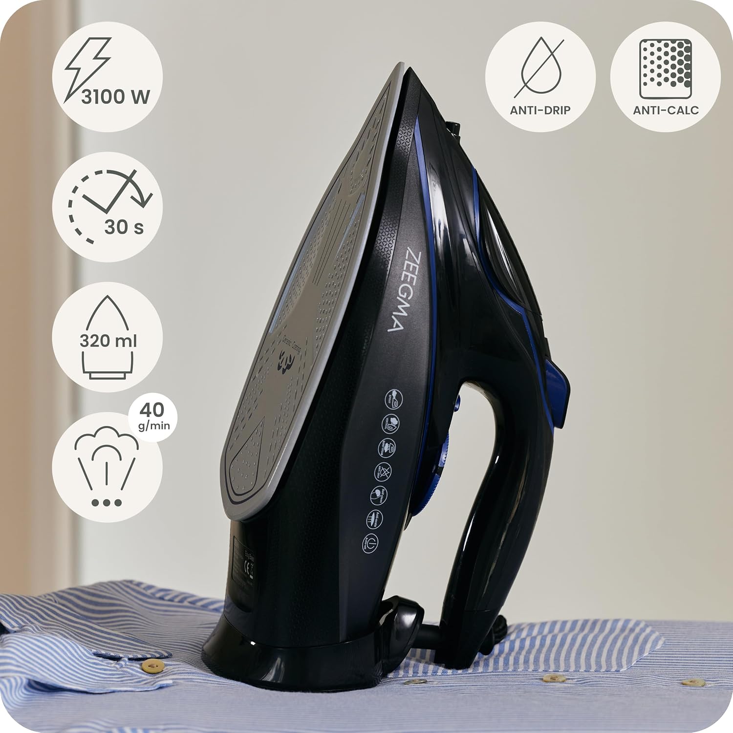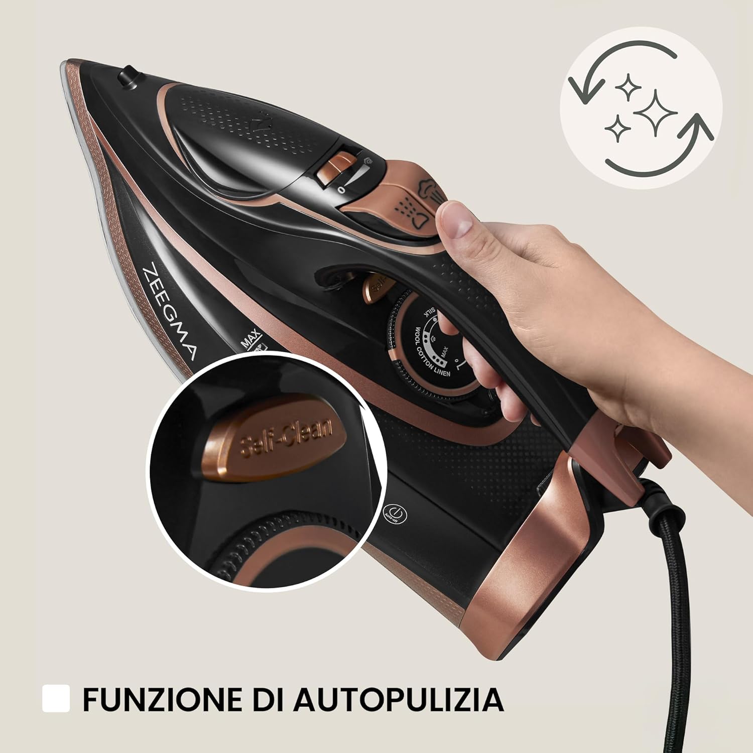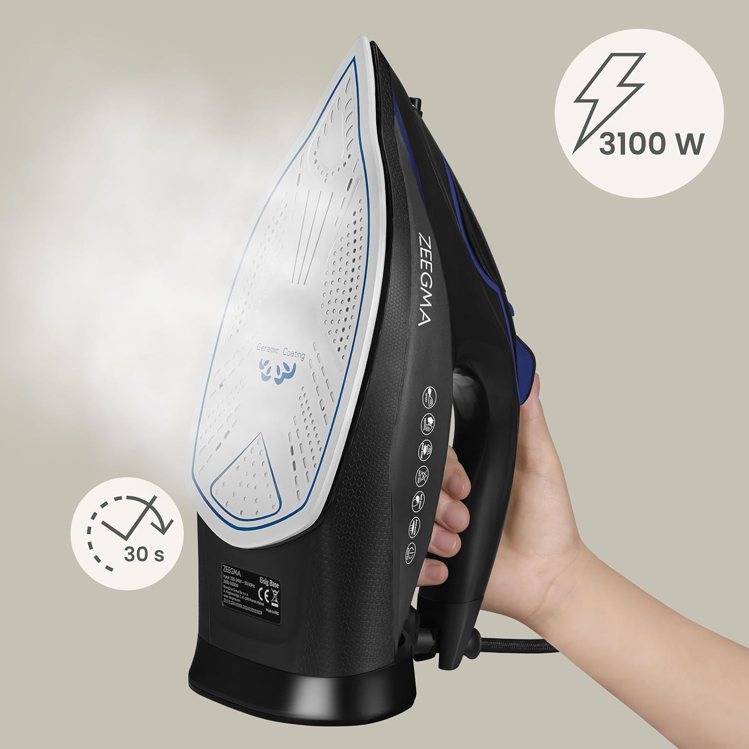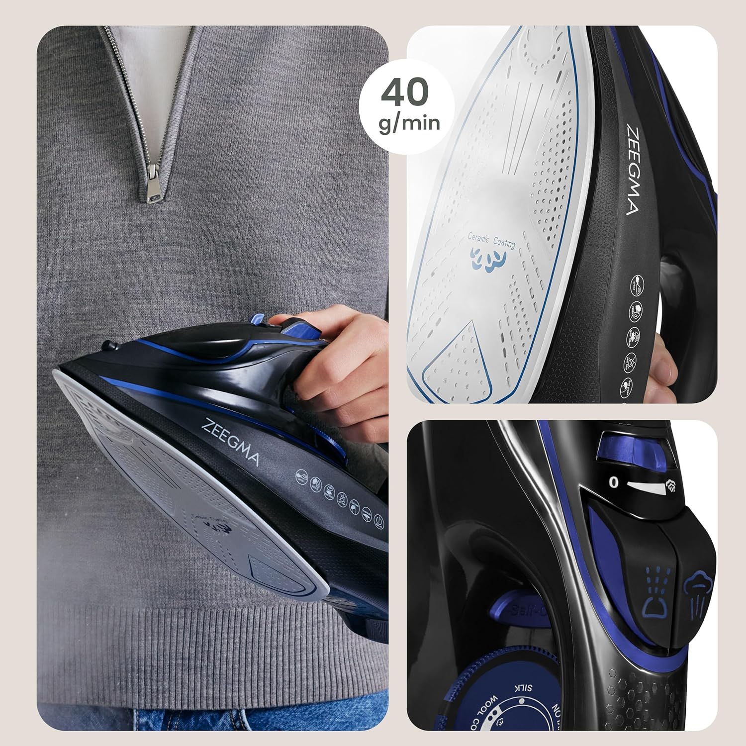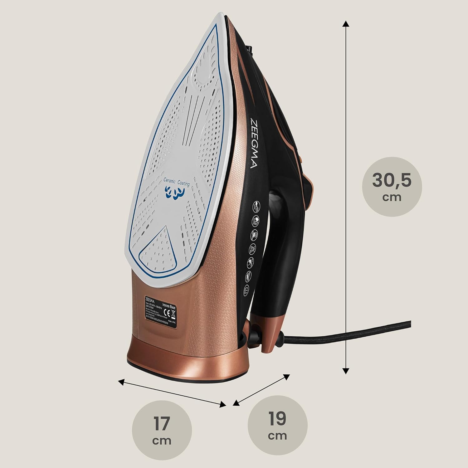 ZEEGMA IRONEE Cordless and Wired Iron with Ceramic Coating 2600 W, Horizontal and Vertical Ironing Tank 320 ml Self-Cleaning Anti-Drip and Anti-Limescale Ironing