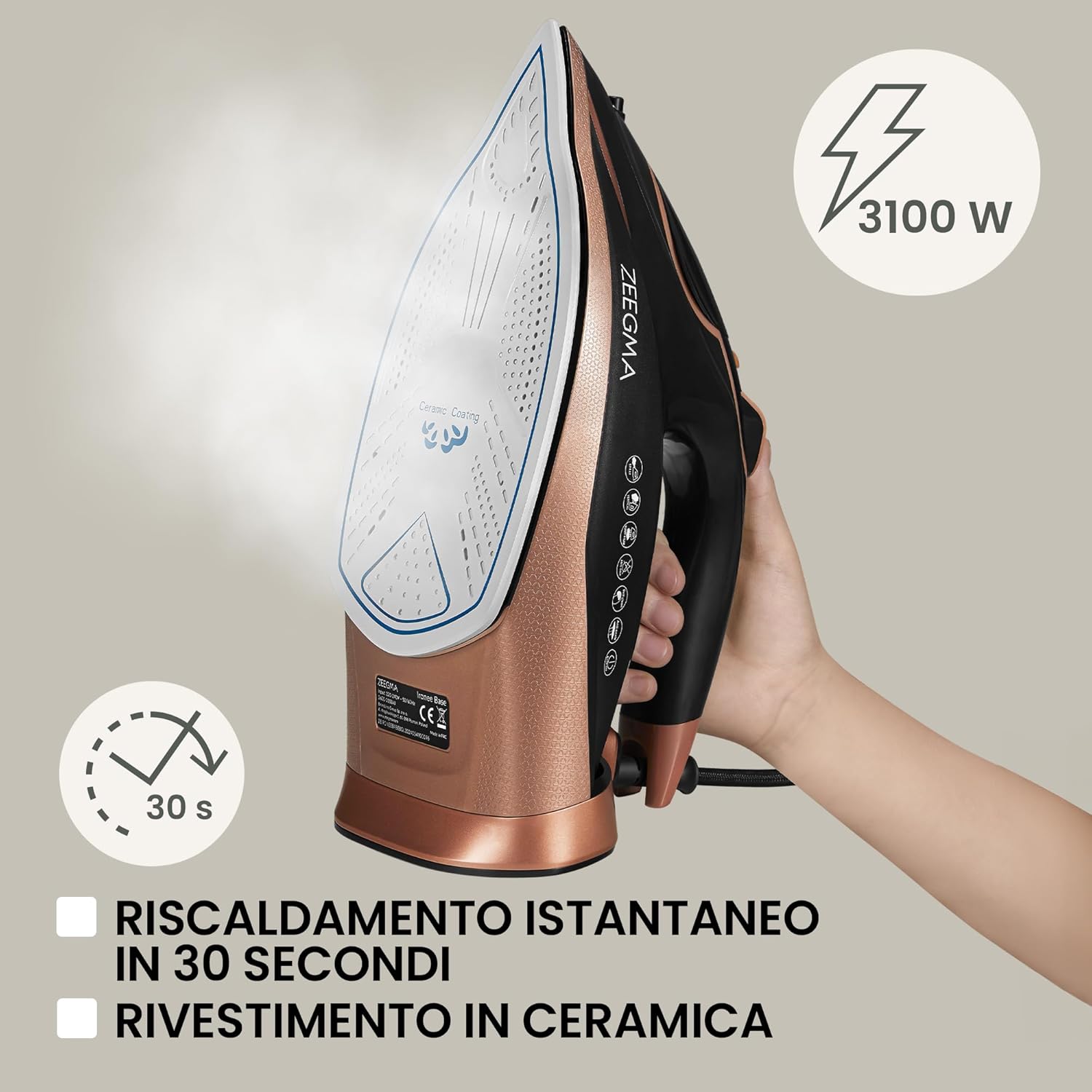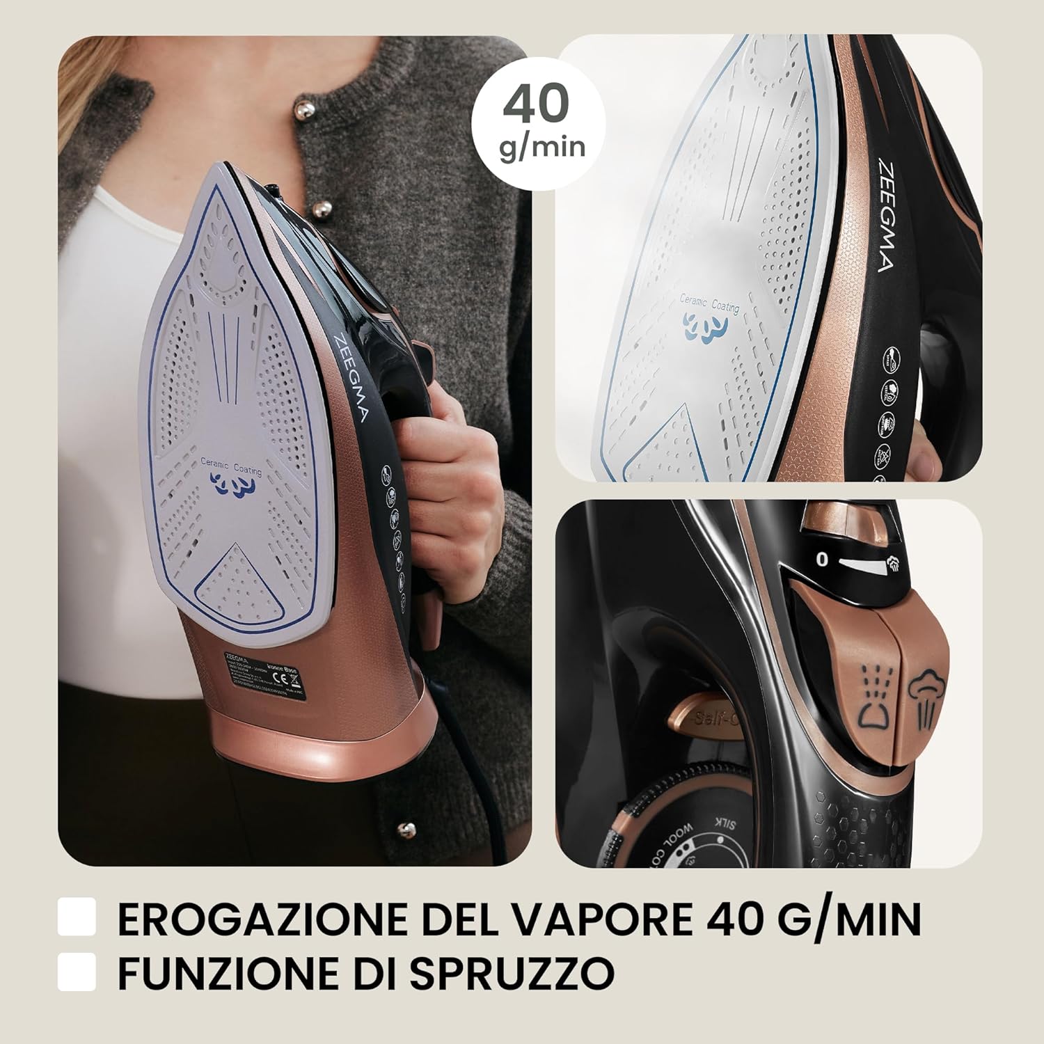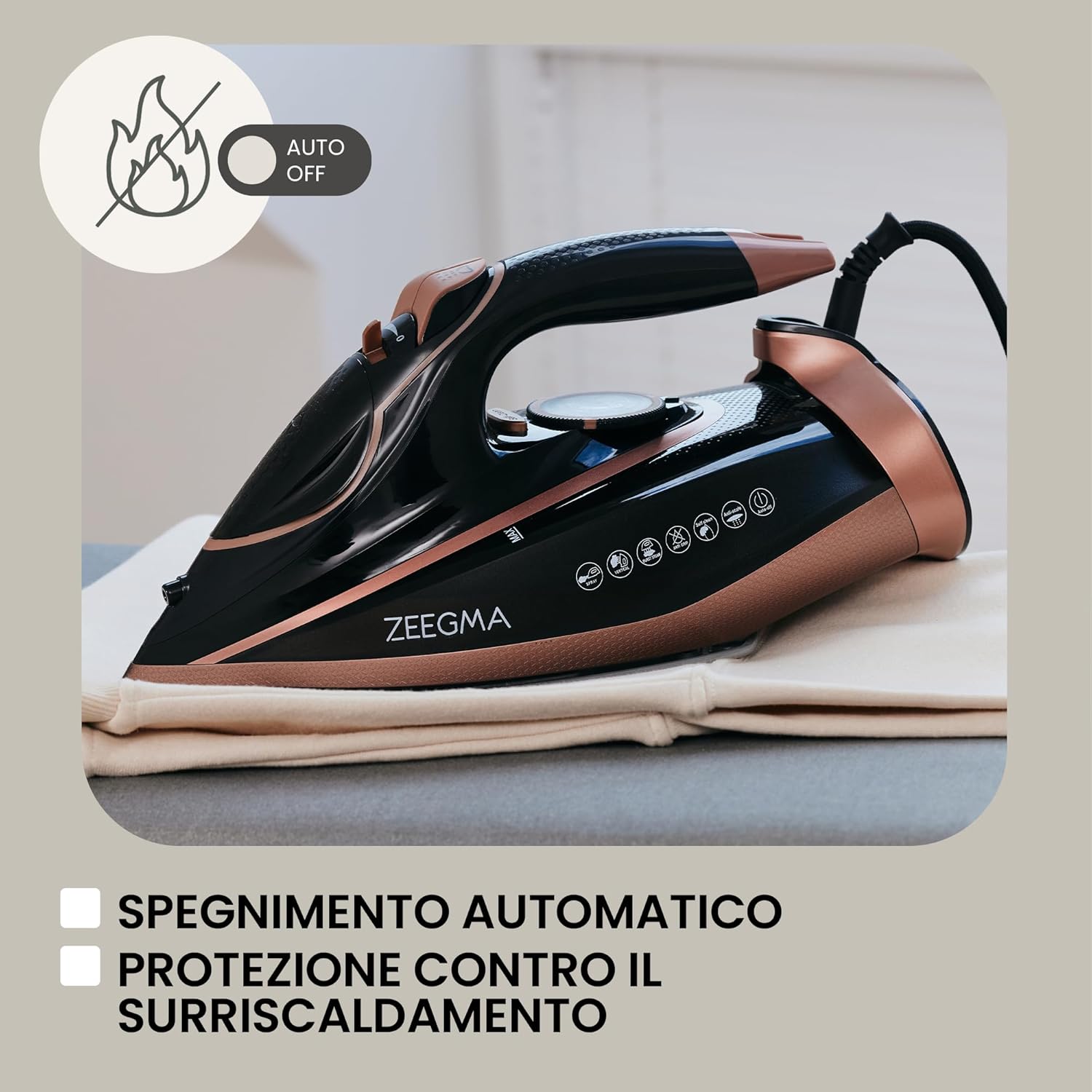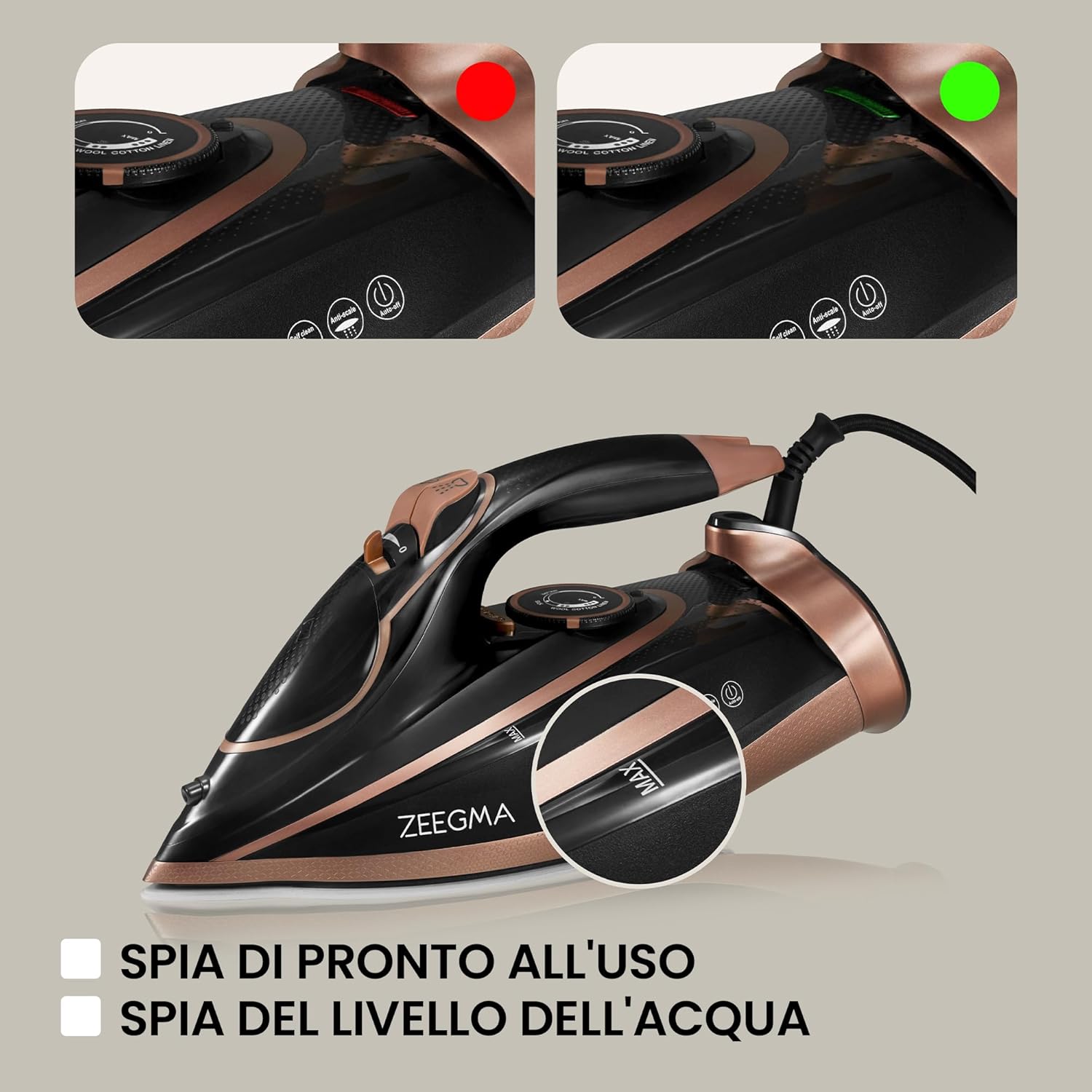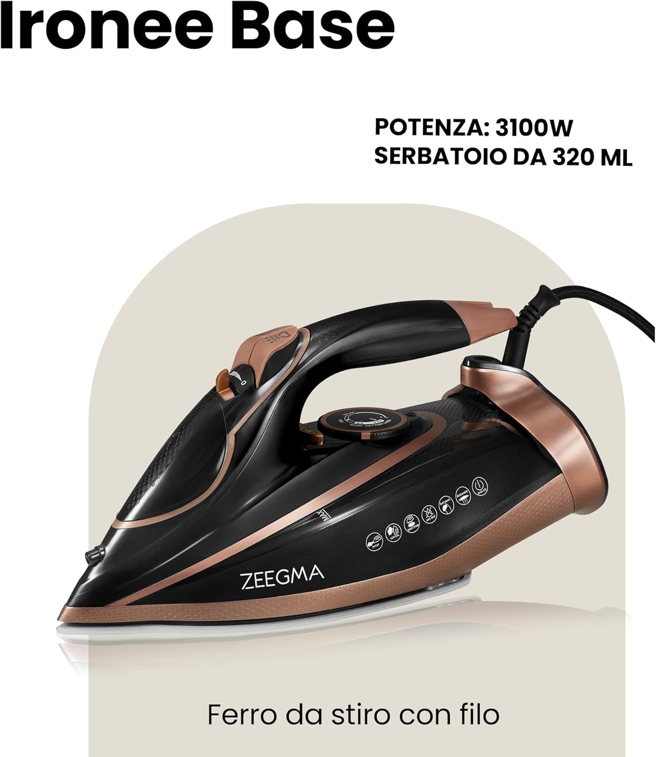 ZEEGMA IRONEE Cordless and Wired Iron with Ceramic Coating 2600 W, Horizontal and Vertical Ironing Tank 320 ml Self-Cleaning Anti-Drip and Anti-Limescale Ironing