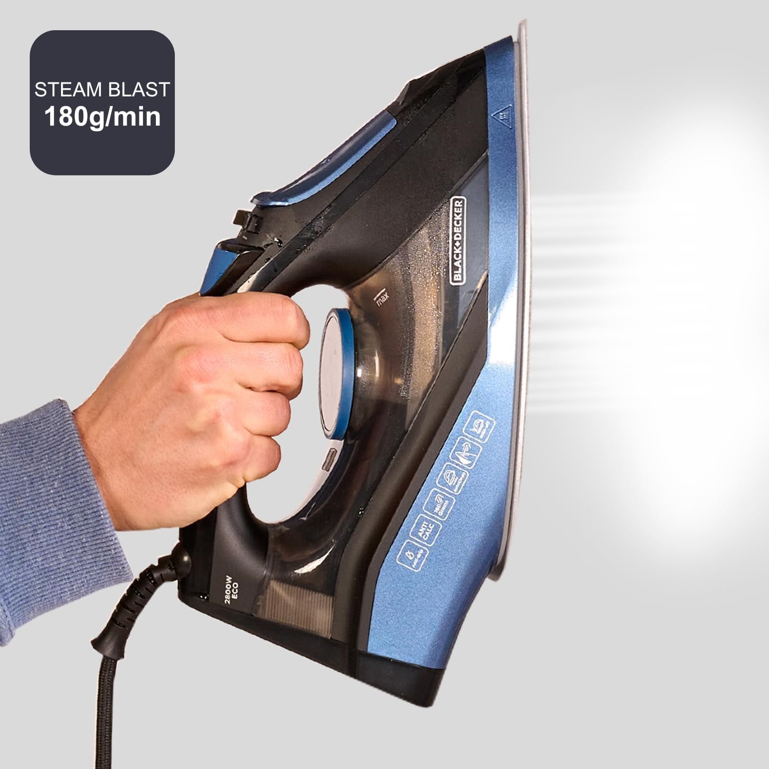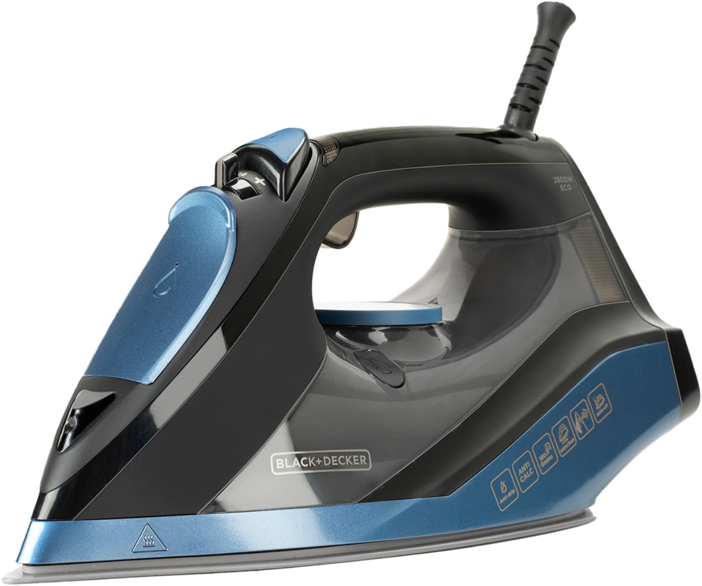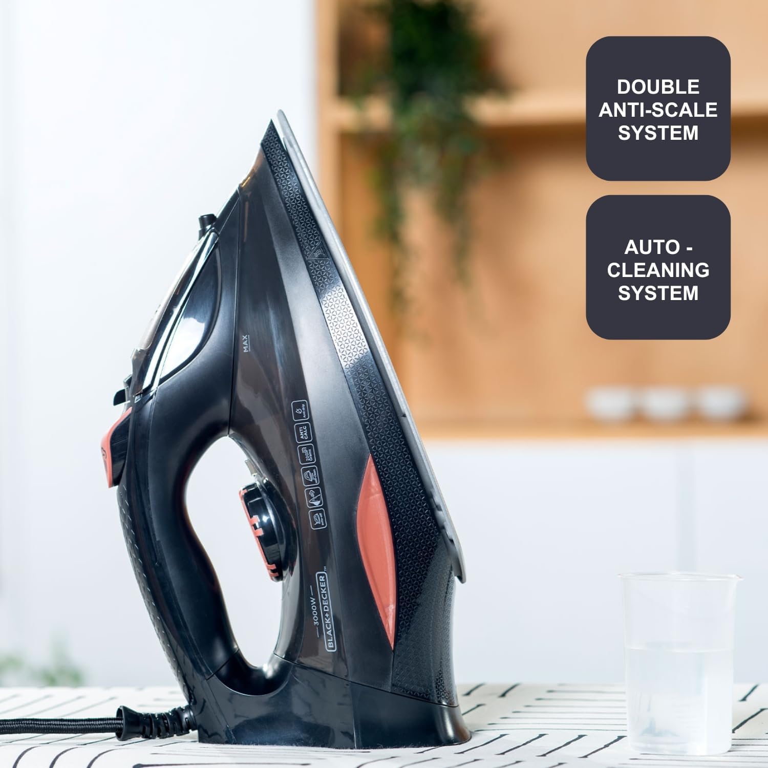 BLACK+DECKER BXIR3000E - Iron, 3000W. Ceramic soleplate, steam boost, 200 g/min. Continuous steam 45 g/min. Double anti-limescale system. Disinfectant steam. Non-drip. Black