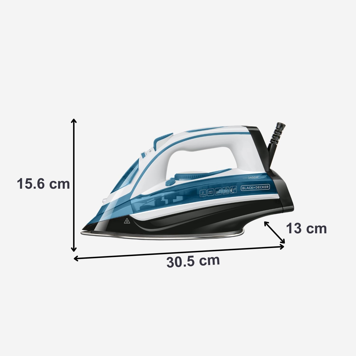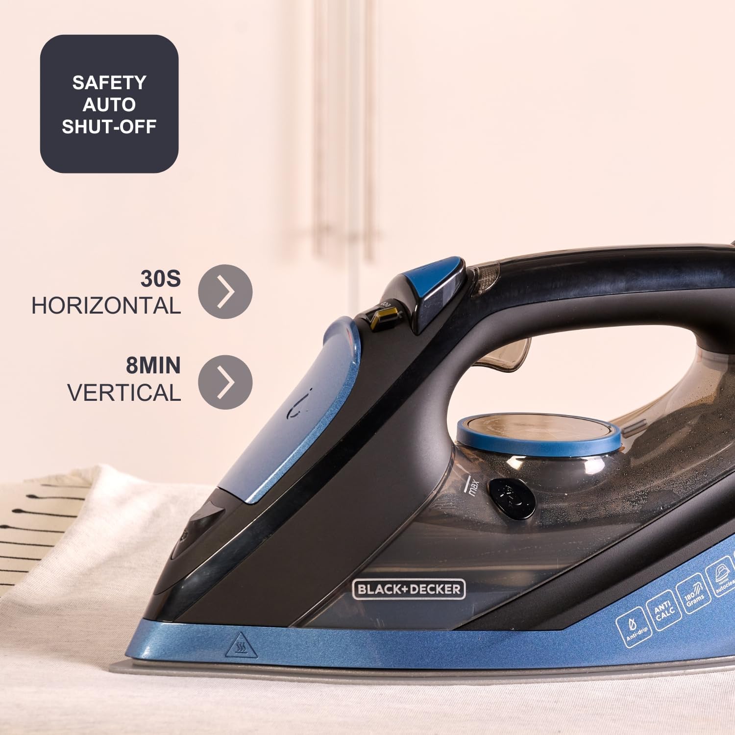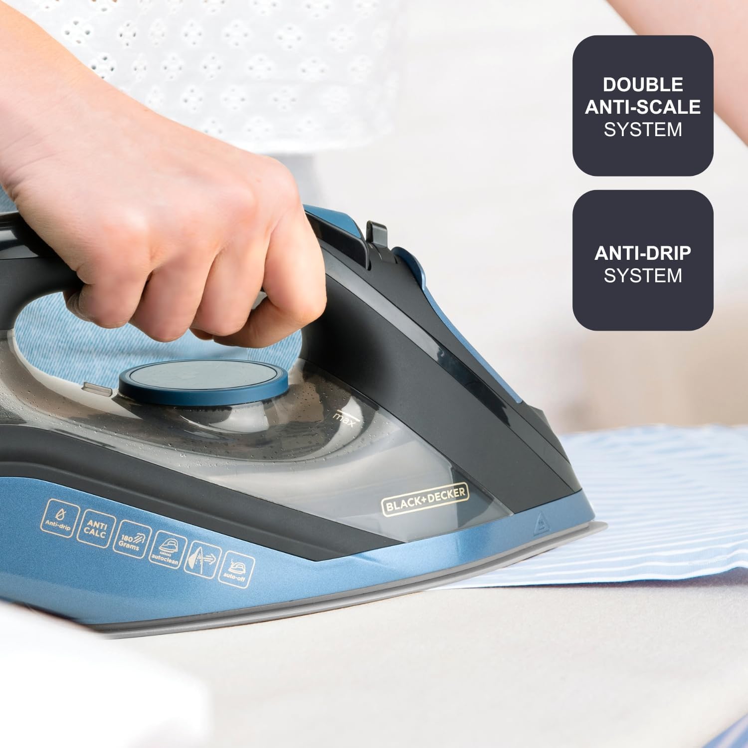 BLACK+DECKER BXIR3000E - Iron, 3000W. Ceramic soleplate, steam boost, 200 g/min. Continuous steam 45 g/min. Double anti-limescale system. Disinfectant steam. Non-drip. Black