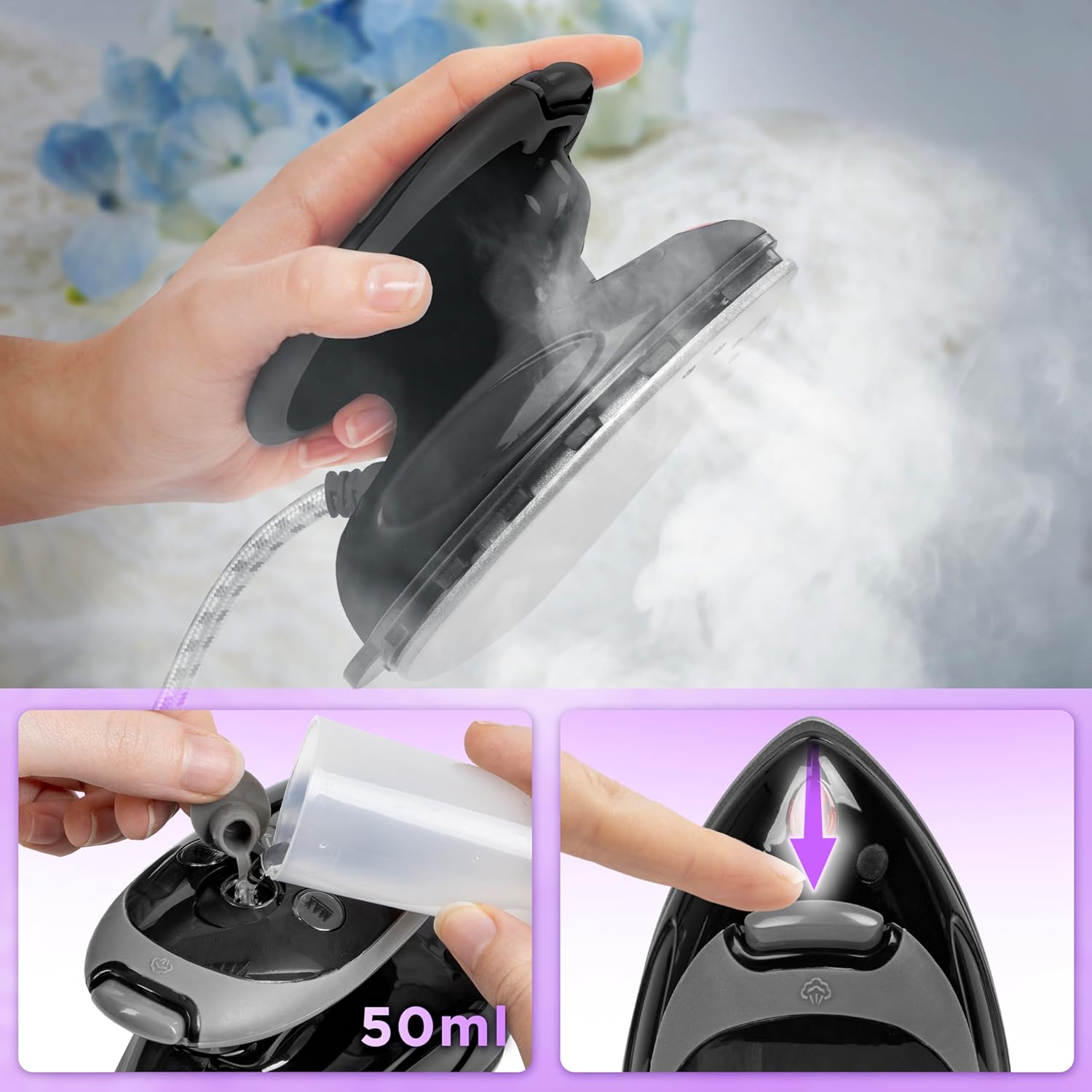 Blesgam 1600W Vertical Ironing Iron 25g/min Portable Steam 3 in 1 Vertical/Horizontal/Dry Ironing Machine with 150ml Removable Boiler, 30s Fast Heating for Travel, Home and Office