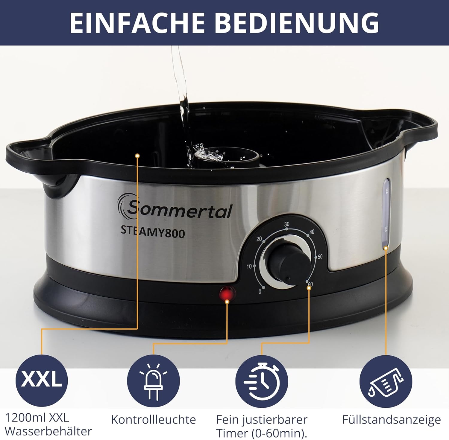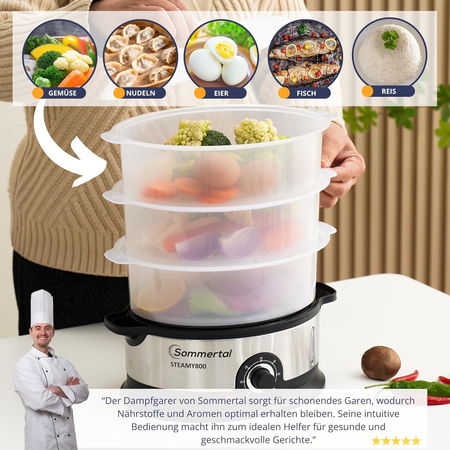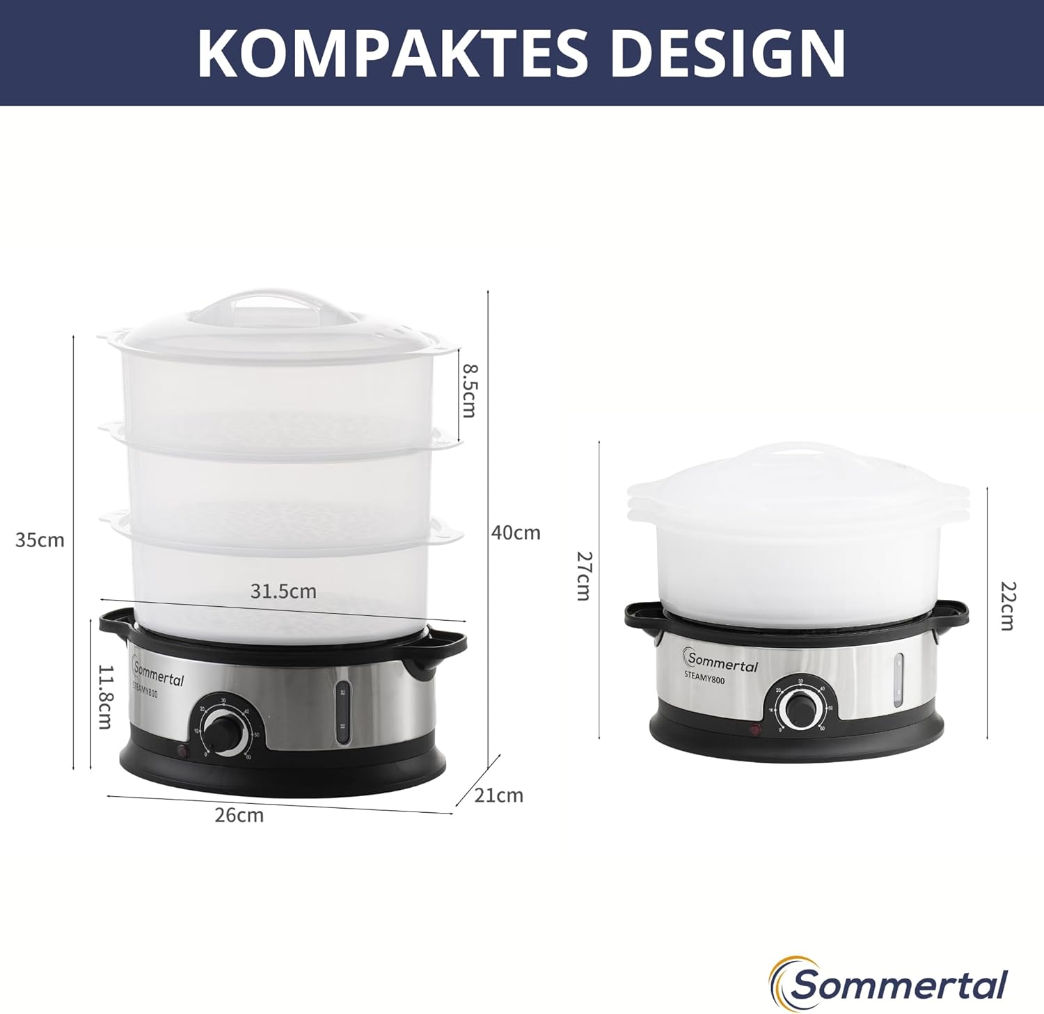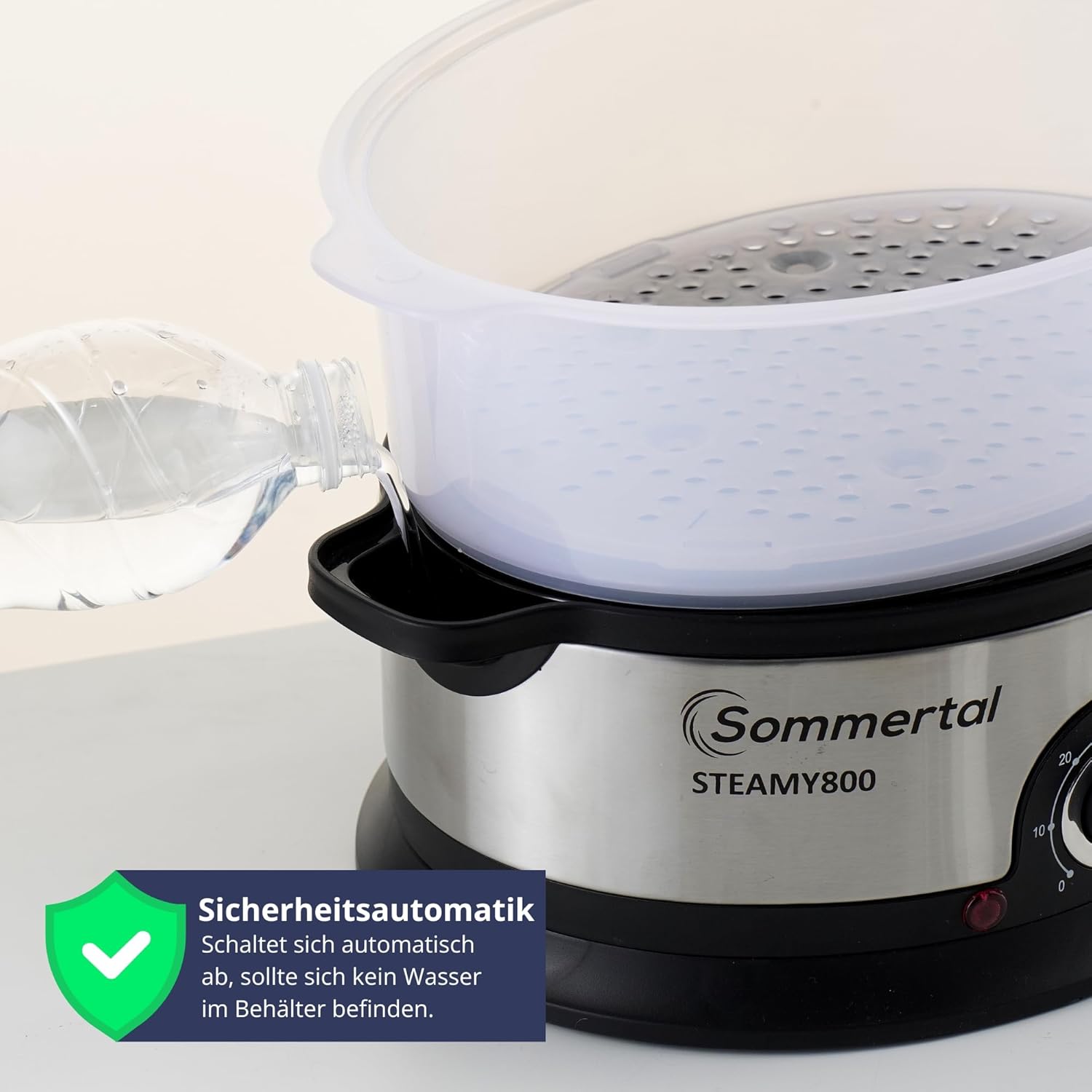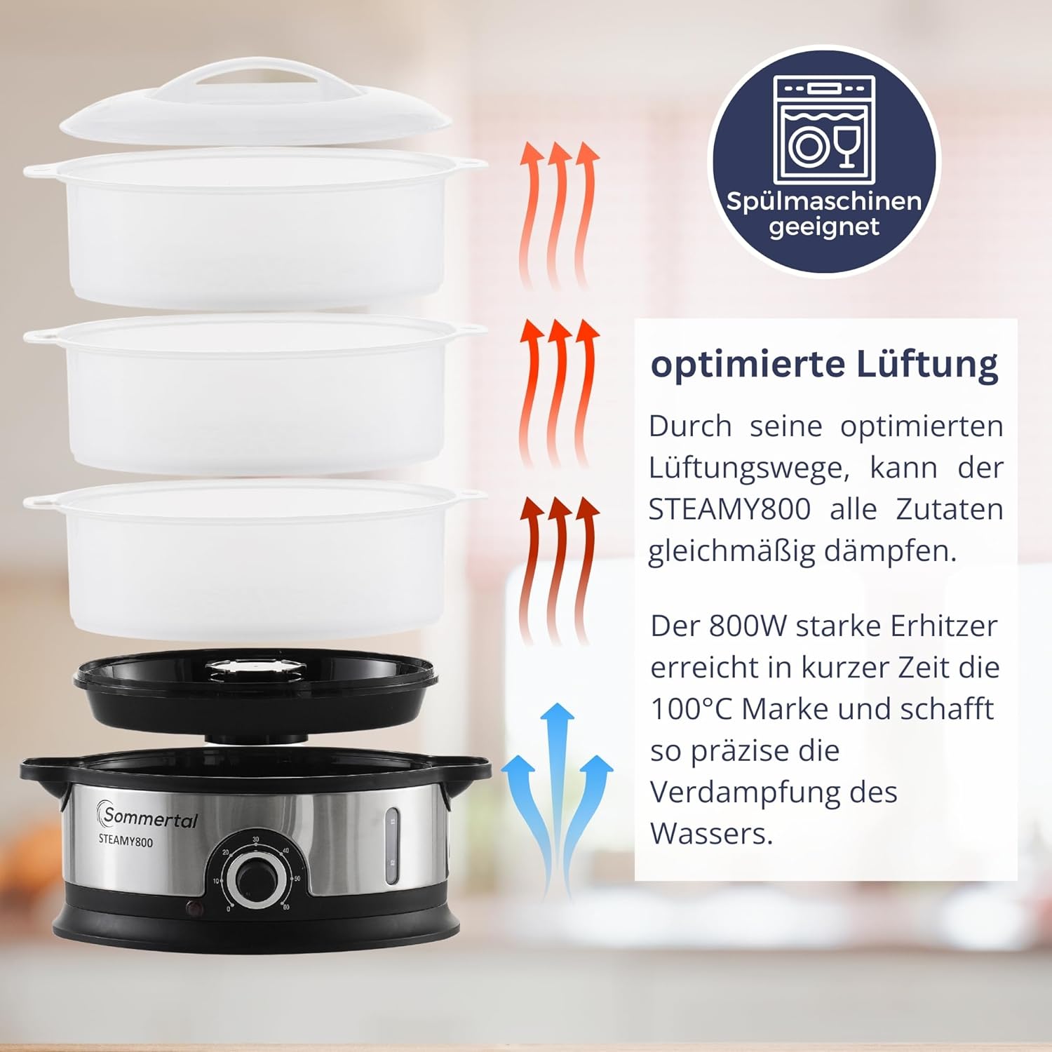 Sommertal Steamy800 Shock Absorber 800W 3 Layers Pot BPA Free Adjustable 0-60 min. Dishwasher Safe Plastic