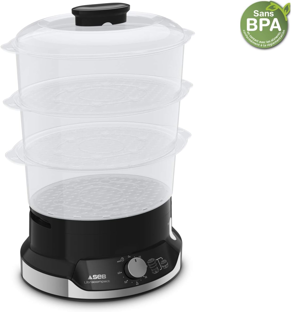 Seb UltraCompact Steam, Healthy Cooking, 9L, 800W, 3 Stacking Bowls, Rice and Cereal Container, 60 min Timer, Auto Shutdown, Visible Water Level, Easy Storage VC204800