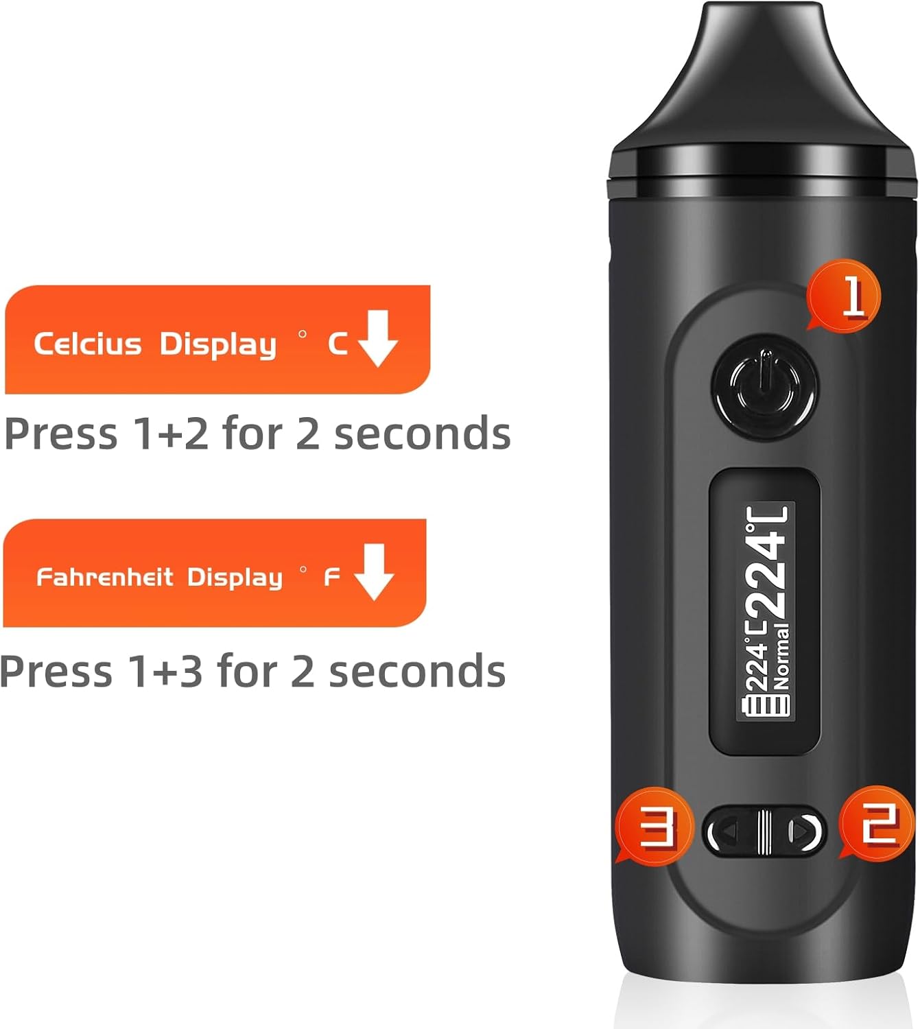 KinZon Dry Herb Vaporizer, OLED Display and Temperature Control, Fast Heating in 30s (Grey)