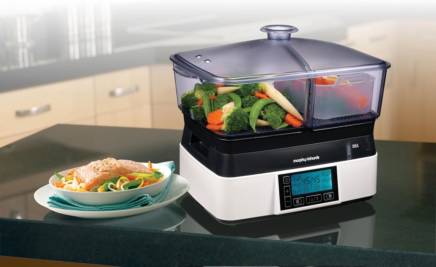 Morphy Richards Intellisteam Compact Steamer: 6 Litres, Stainless Steel, White, Includes Bowl Accessories
