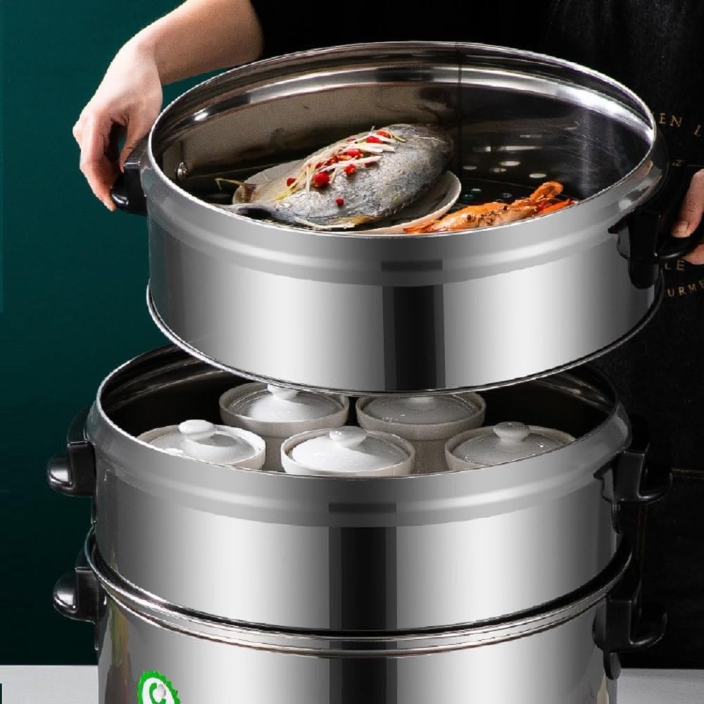 FYDZ Electric Steamer 3 Levels - Stainless Steel, Thermostat Control, Automatic Heating, Breakfast and More (47cm)