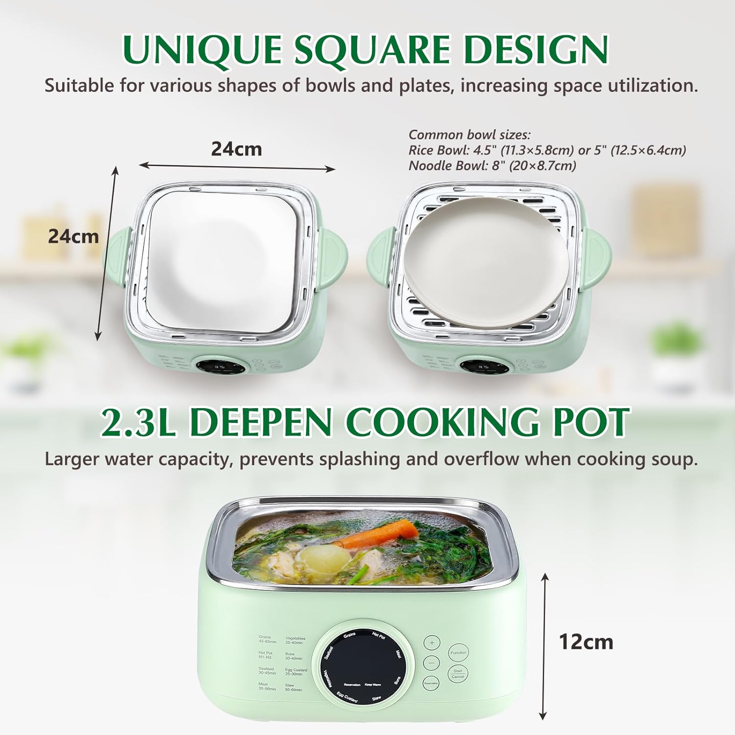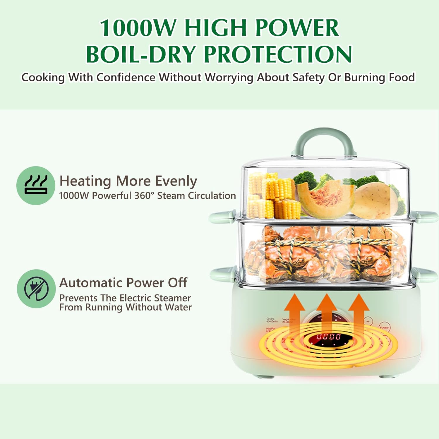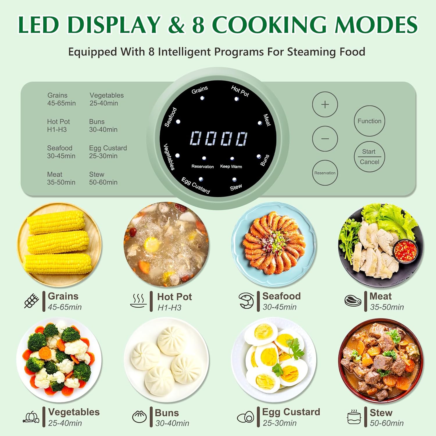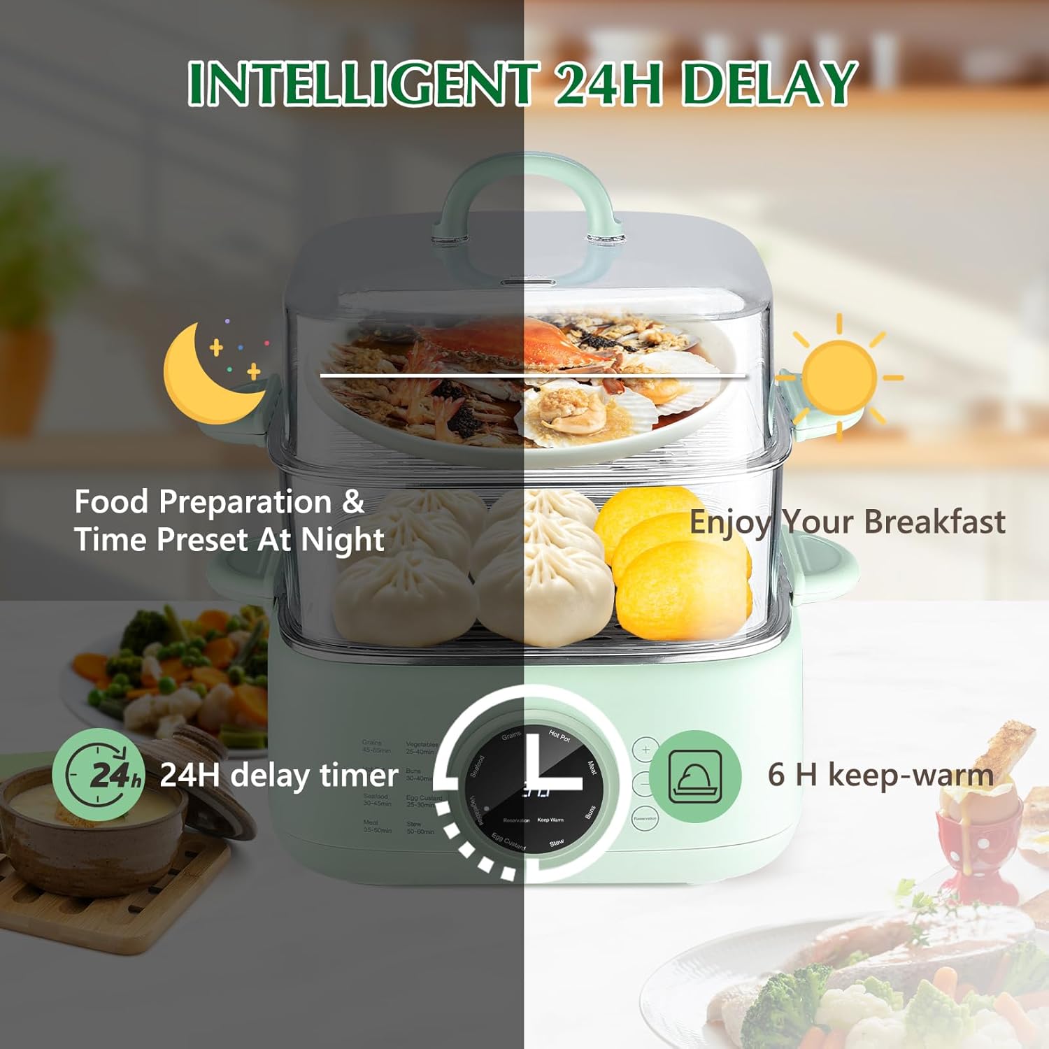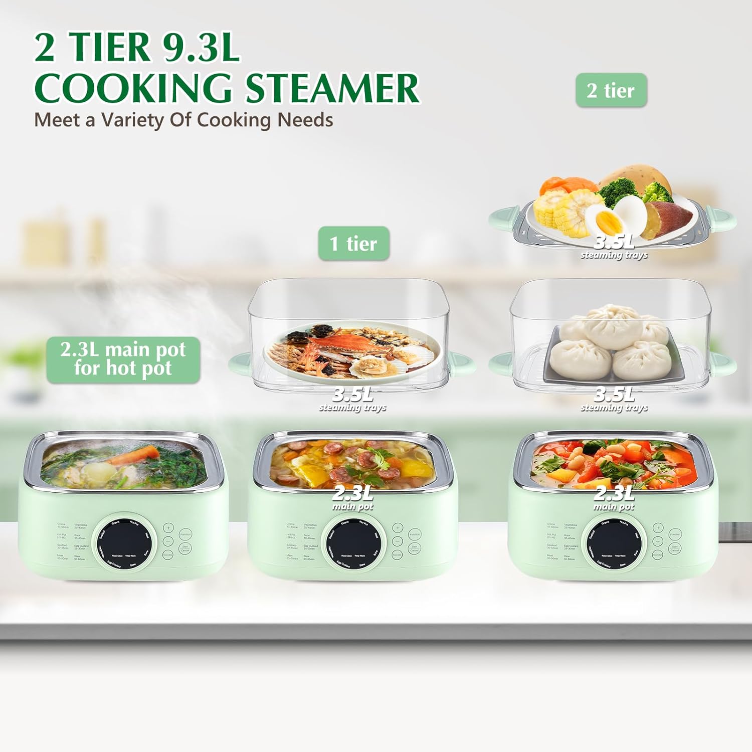 Skyehomo Electric Steamer 1000W, 8 Programme Multifunction Pot with Adjustable Time and Temperature, 24 Hours Countdown Start, 6 Hours Warm, 9.3L