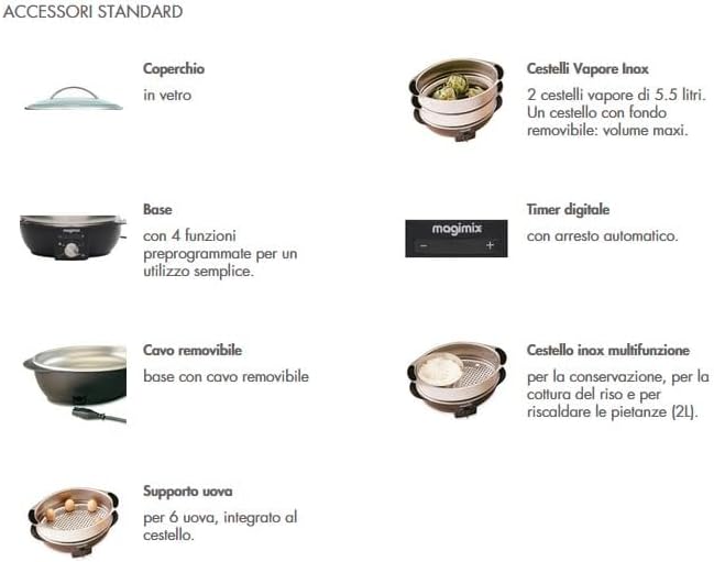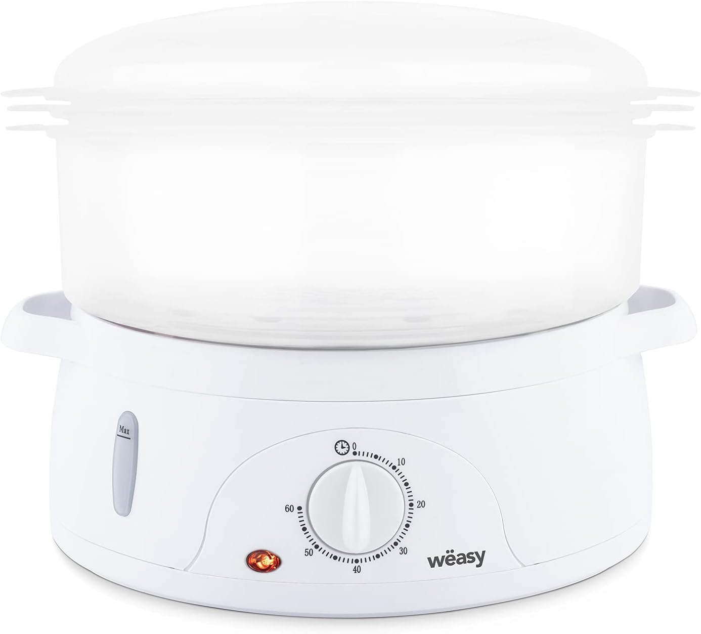 Wëasy - VEGE8 Electric Steamer Multifunctional 9L 3 Stackable Removable Bowls for Cooking Eggs, Vegetables, Meat, Fish, Rice Bowl, 60min Timer, Vitamin Preservation