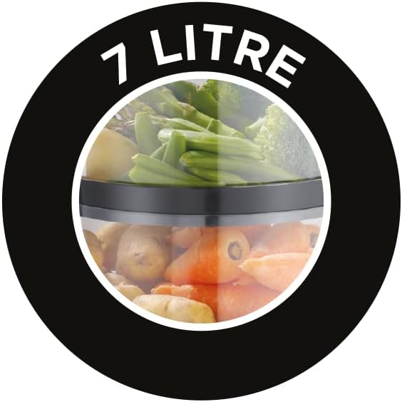 Russell Hobbs 7L Steamer - Small - 60 Minute Timer and Auto Shut-Off; 3 Dishwasher Safe Steaming Containers and Rice Bowl; BPA Free, Compact 26530-56