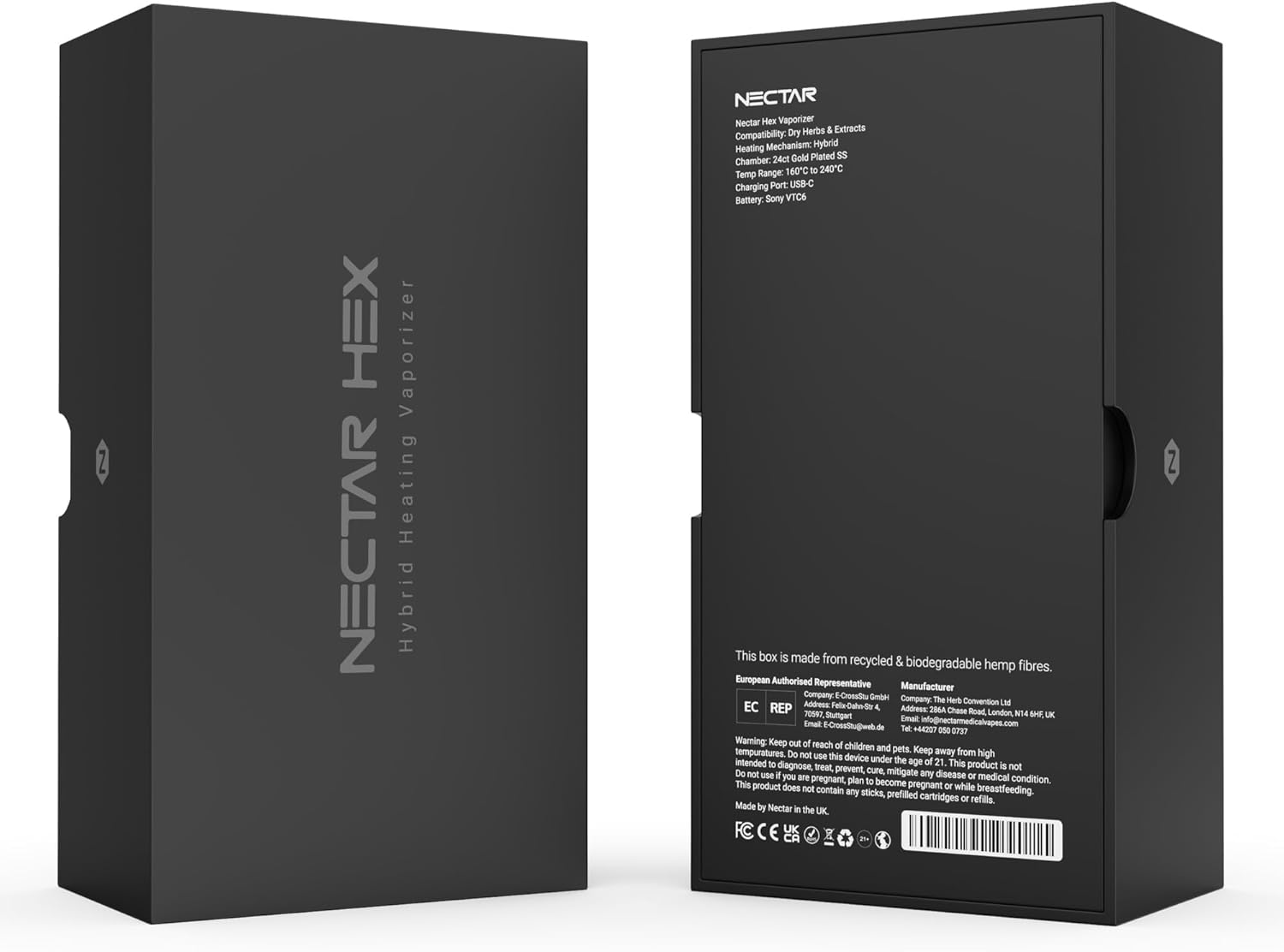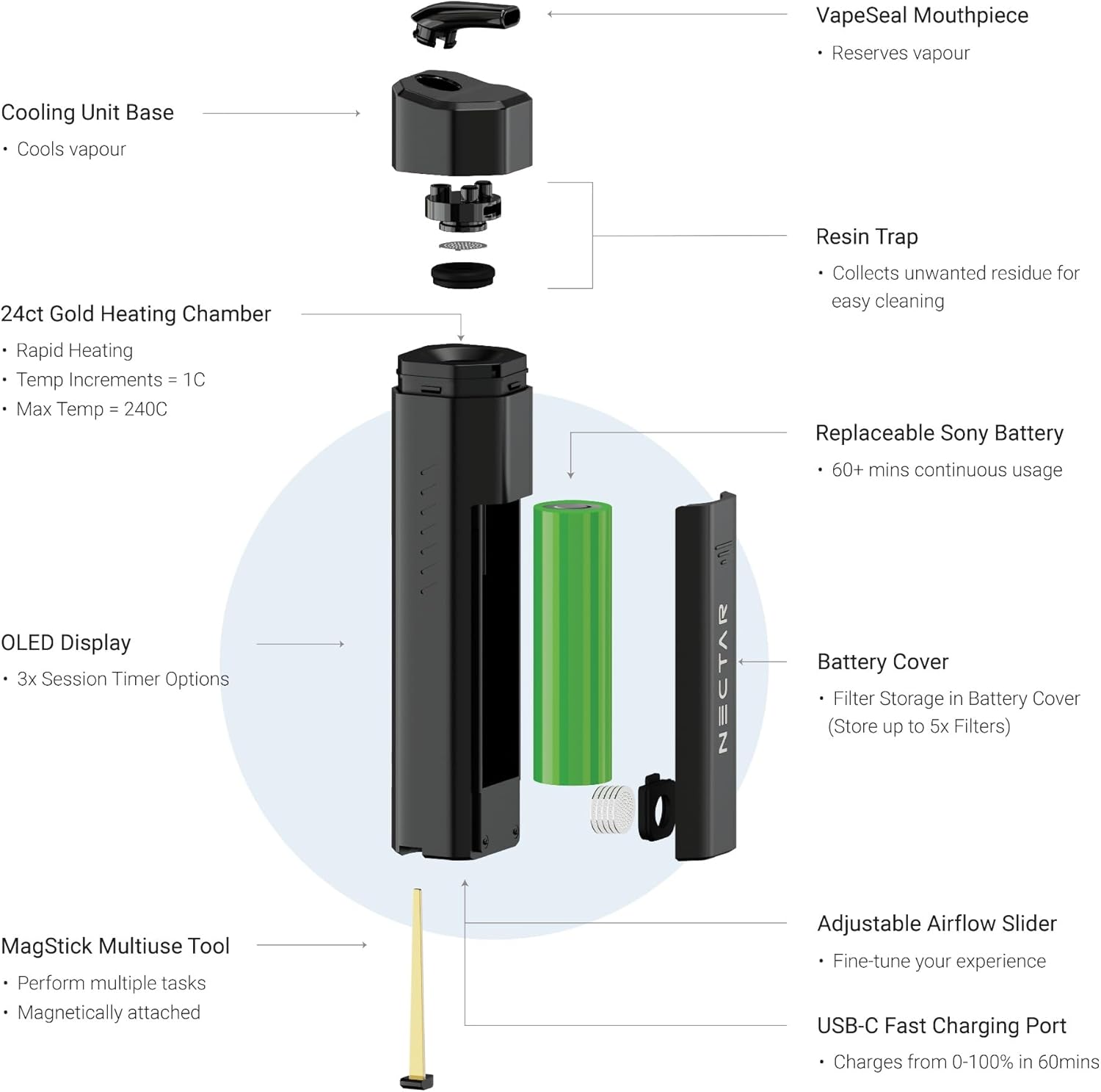 Nectar Hex 2-in-1 Grass Vaporizer | Basic Kit + 2 Year Warranty | 24-Carat Gold Oven, Quick Charge, Hybrid Heating, Adjustable Airflow + 60 Minutes Use