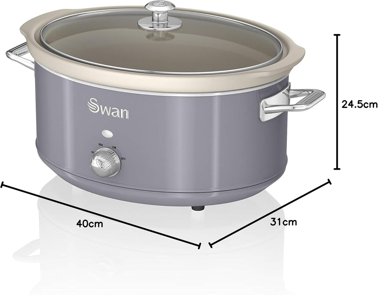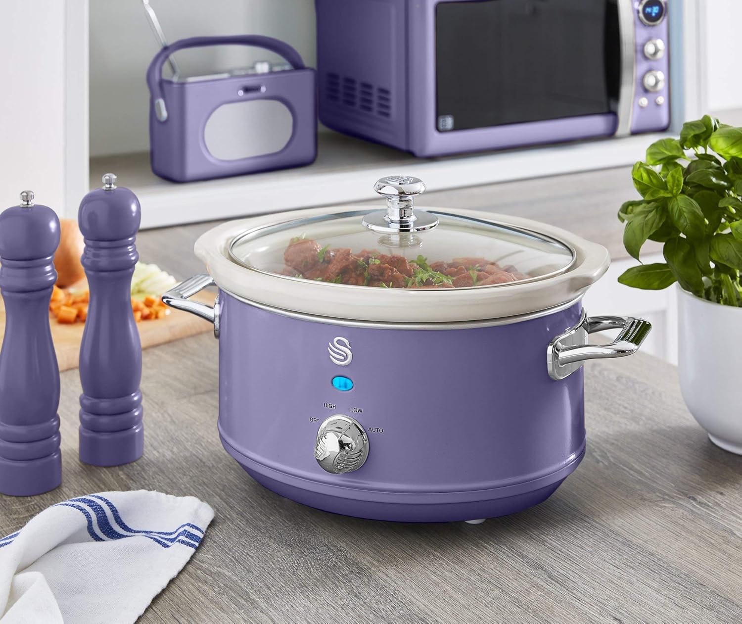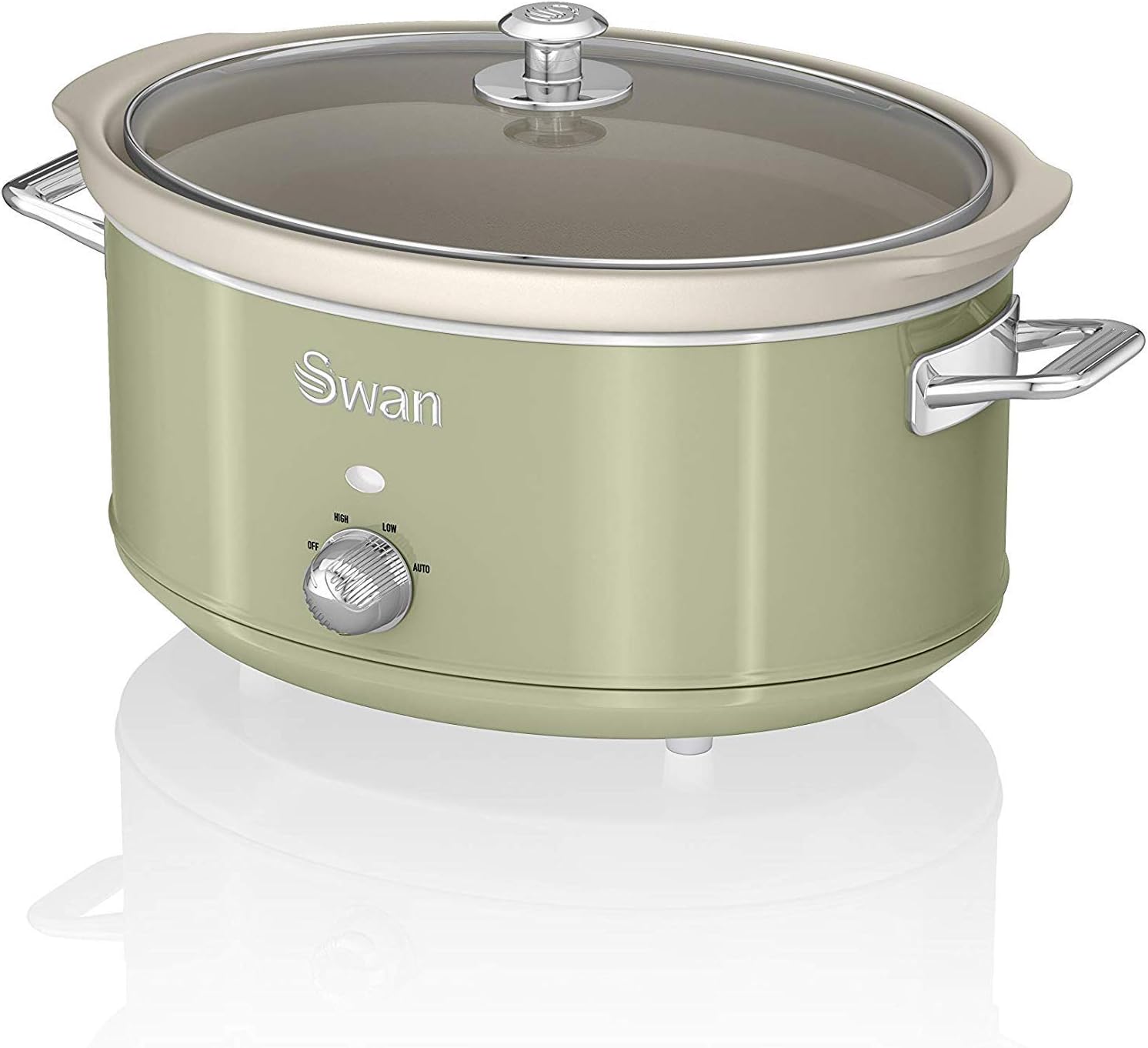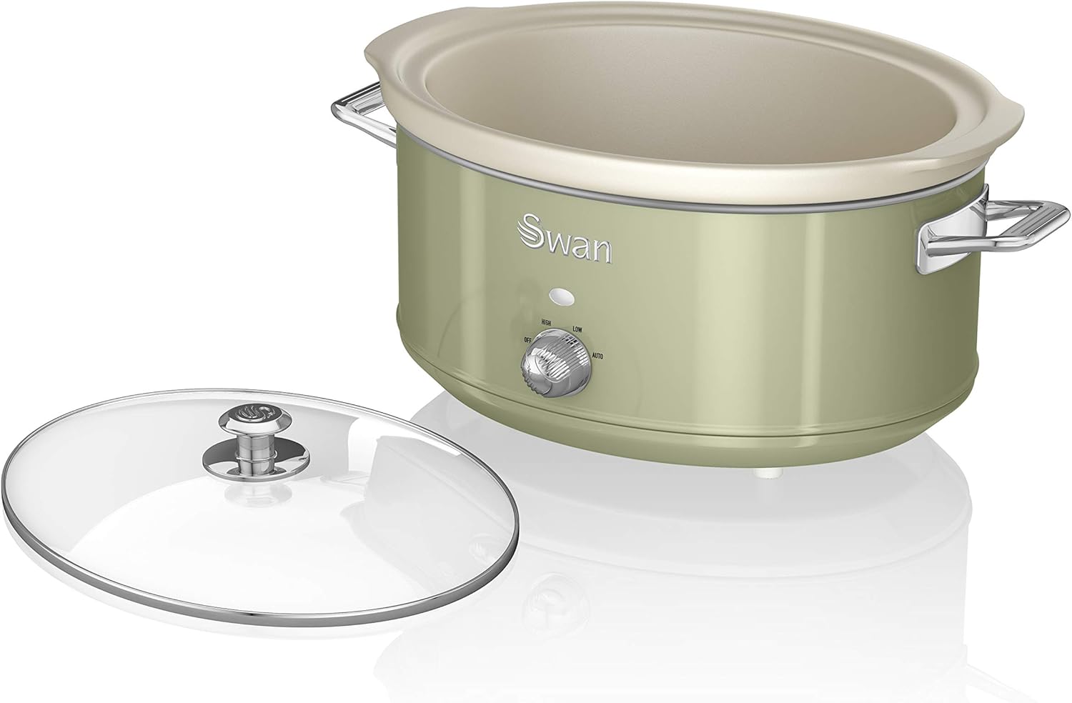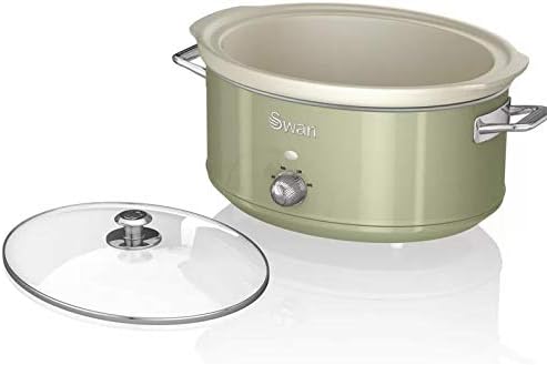 Swan Retro SF17031GN Slow Cooker 6.5L Removable Cooking Container, Ceramic Non-Stick PFOA & PTFE Free, 3 Temperature Levels, Glass Lid, Vintage Design, Green, 320 W