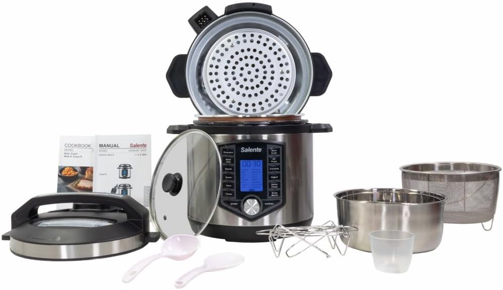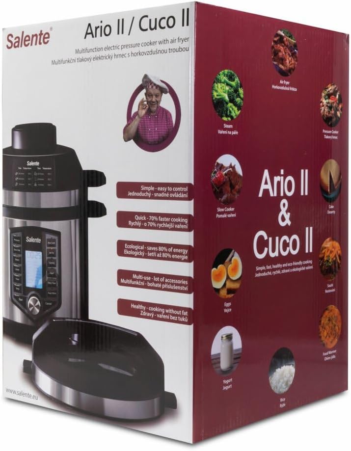 SALENTE Ario II Multifunction Electric Pot with Air Fryer, Pressure Cooker, Slow Cooker, Sous-Vide, Stainless Steel, 1200-1500 W, 6 L