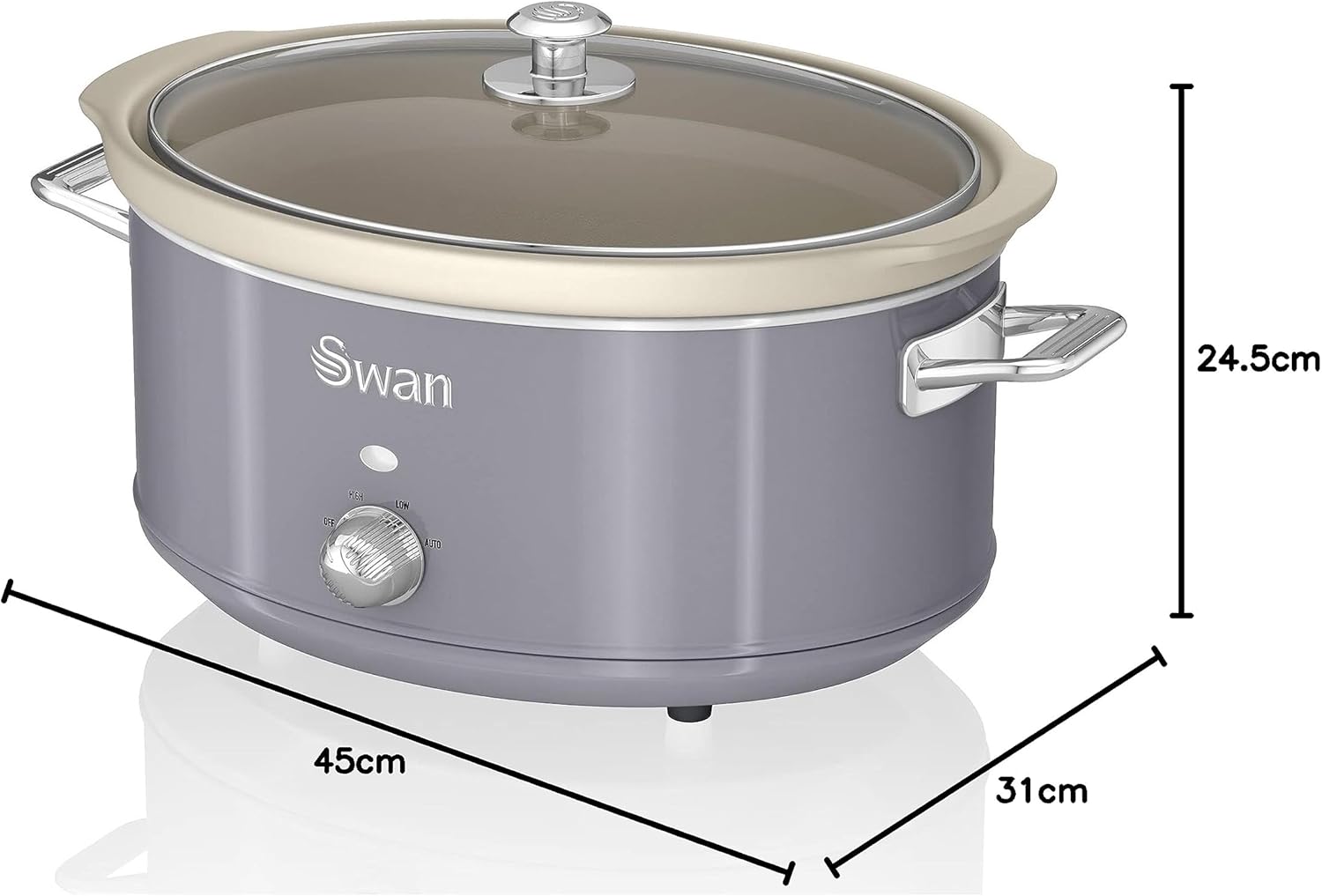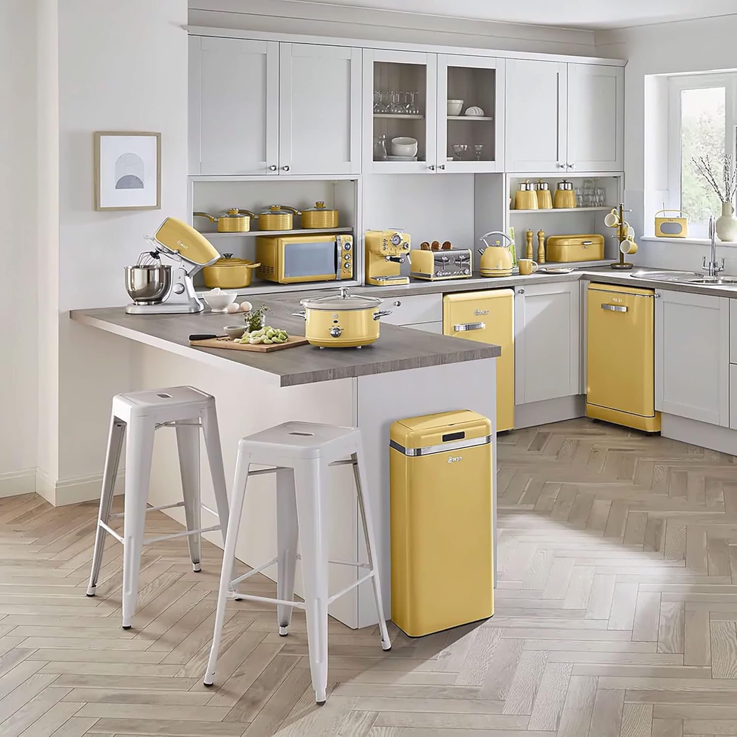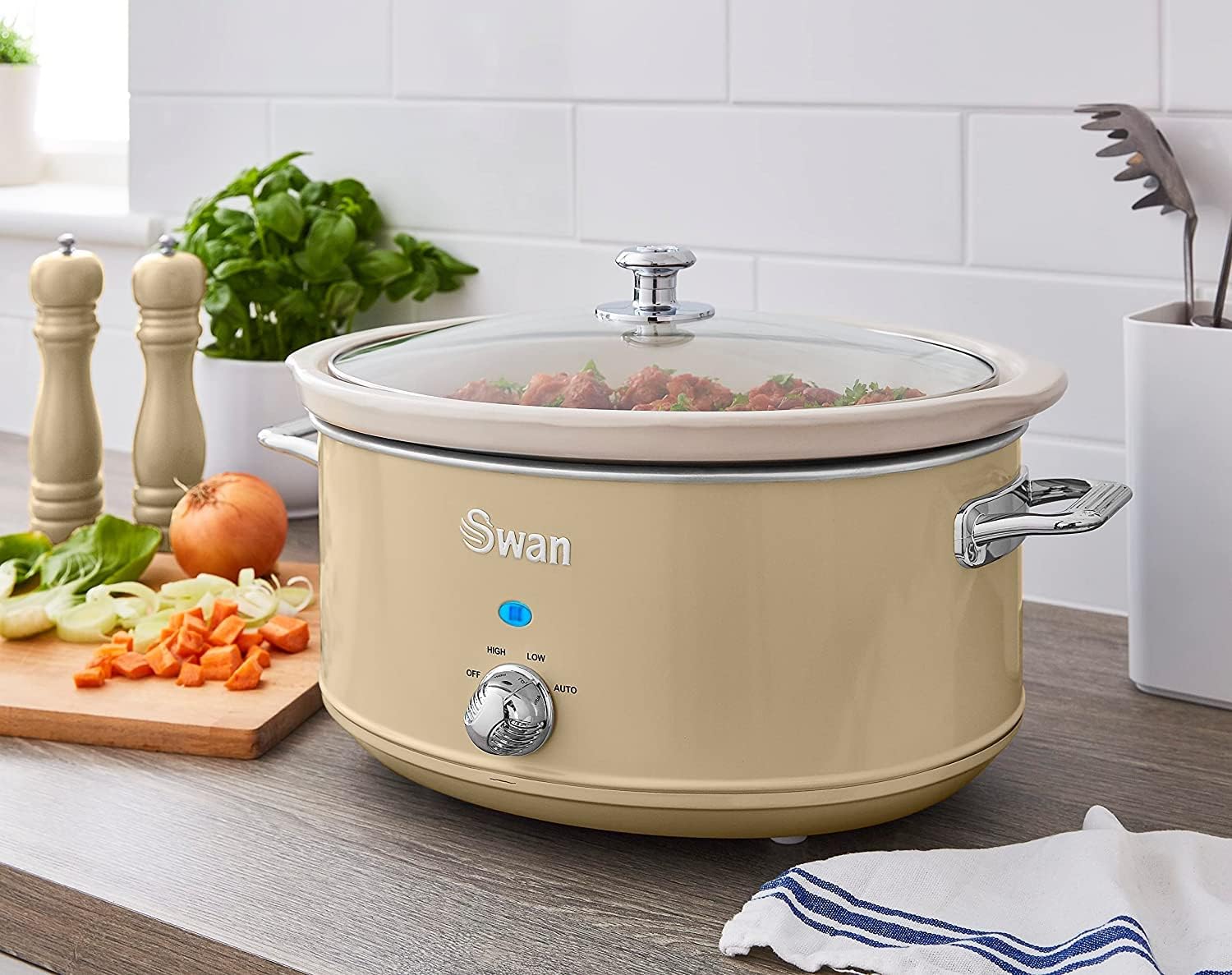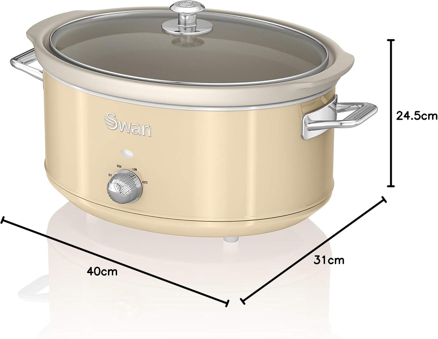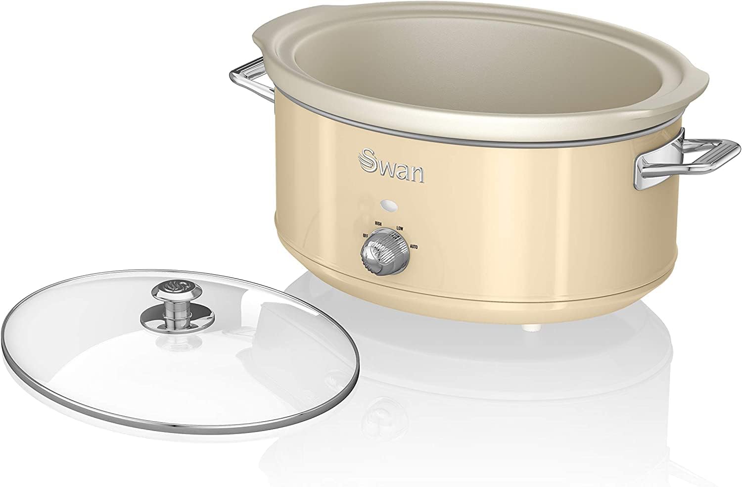 Swan Retro SF17031YELNEU Slow Cooker 6.5L Removable Container, Non-stick PFOA and PTFE Free Ceramic, 3 Temperature Levels, Glass Lid, Slow Cooker Vintage Design, Yellow, 320W