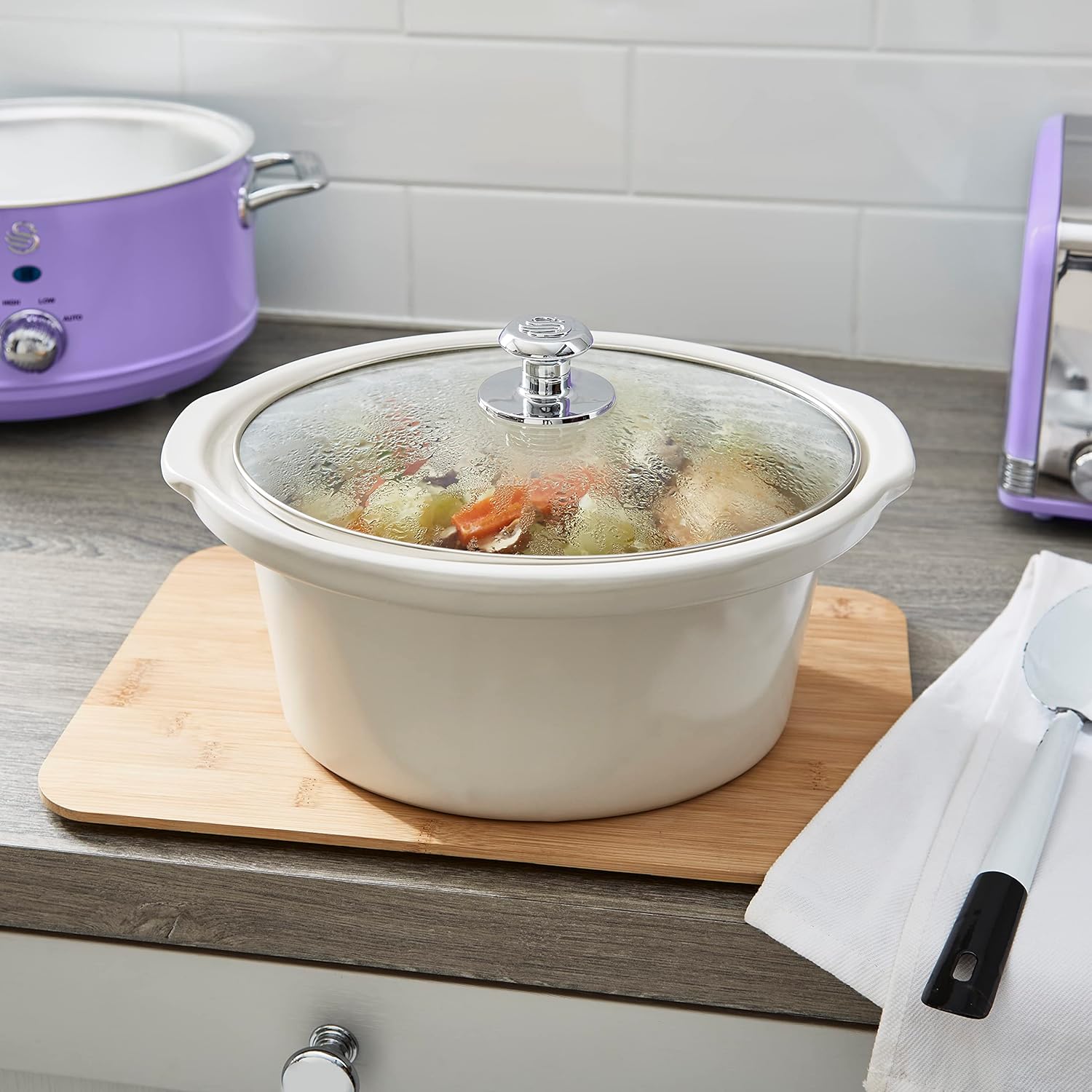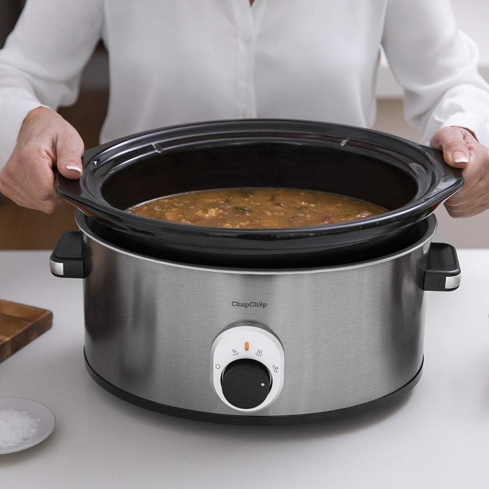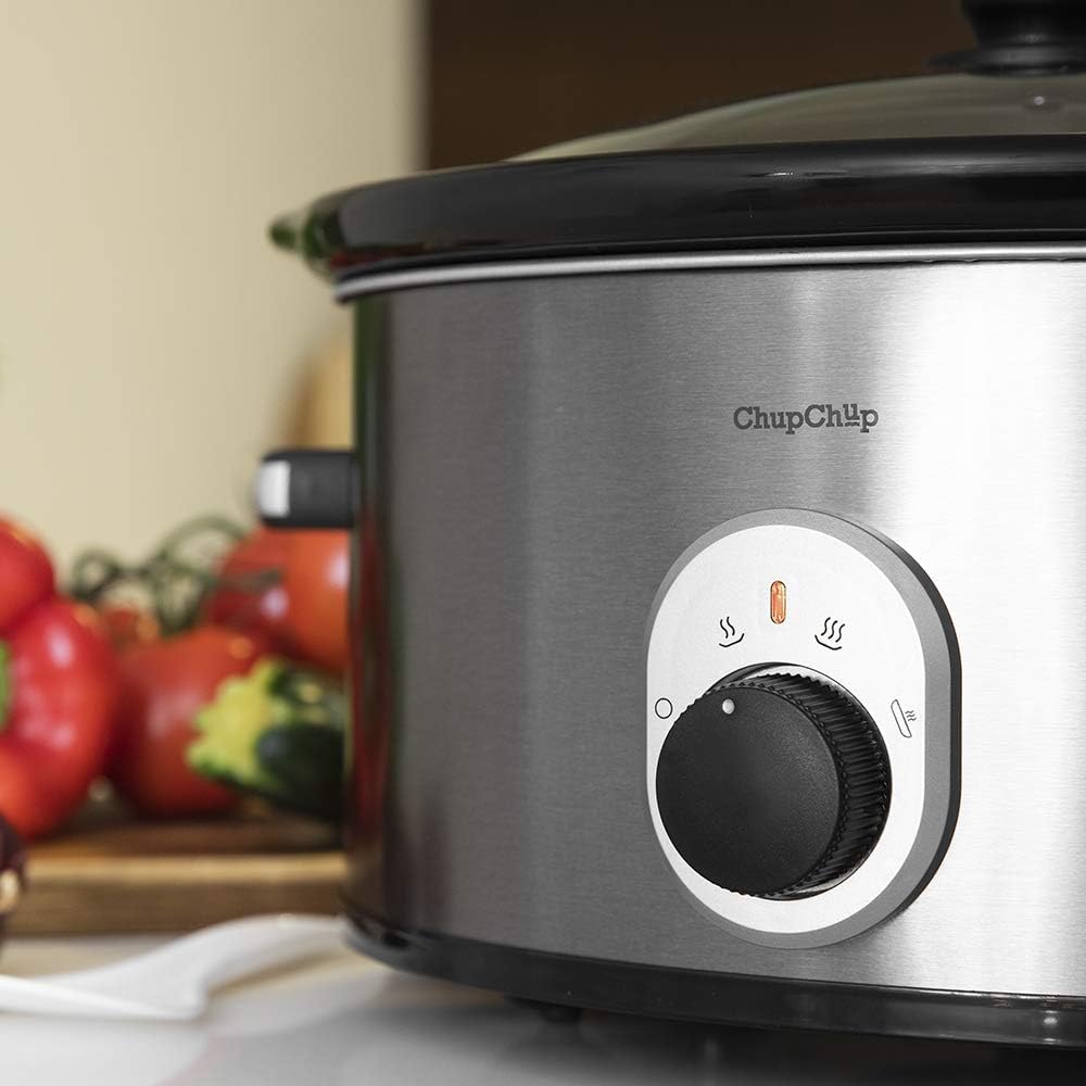 Cecotec - Chup Chup Slow Cooker 5.5 Litre, Oval Shaped Ceramic Bowl, Glass Lid with Silicone Seal and Complete Recipe Book