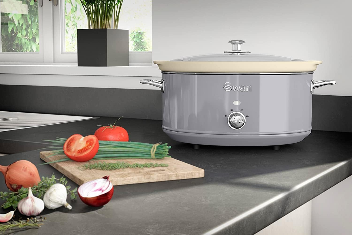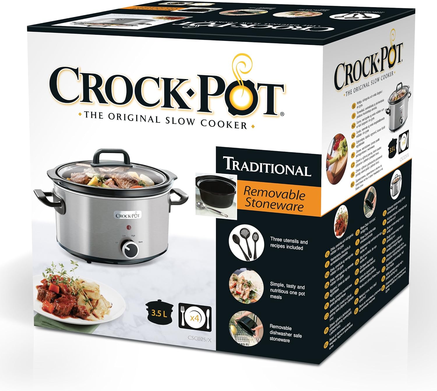 Crockpot Slow Cooker, Slow Cooker, 3.5 Litre Capacity, up to 4 People, 2 Cooking Settings and Keep Warm Function, 210 W, Ceramic, Silver