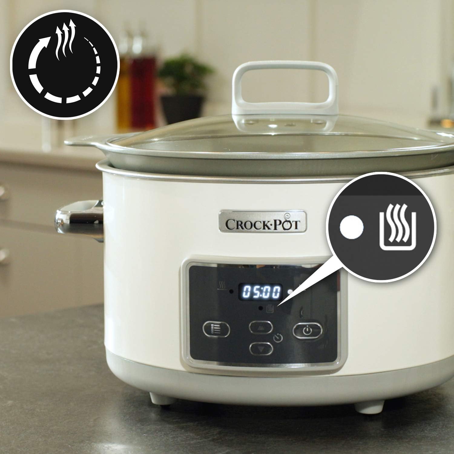 Crock-pot Slow Cooker, Slow Cooker, 5 Litres, Up to 6 People, Automatic Shutdown, DuraCeramic, Sauté for Sauté for Sauté on Gas and Induction, 2 Cooking Settings and Automatic Warm, White