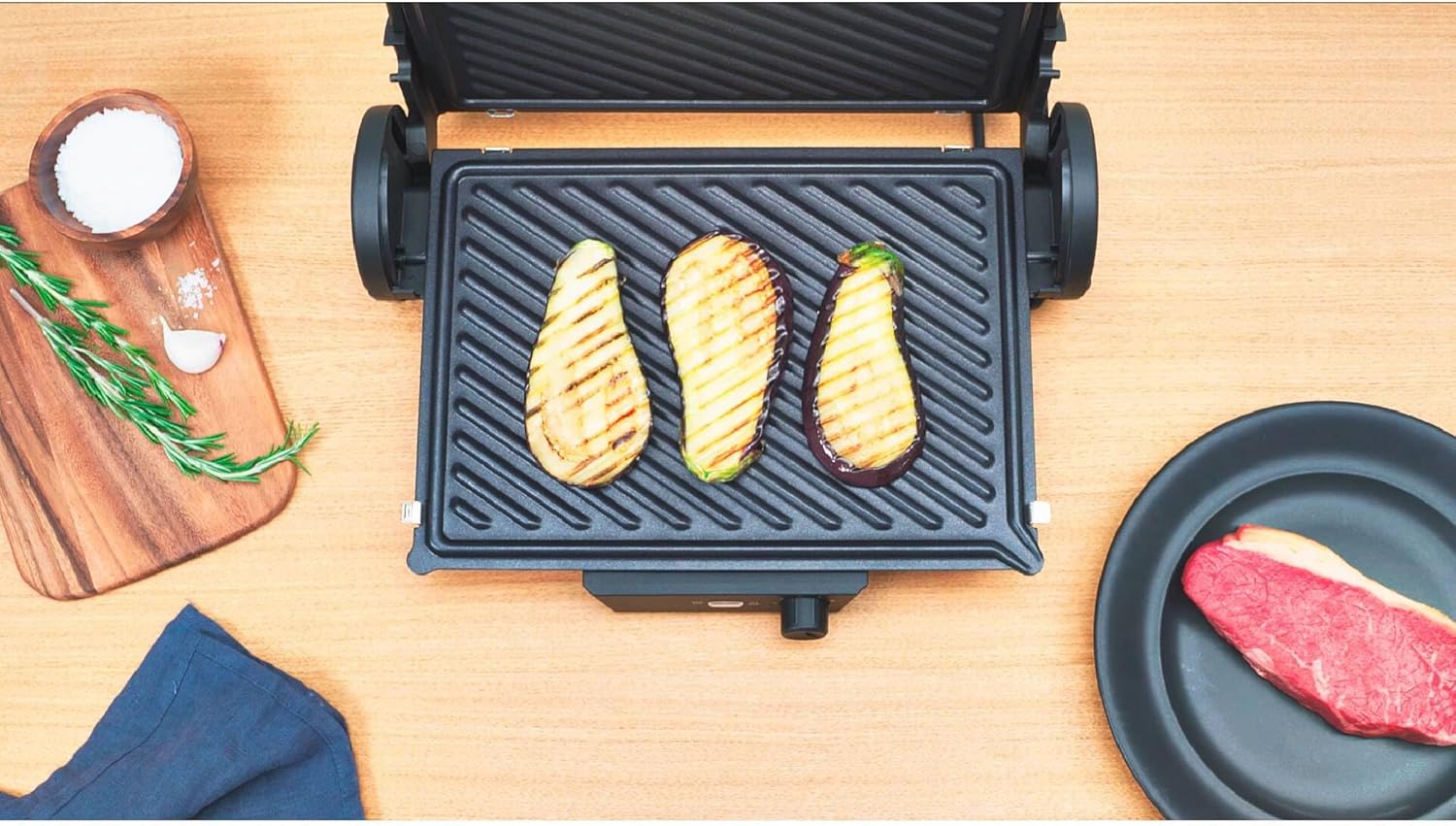 Imetec Toaster & Grid, Electric Toaster, XL Plates Striped and Non-stick for Preparing 3 Toasts at a Time, Compact, Storable Vertical, Operating Lights, Hook Closure, Cable Reel, 800 W