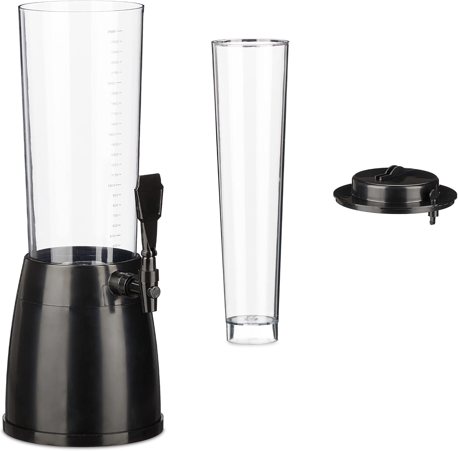 Relaxdays Beer Tower with Tap, Spiller, Transparent, 2.5 Litres, BierTower, 50 x 23 x 18 cm, Black, Cotton