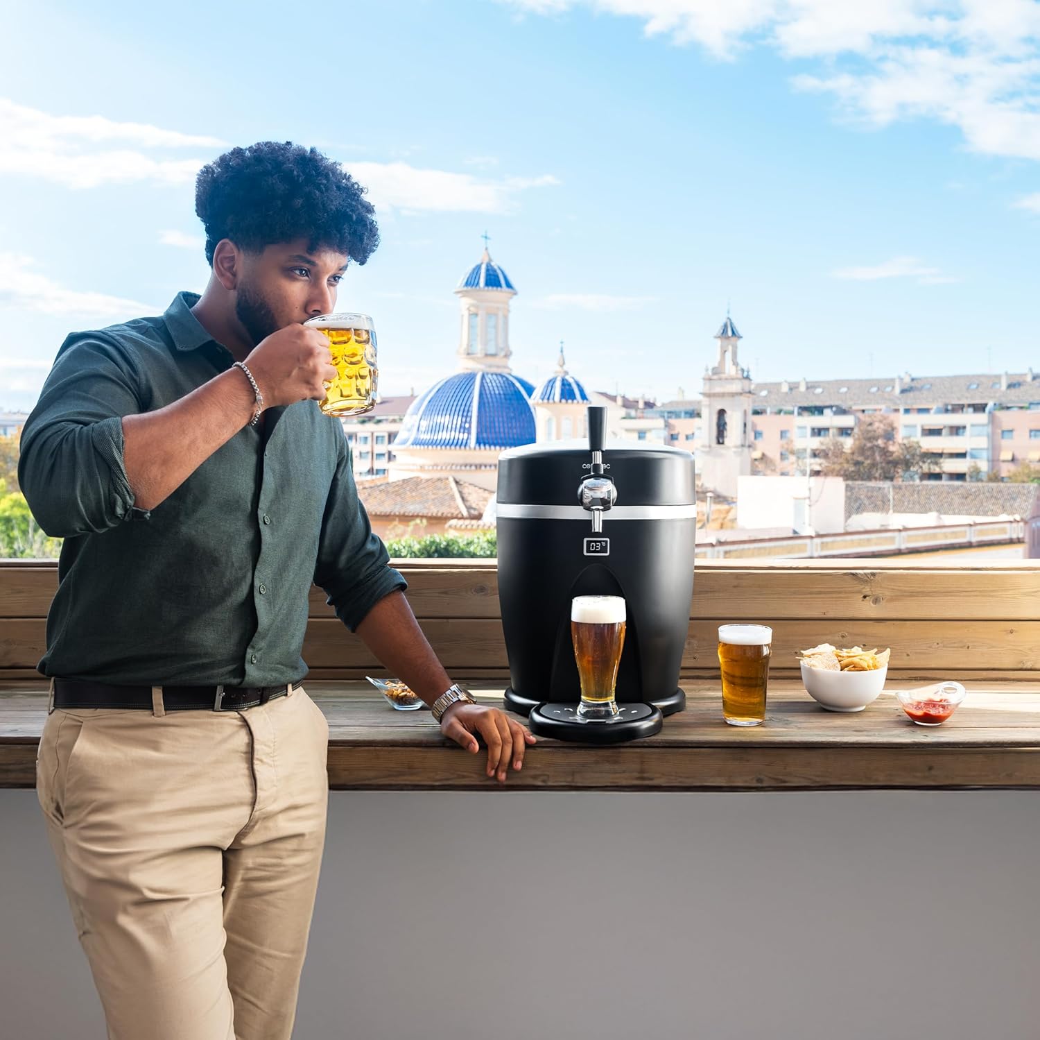 Cecotec BeerFlow 5000 - Dispenser per birra da 60 W, gamma di temperatura controllata da 3 a 6 掳C, compatibile con fusti universali pressurizzati, 5 l, indicatore temperatura LED, maniglia per il